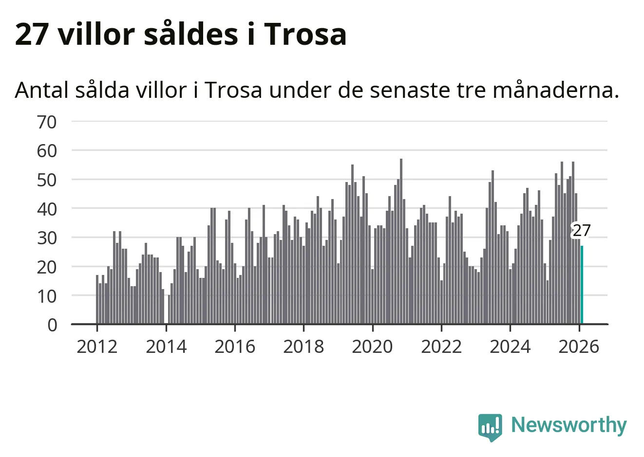 Graf: Antal sålda villor i Trosa kommun
