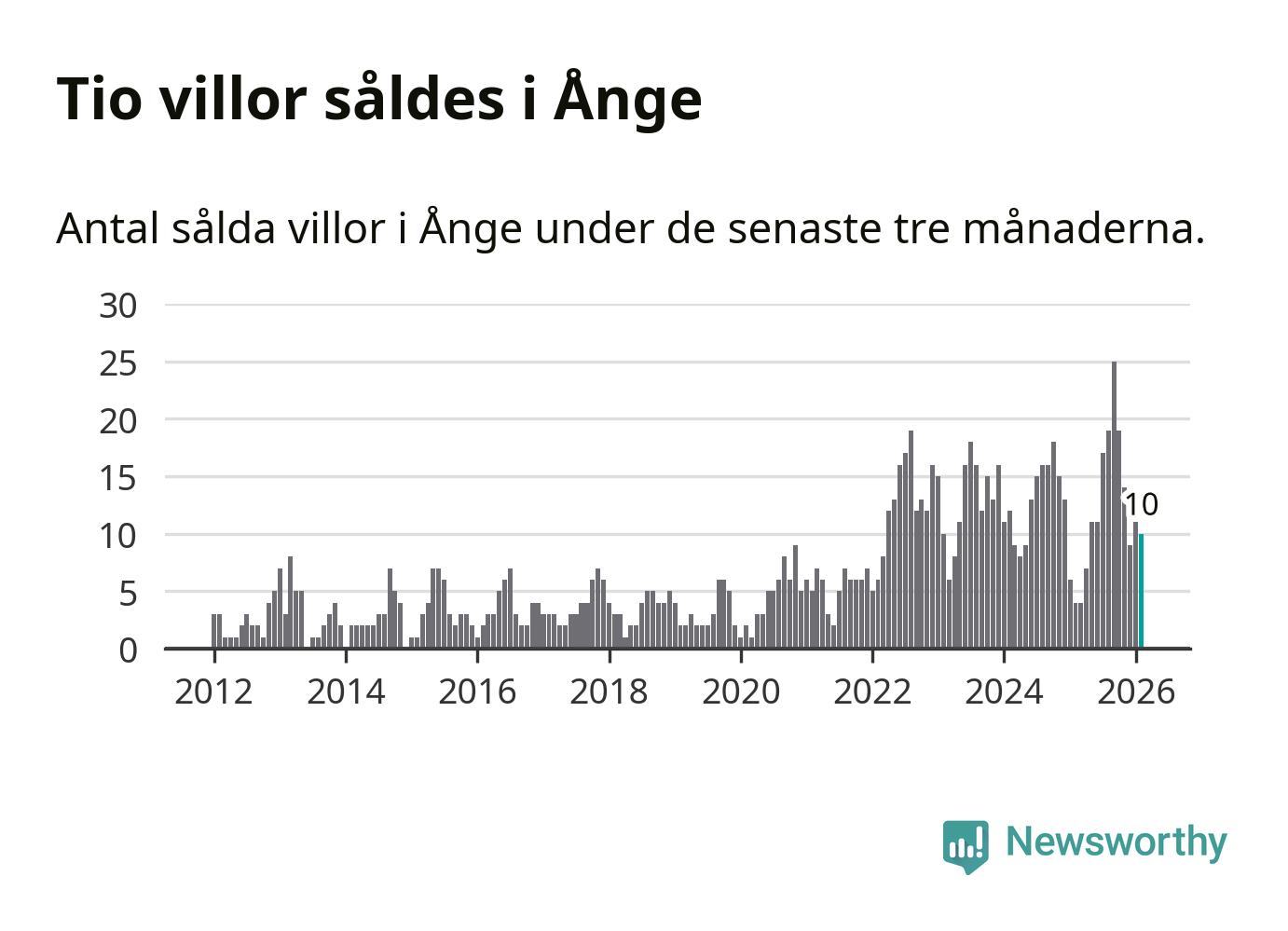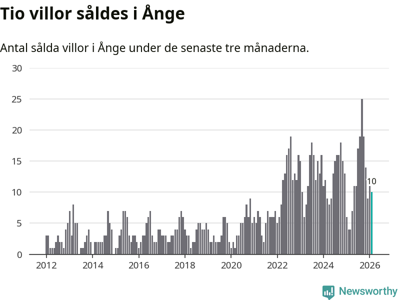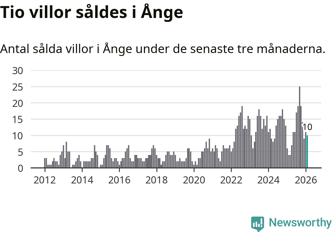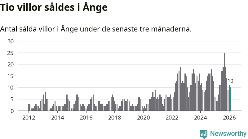 Mellan december och februari gjordes sammanlagt tio affärer med villor i Ånge kommun. Det kan jämföras med fyra vid motsvarande tid i fjol.