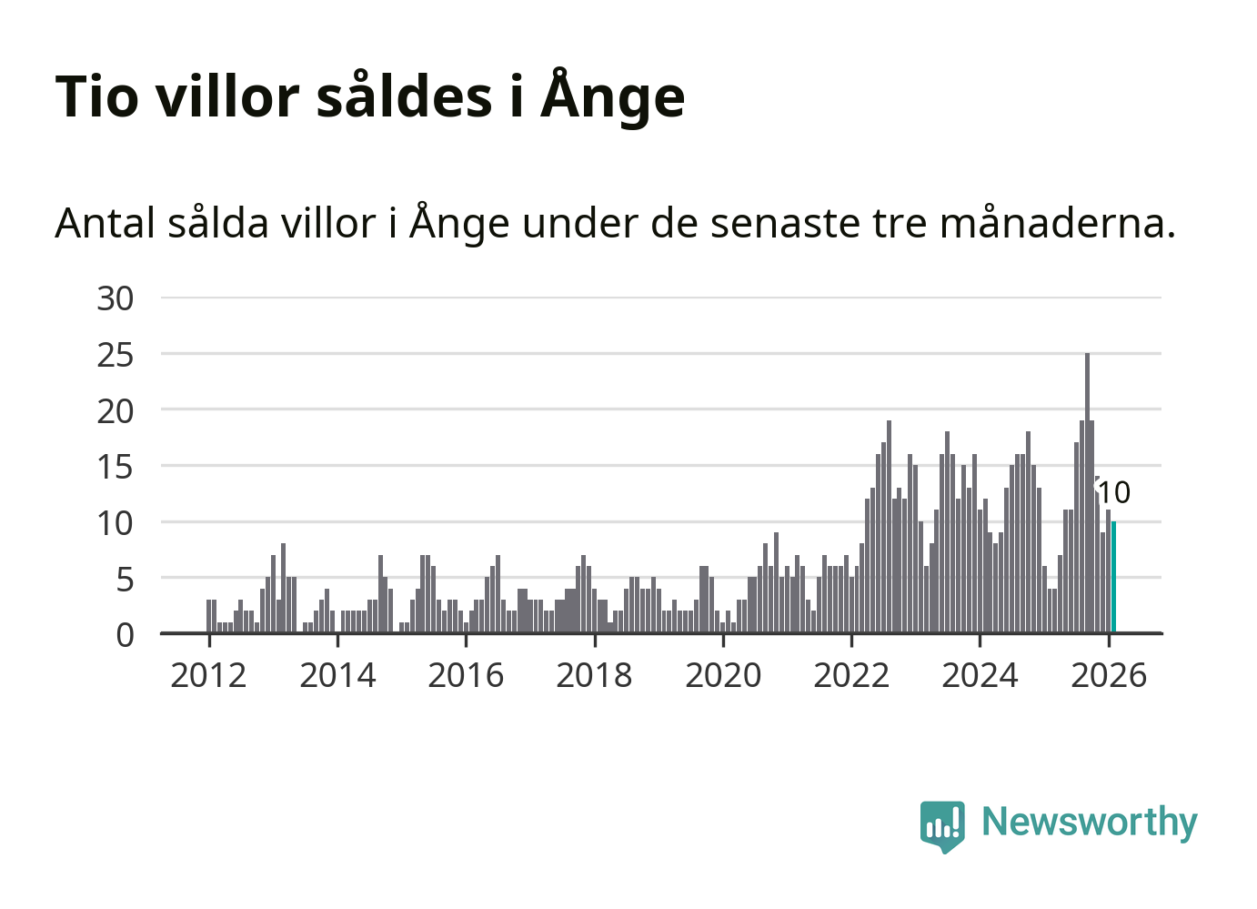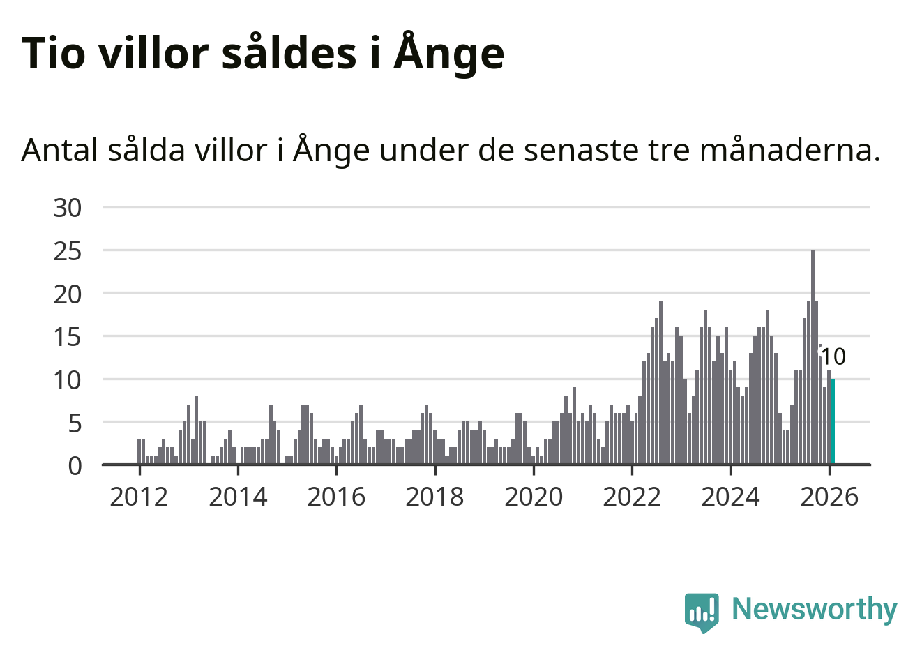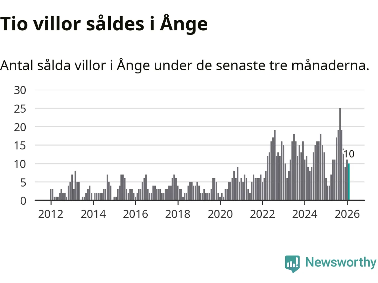 Mellan december och februari gjordes sammanlagt tio affärer med villor i Ånge kommun. Det kan jämföras med fyra vid motsvarande tid i fjol.