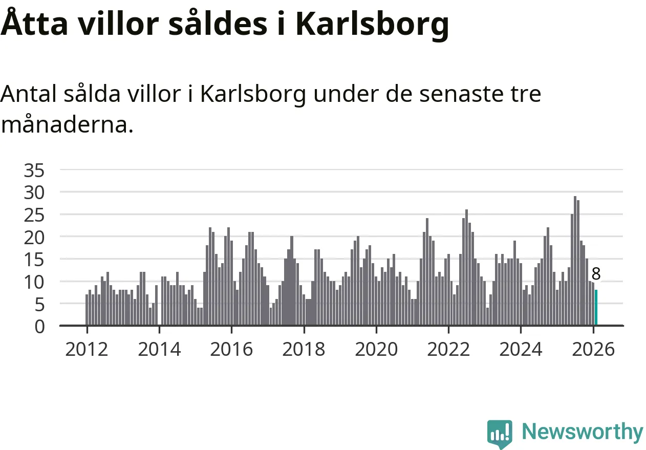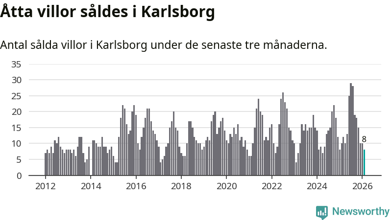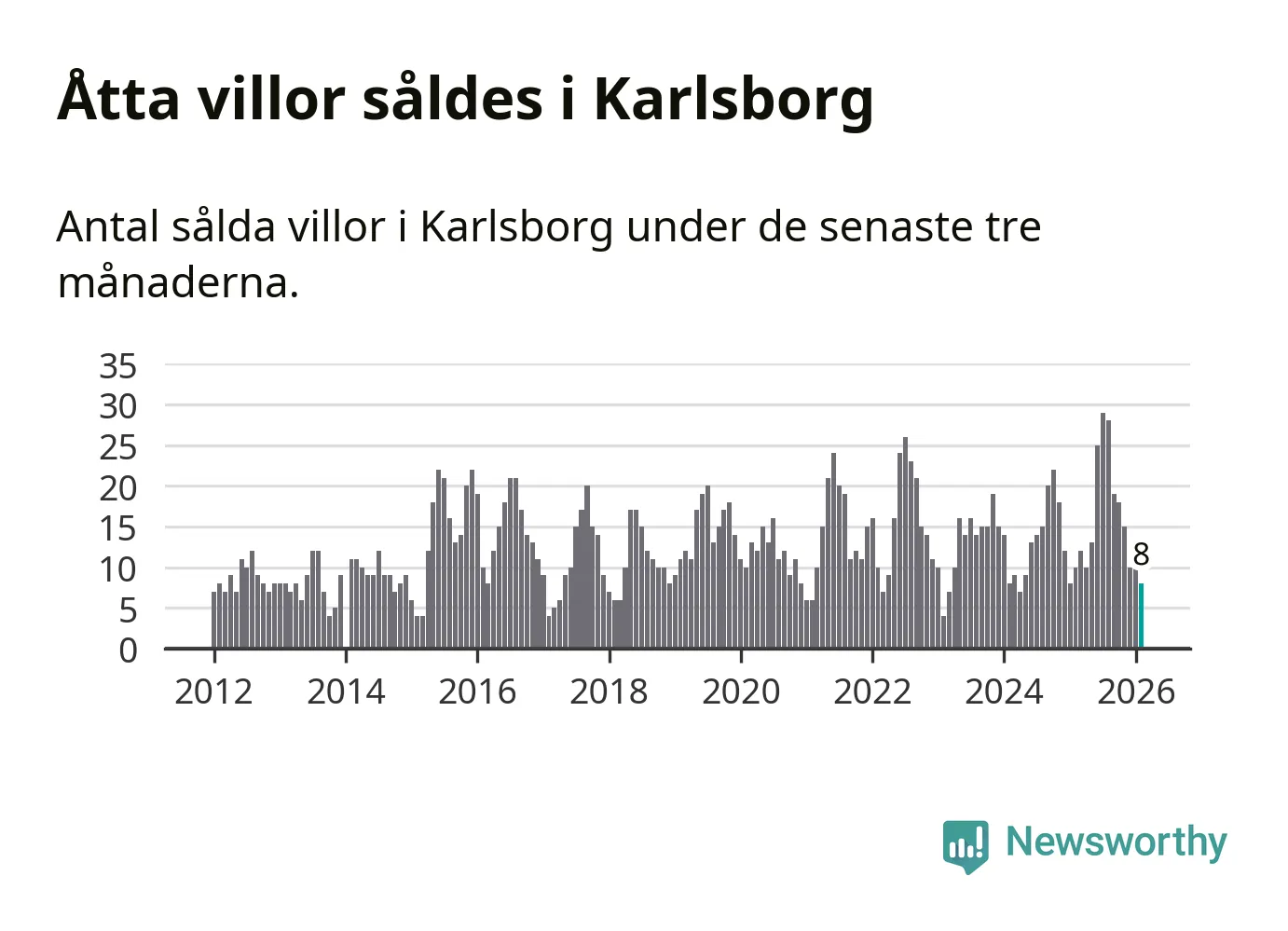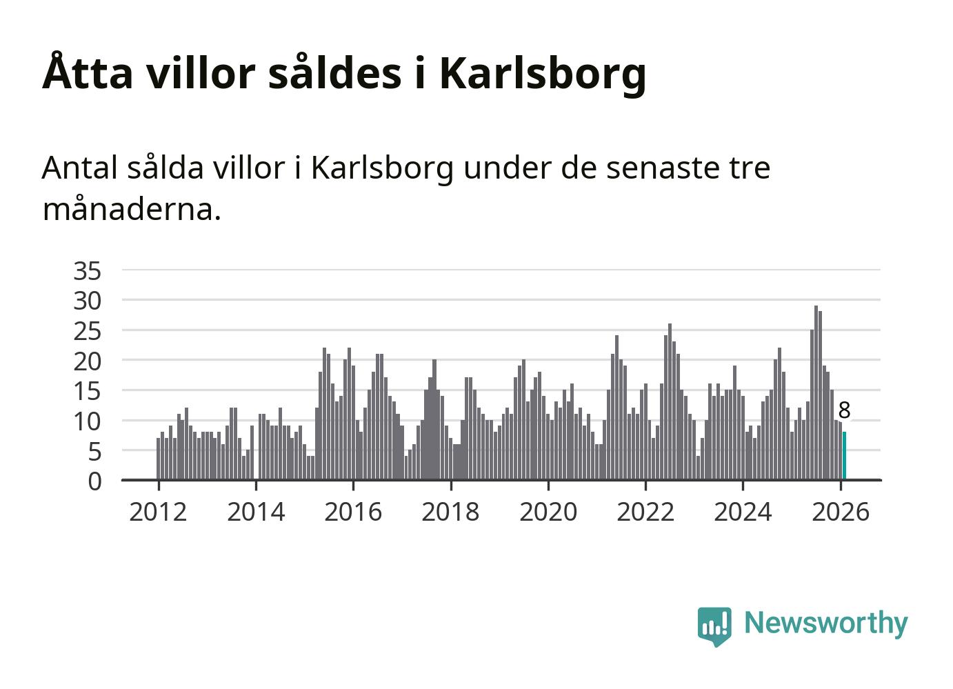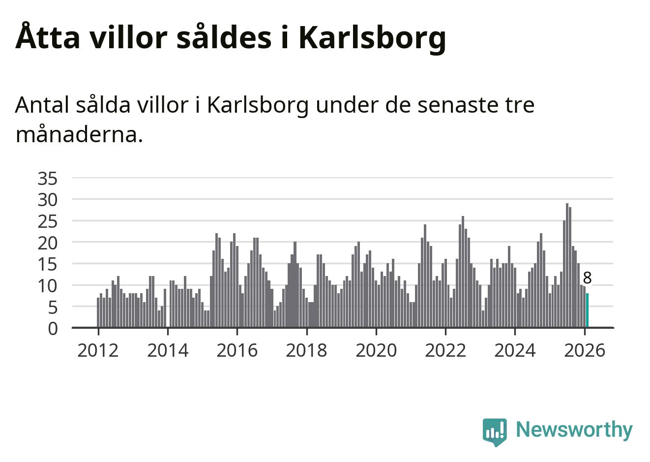Mellan december och februari gjordes sammanlagt åtta affärer med villor i Karlsborgs kommun. Det kan jämföras med tio vid motsvarande tid i fjol.