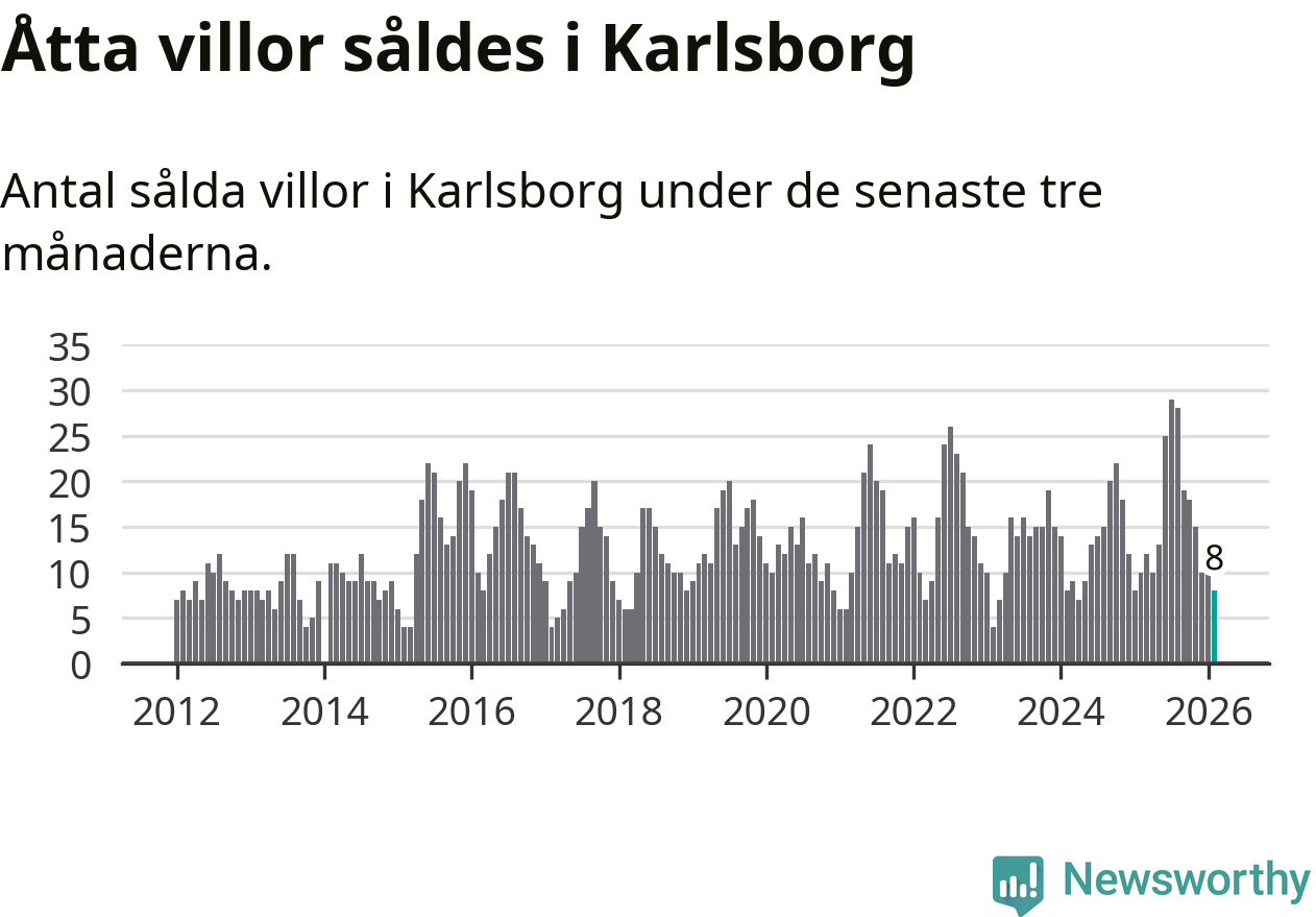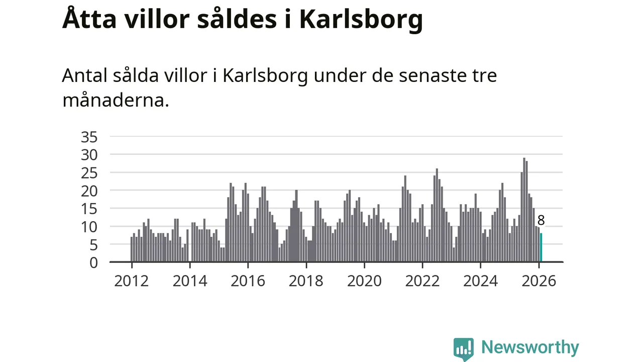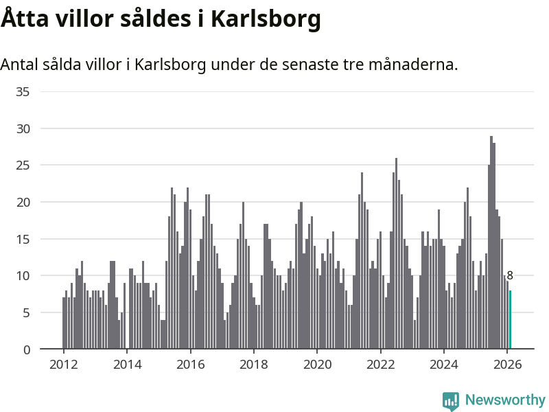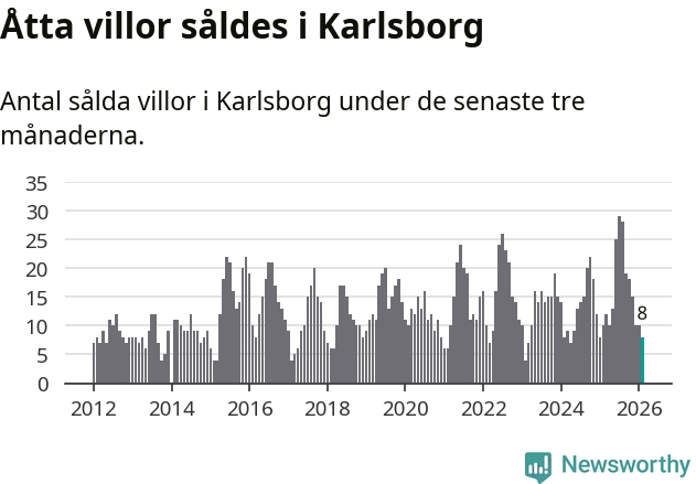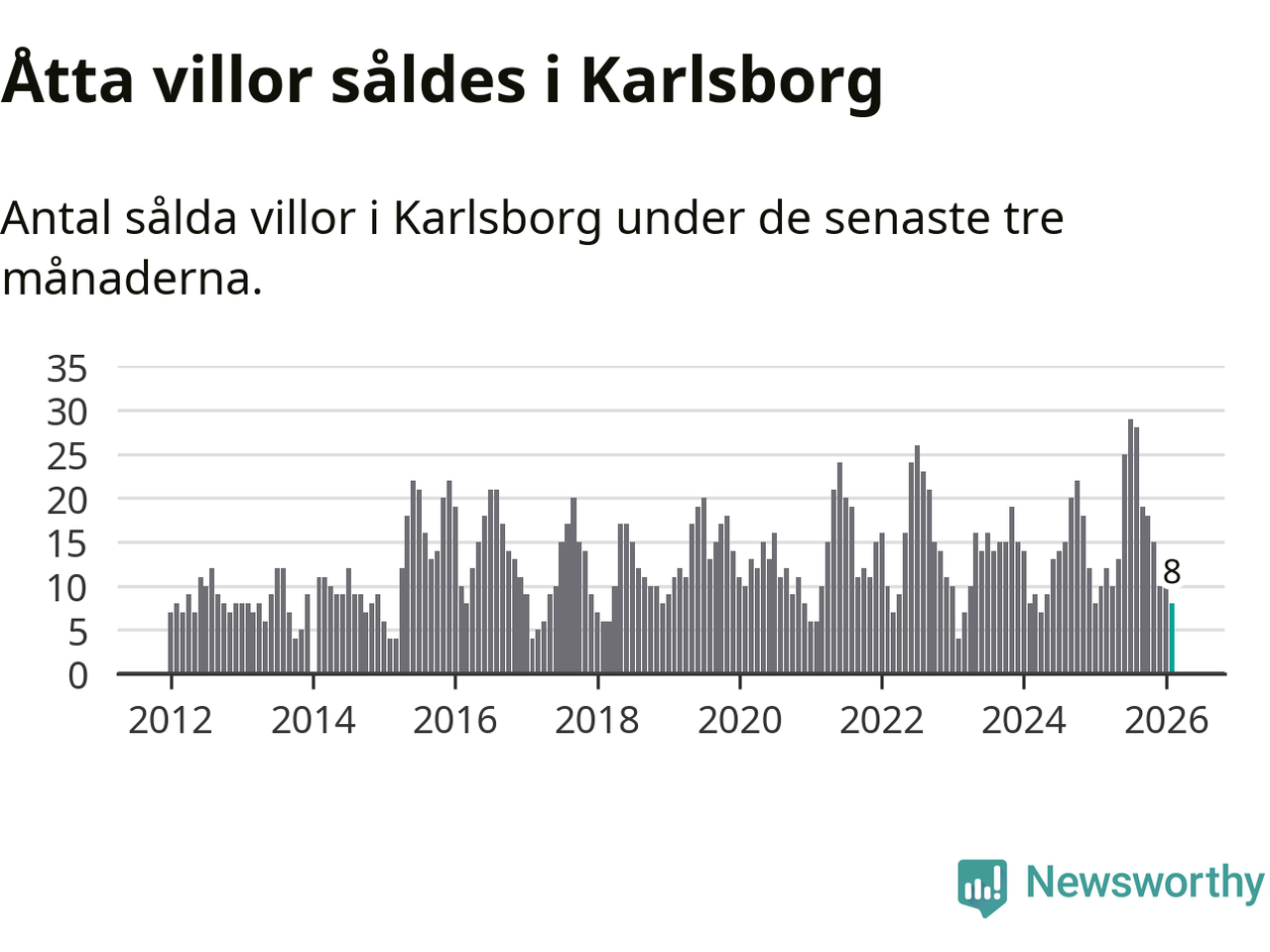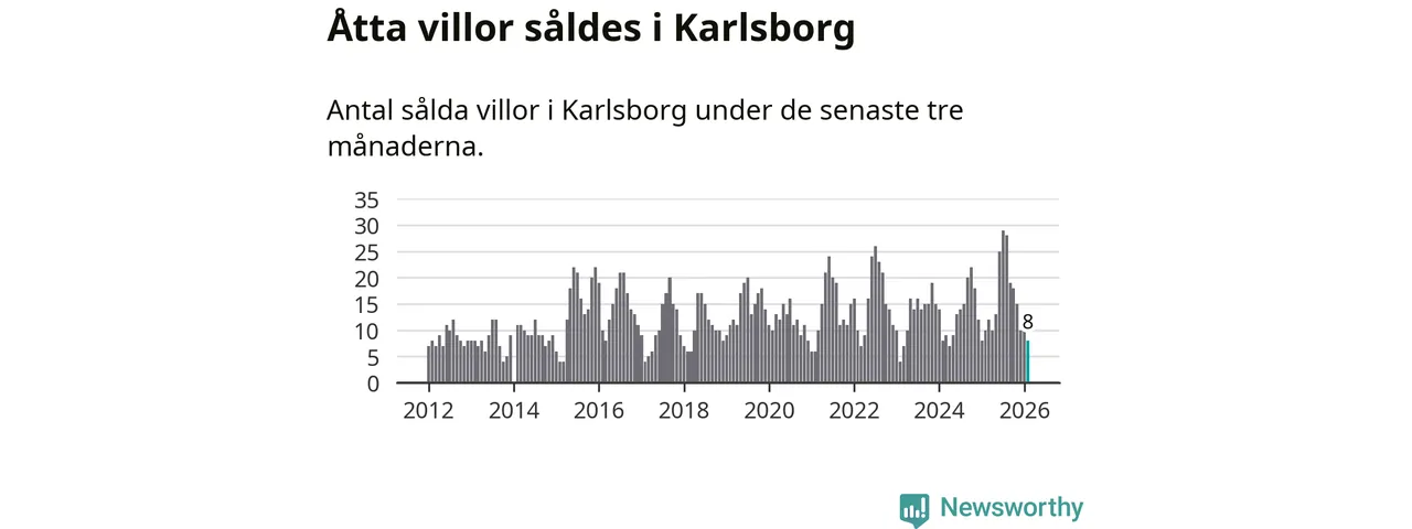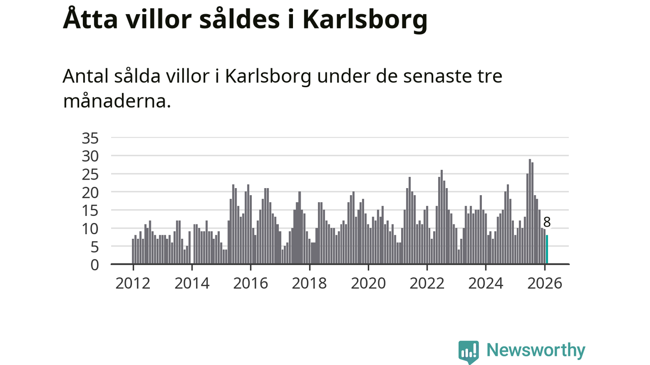 Mellan december och februari gjordes sammanlagt åtta affärer med villor i Karlsborgs kommun. Det kan jämföras med tio vid motsvarande tid i fjol.