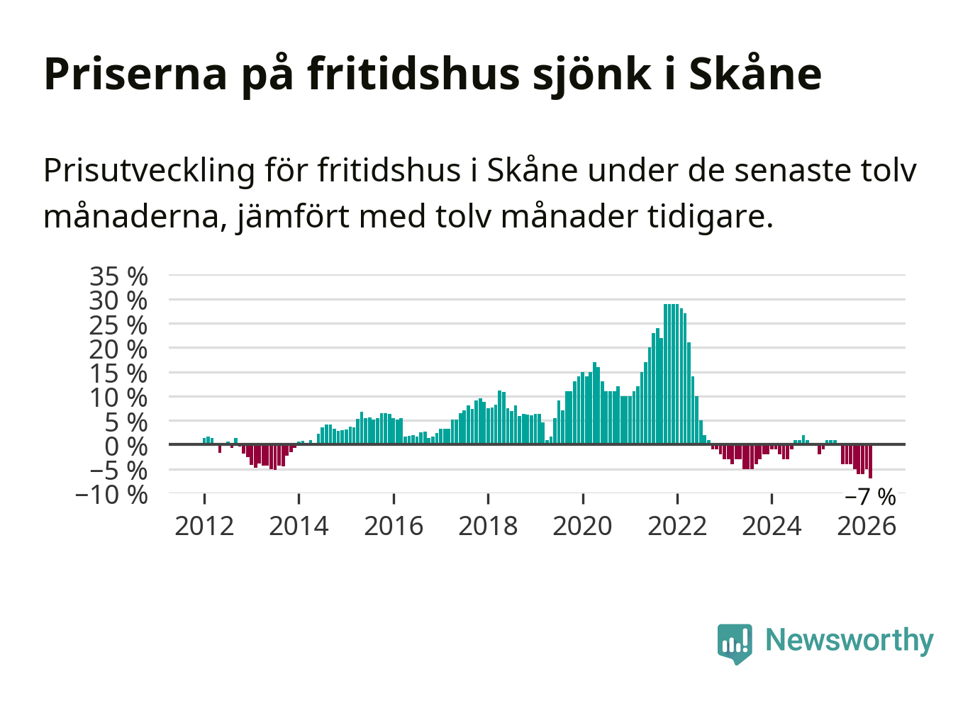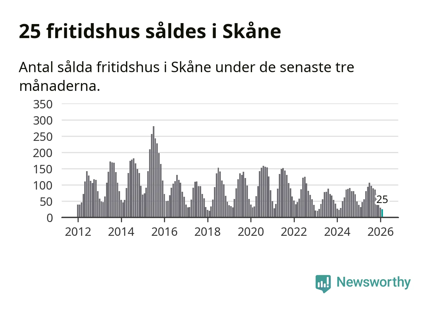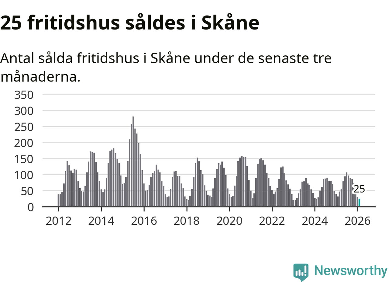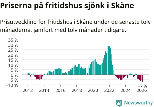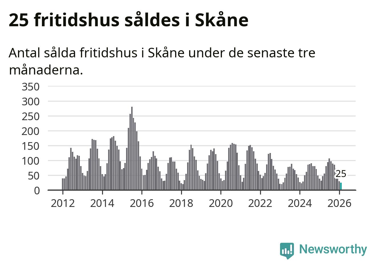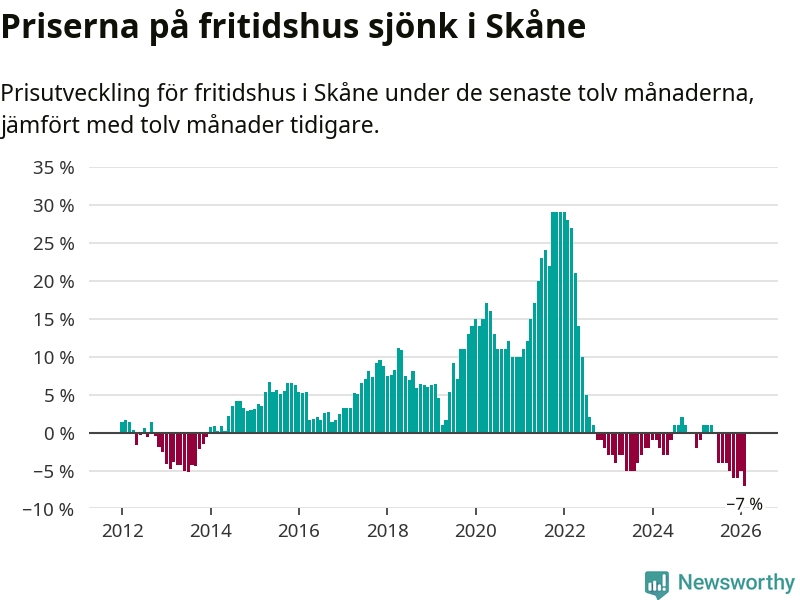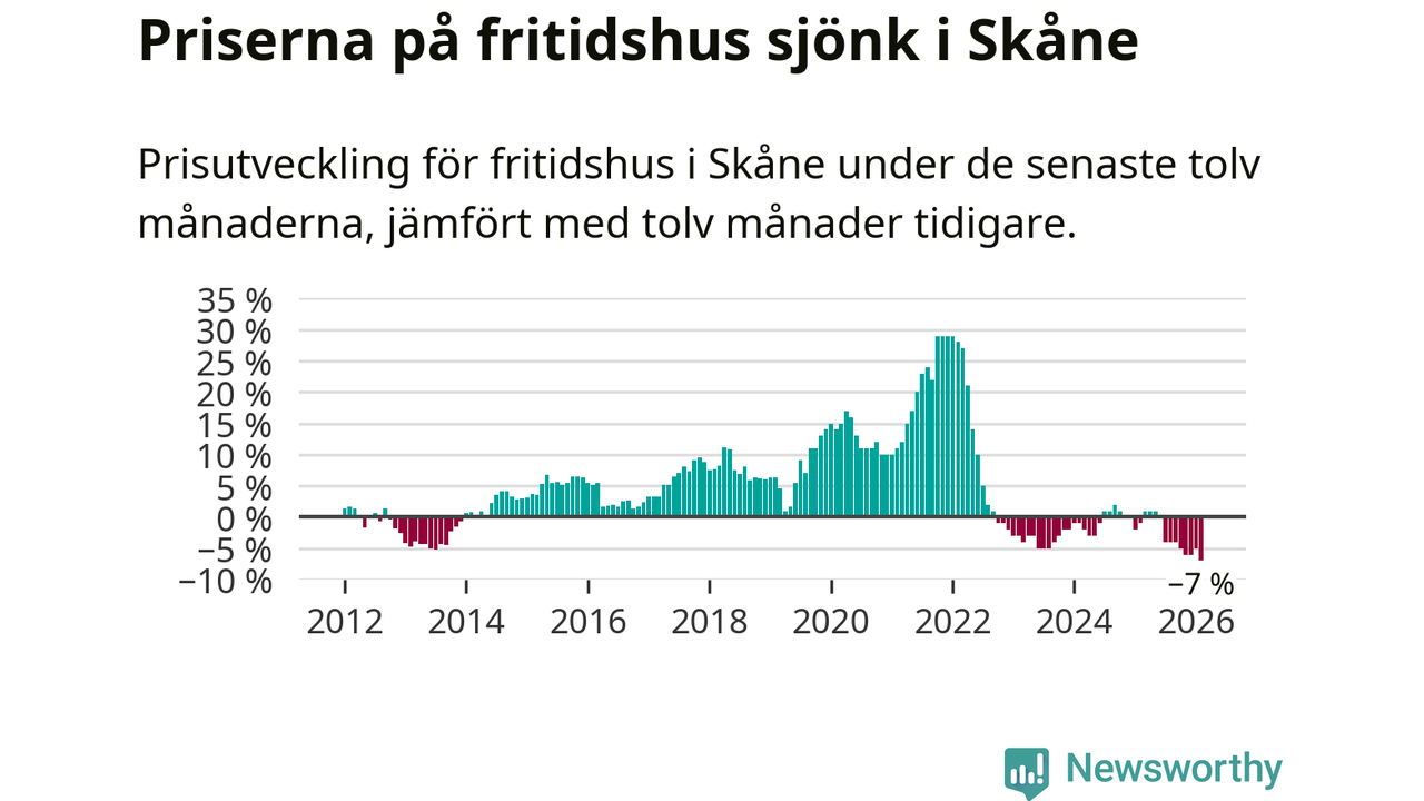 Sammanlagt såldes 25 fritidshus i Skåne län mellan december 2025 och februari till ett genomsnittligt pris på 1,9 miljoner kronor. I fjol gjordes 32 affärer vid den här tiden på året.