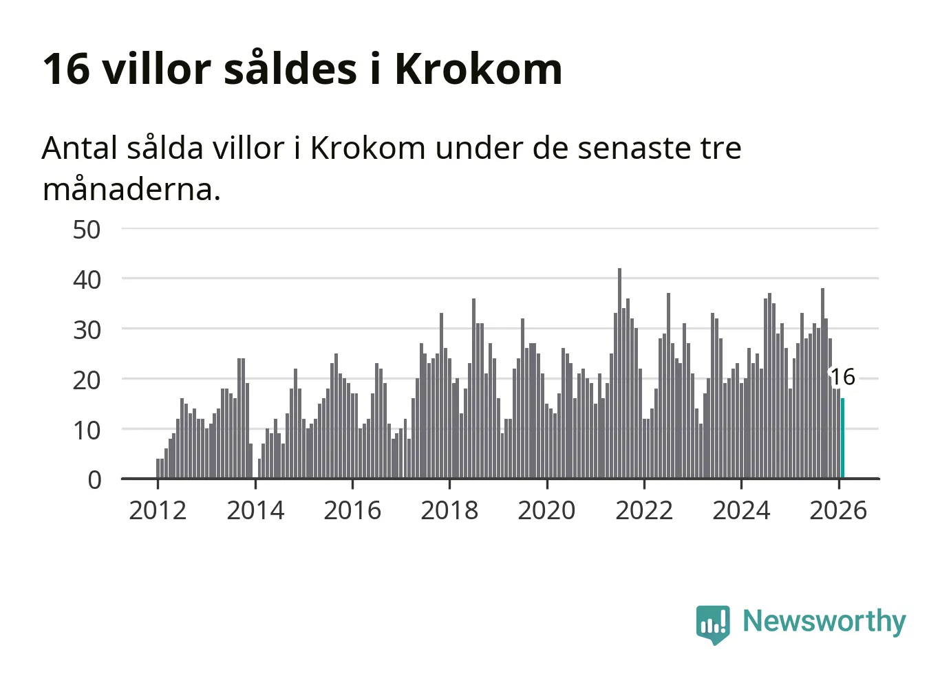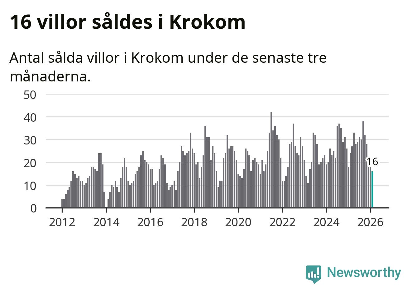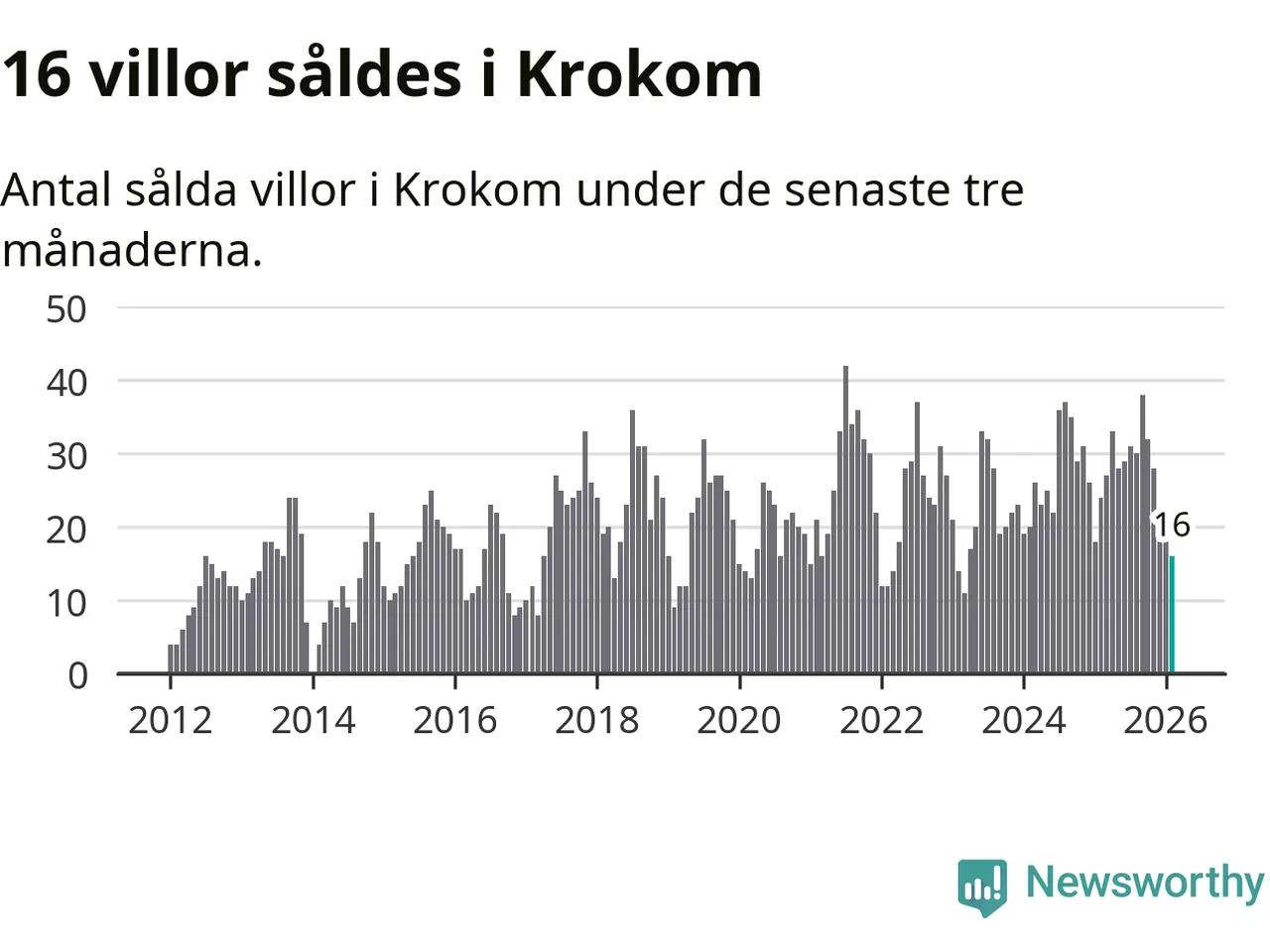 Mellan december och februari gjordes sammanlagt 16 affärer med villor i Krokoms kommun. Det kan jämföras med 24 vid motsvarande tid i fjol.