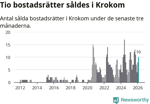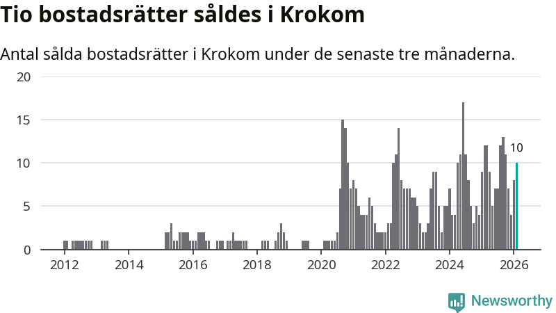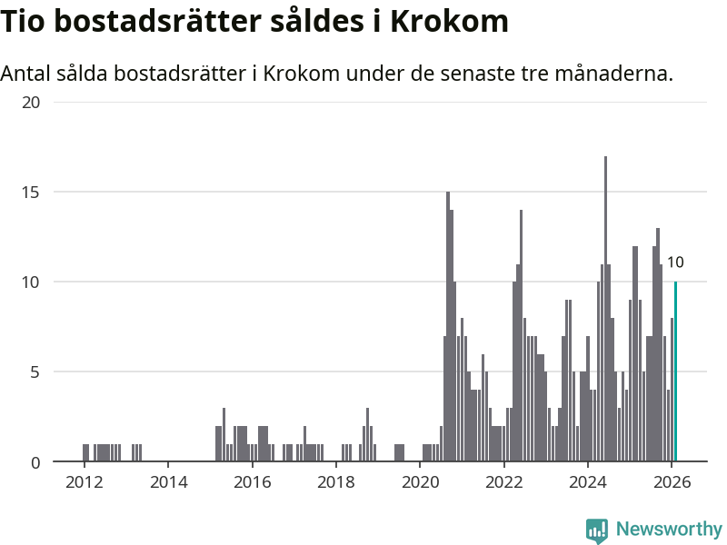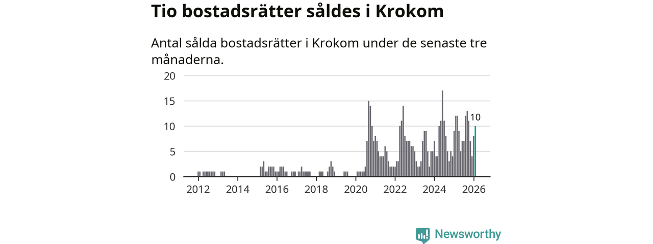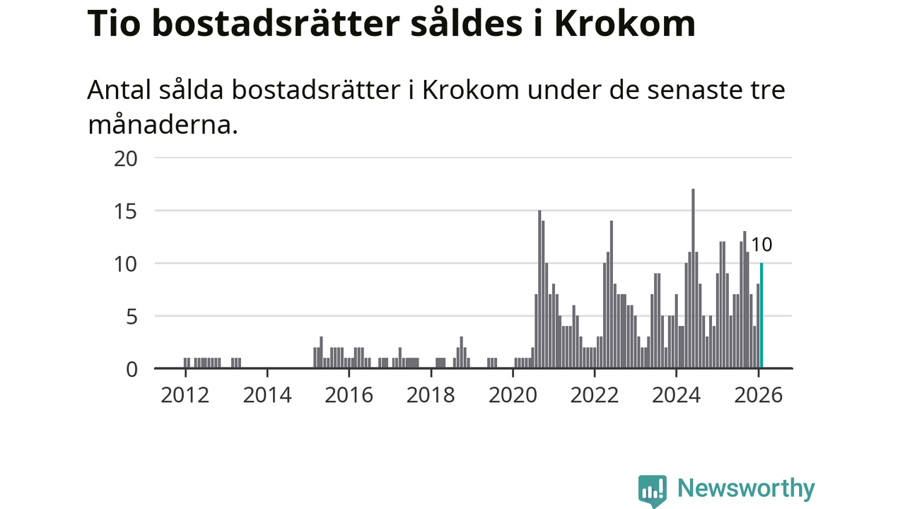 Mellan december och februari gjordes sammanlagt tio affärer med bostadsrätter i Krokoms kommun. Det kan jämföras med tolv vid motsvarande tid i fjol.