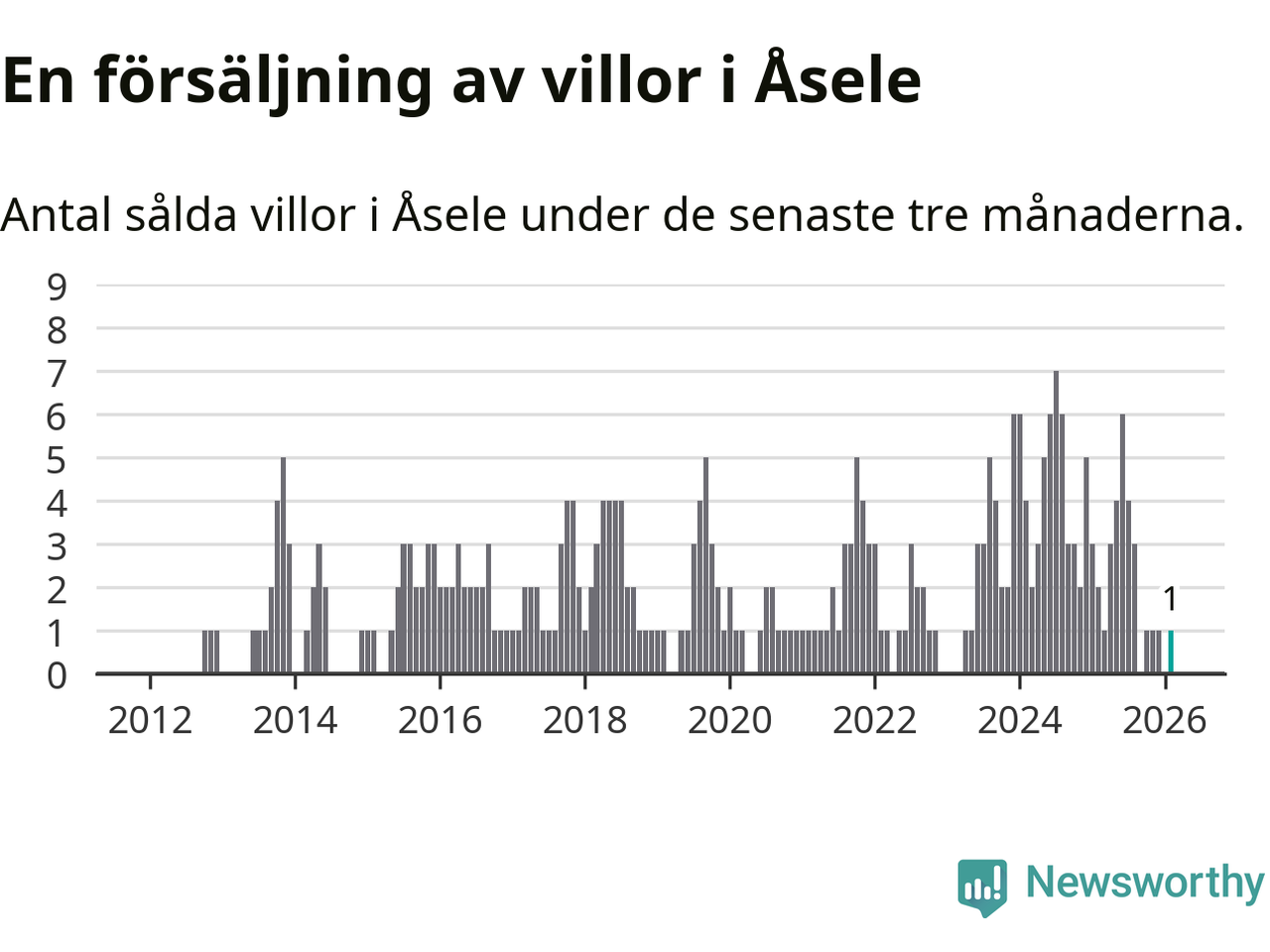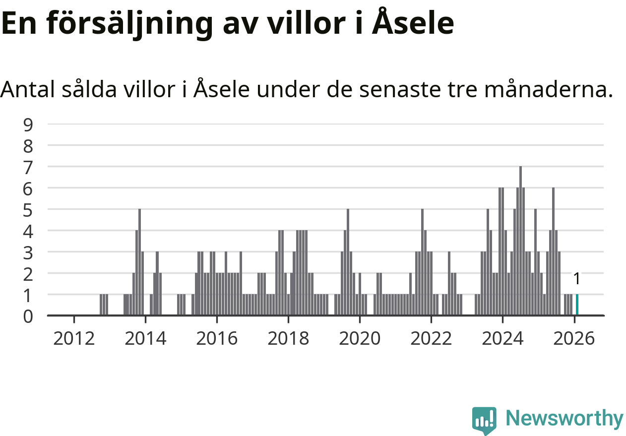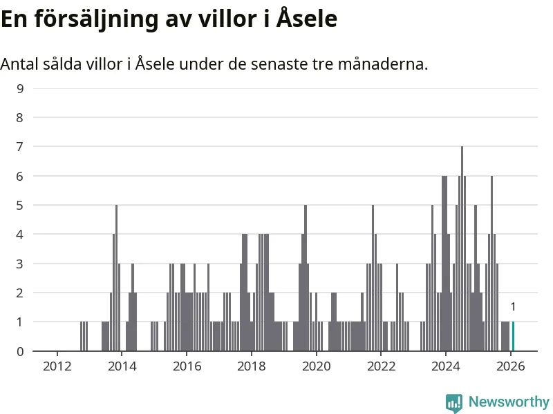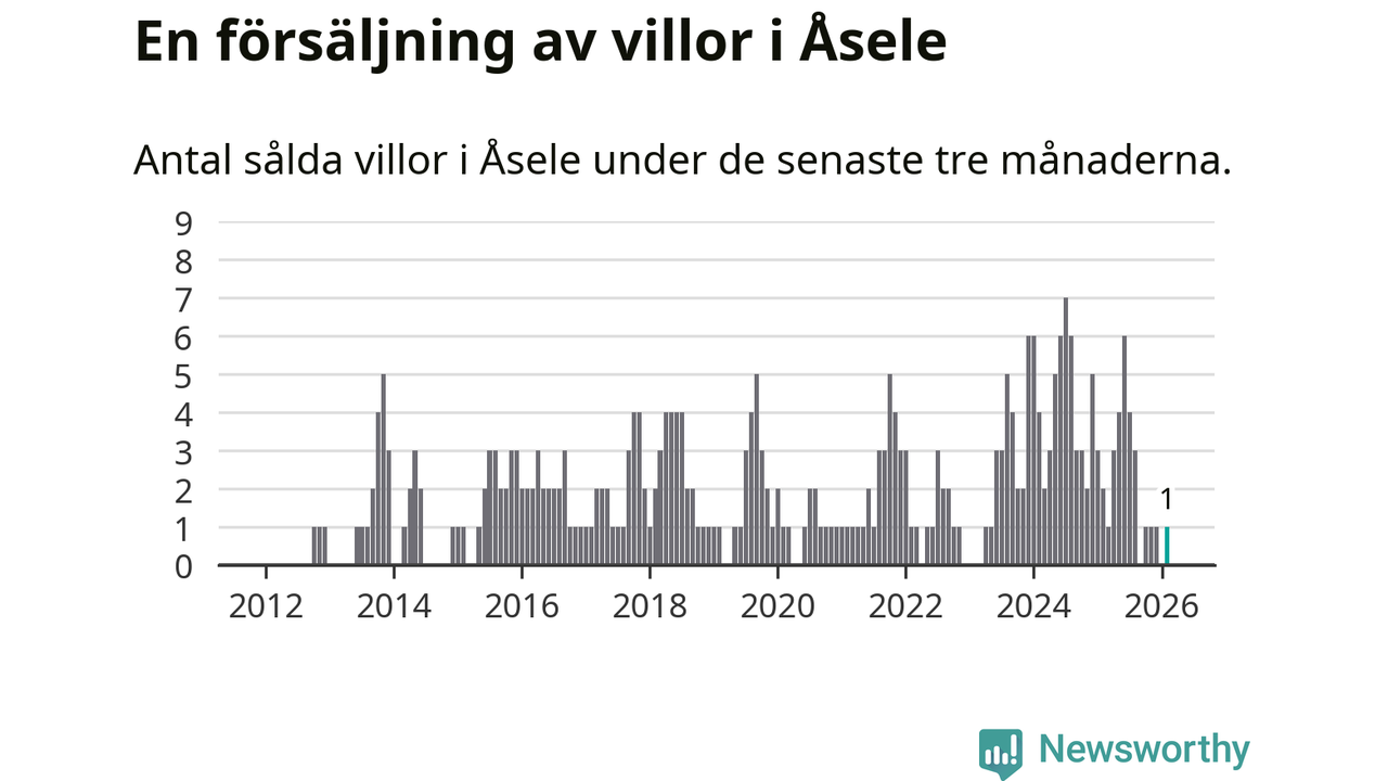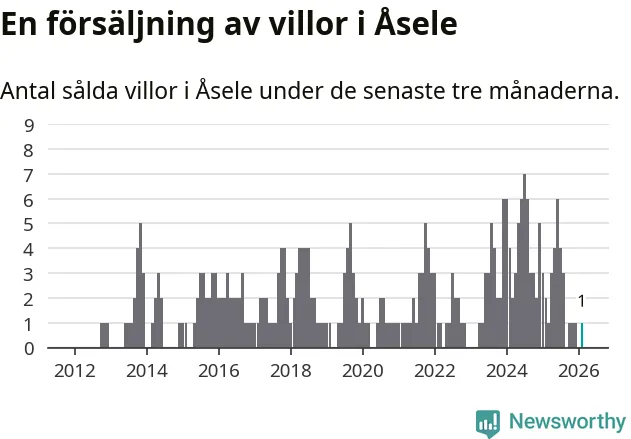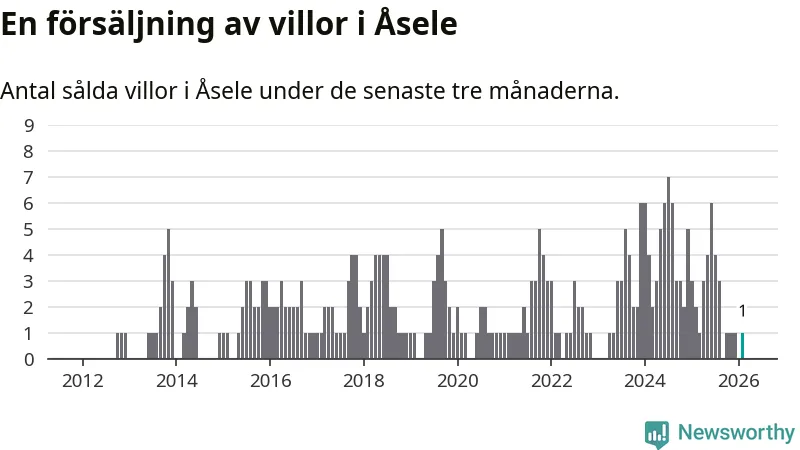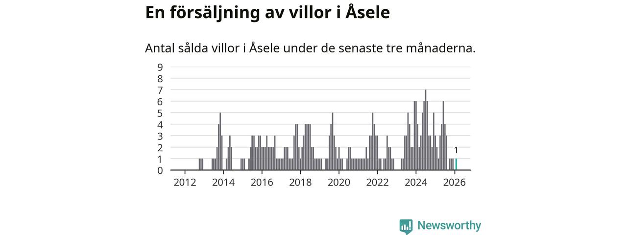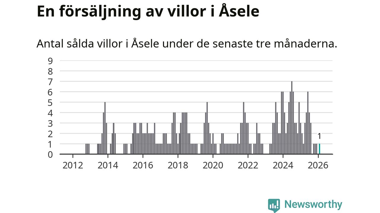 Mellan december och februari gjordes sammanlagt en affär med villor i Åsele kommun. Det kan jämföras med två vid motsvarande tid i fjol.