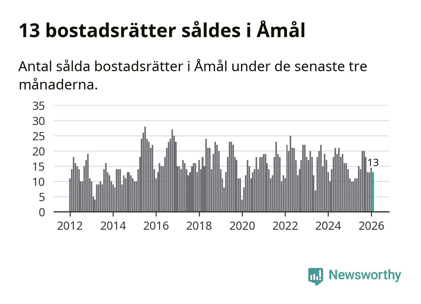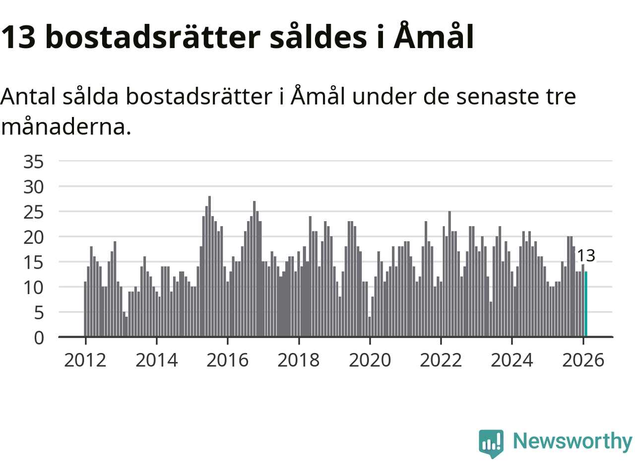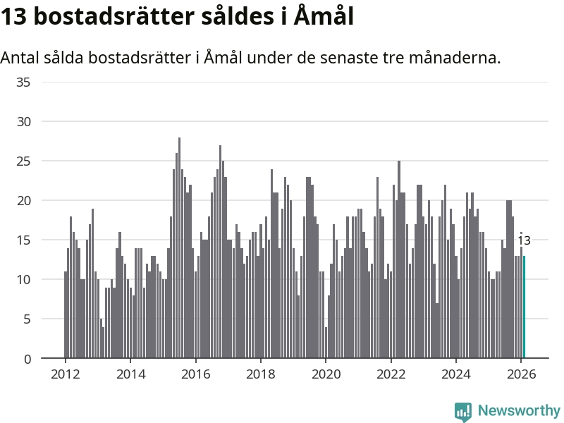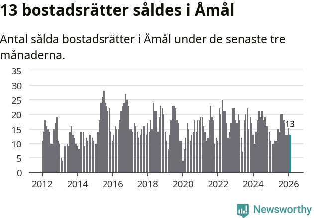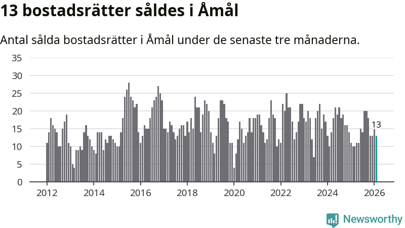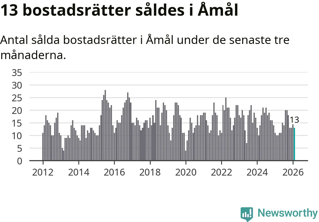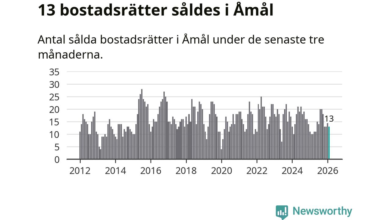 Mellan december och februari gjordes sammanlagt 13 affärer med bostadsrätter i Åmåls kommun. Det kan jämföras med tio vid motsvarande tid i fjol.