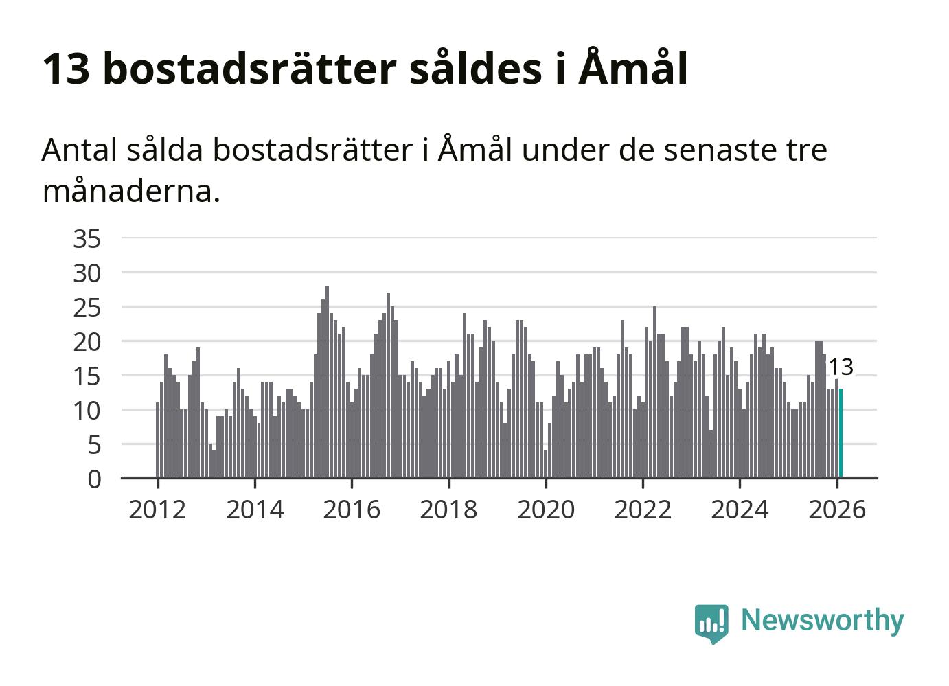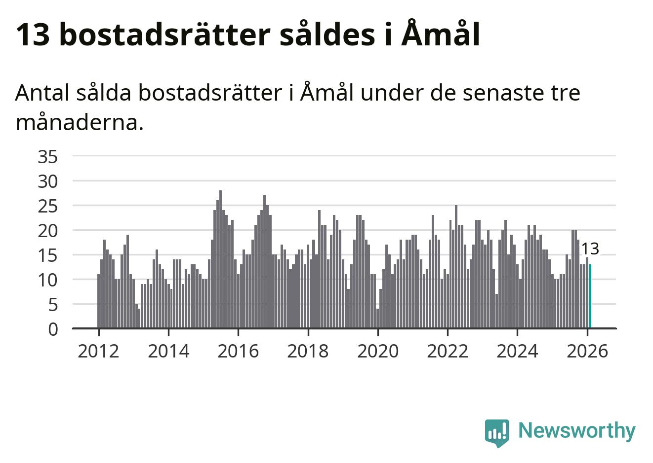 Graf: Antal sålda bostadsrätter i Åmåls kommun
