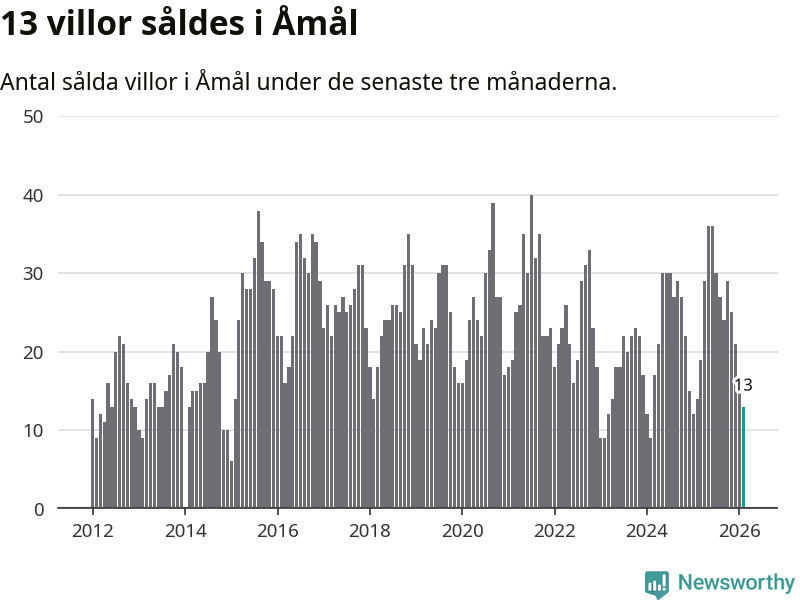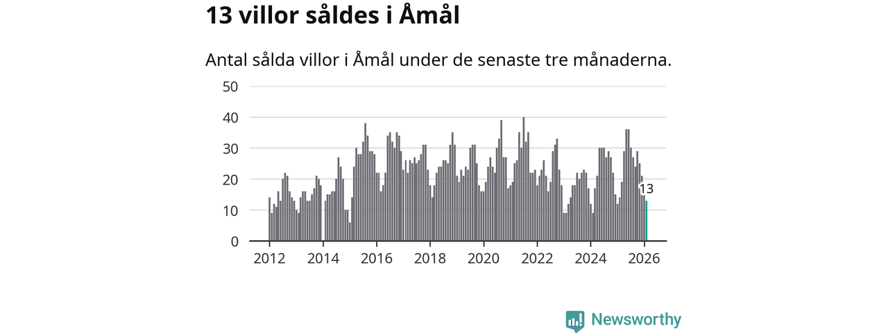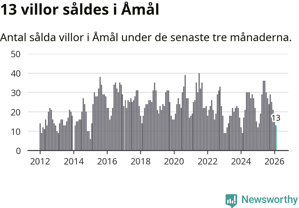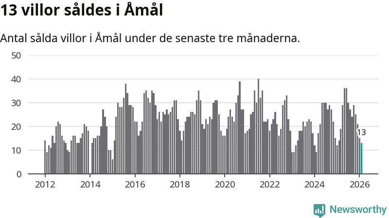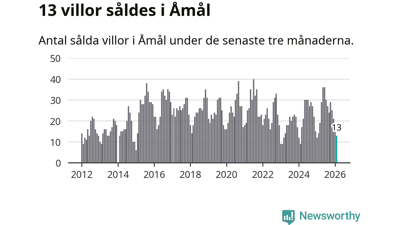 Mellan december och februari gjordes sammanlagt 13 affärer med villor i Åmåls kommun. Det kan jämföras med 14 vid motsvarande tid i fjol.