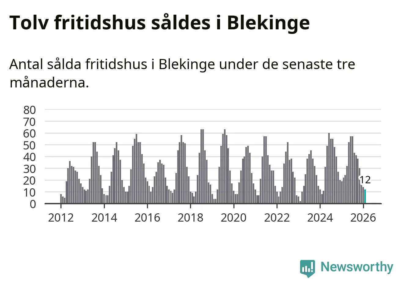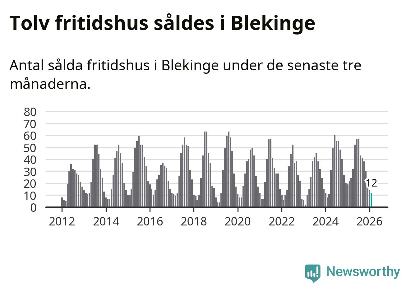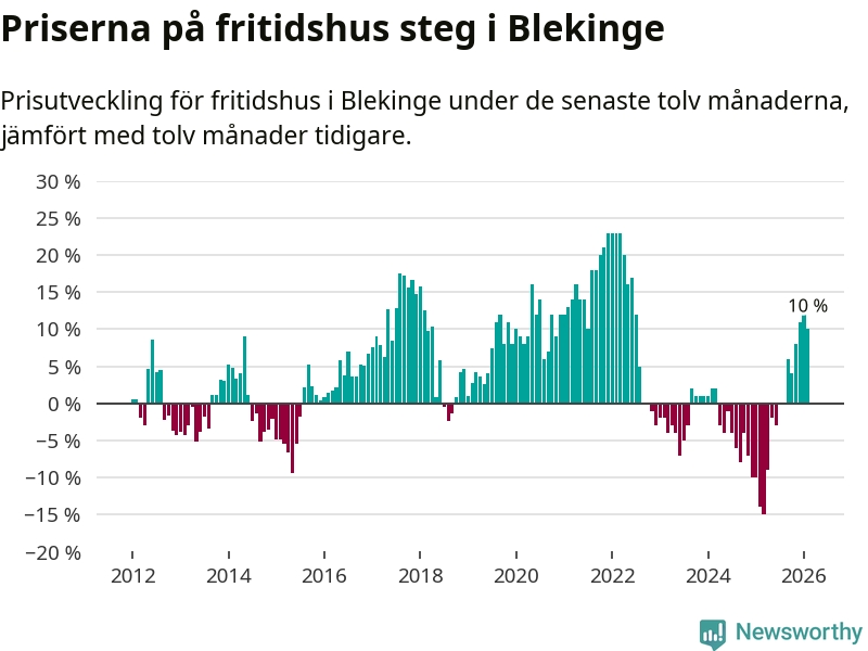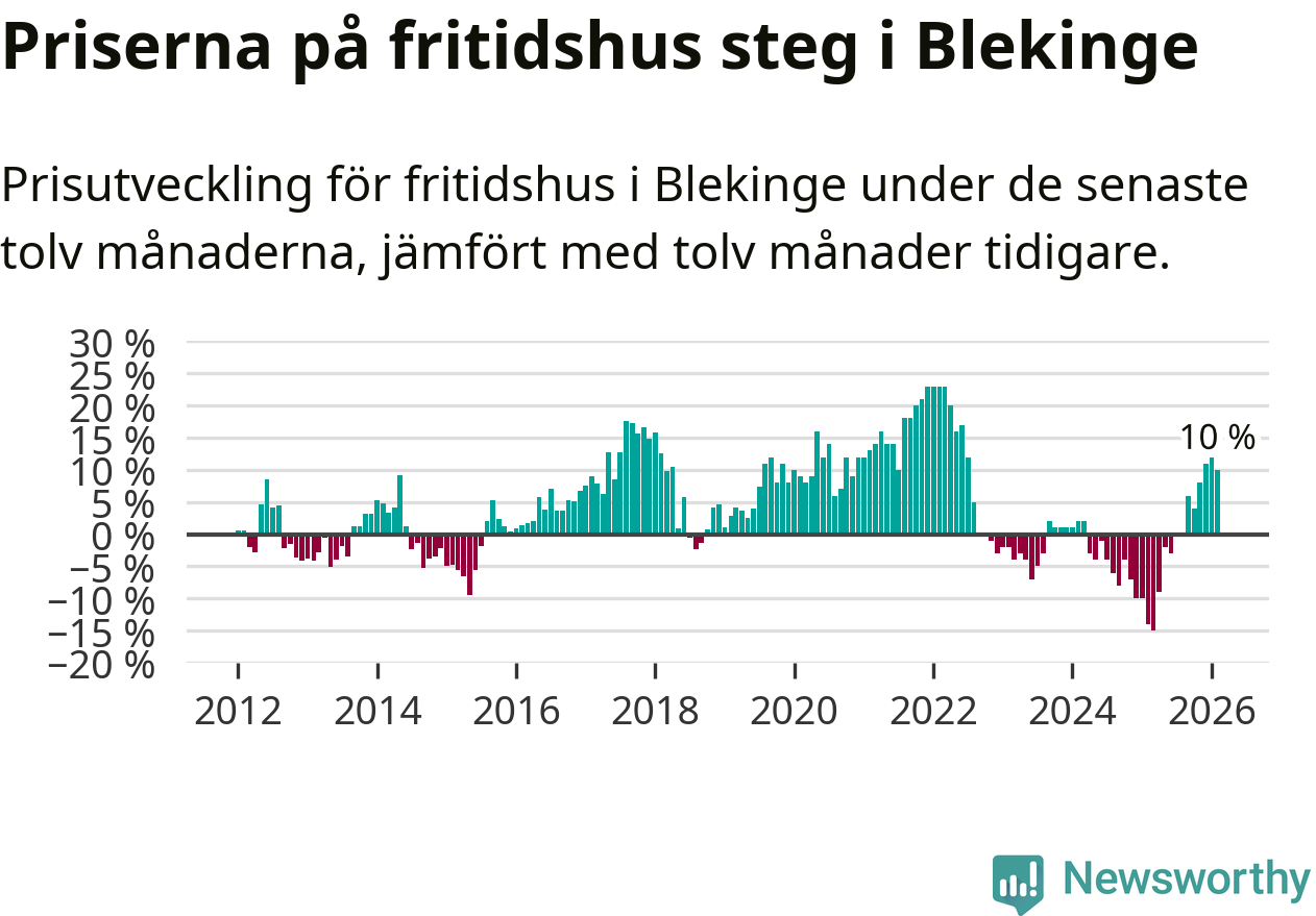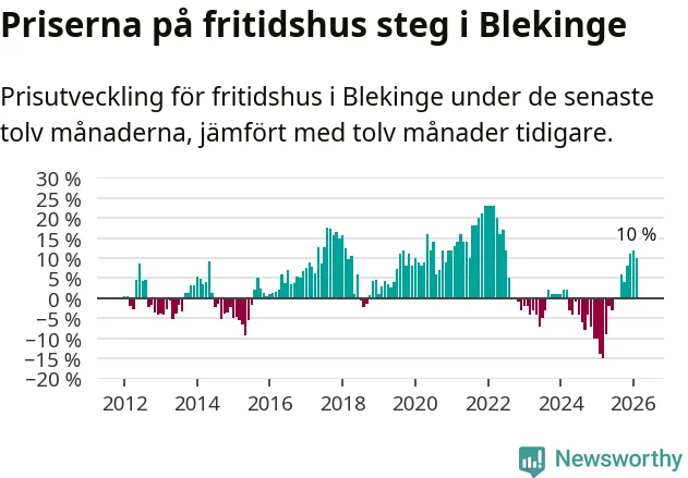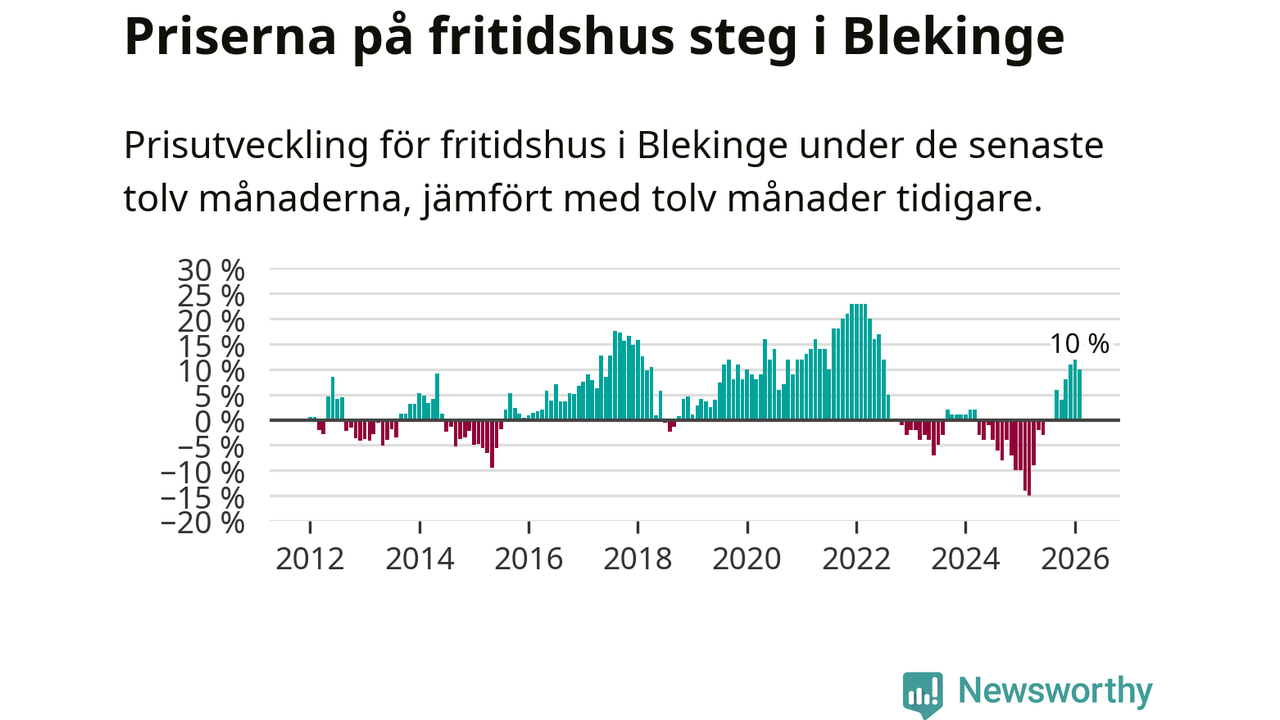 Sammanlagt såldes tolv fritidshus i Blekinge län mellan december 2025 och februari till ett genomsnittligt pris på 2,4 miljoner kronor. I fjol gjordes 22 affärer vid den här tiden på året.