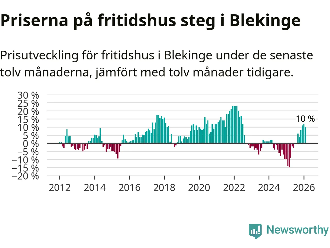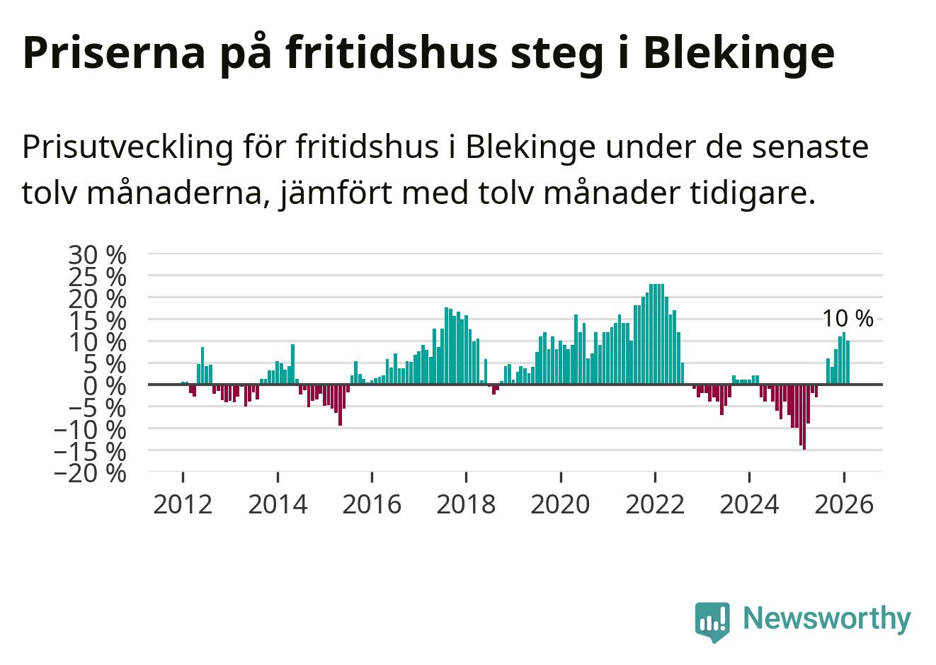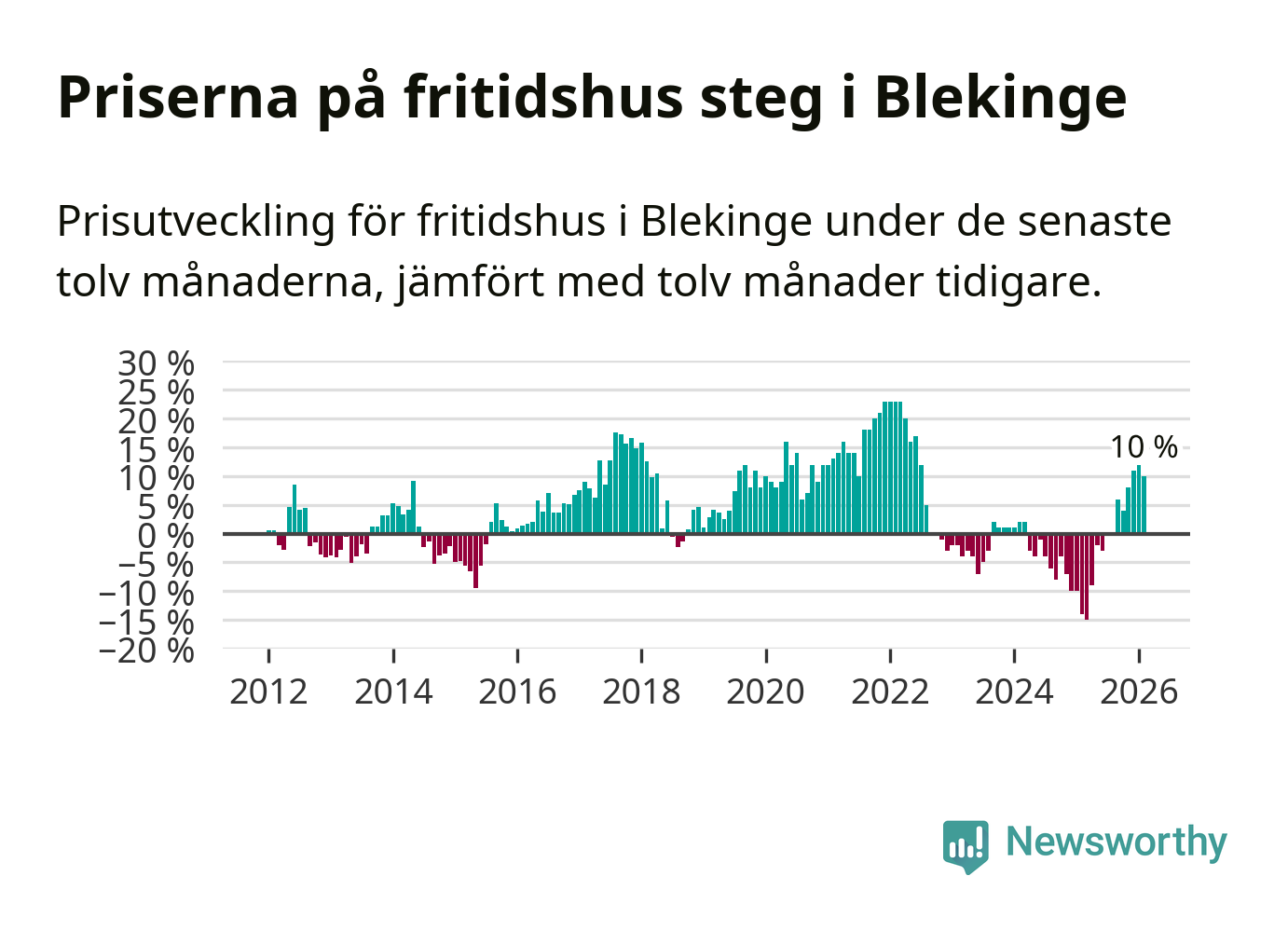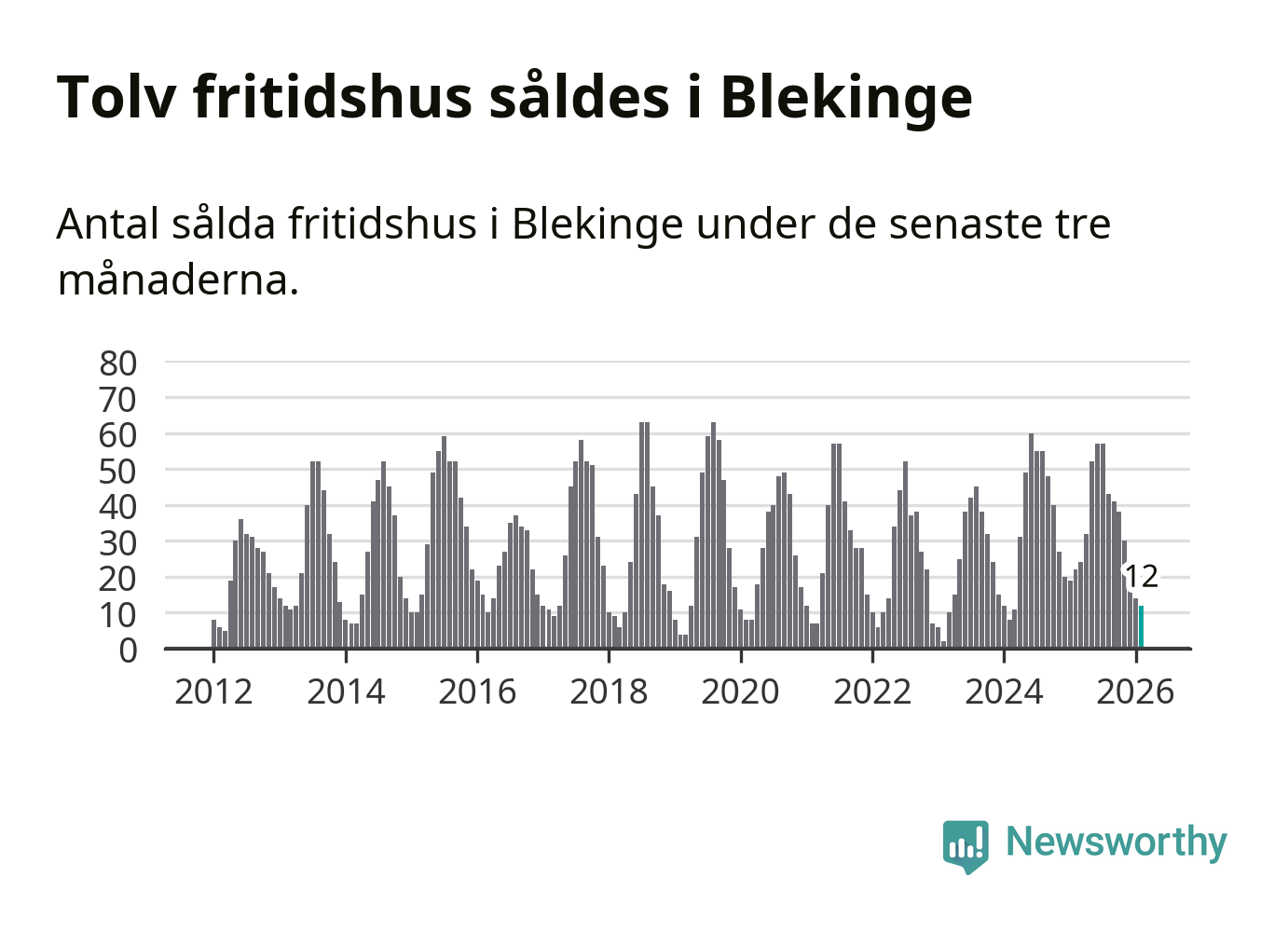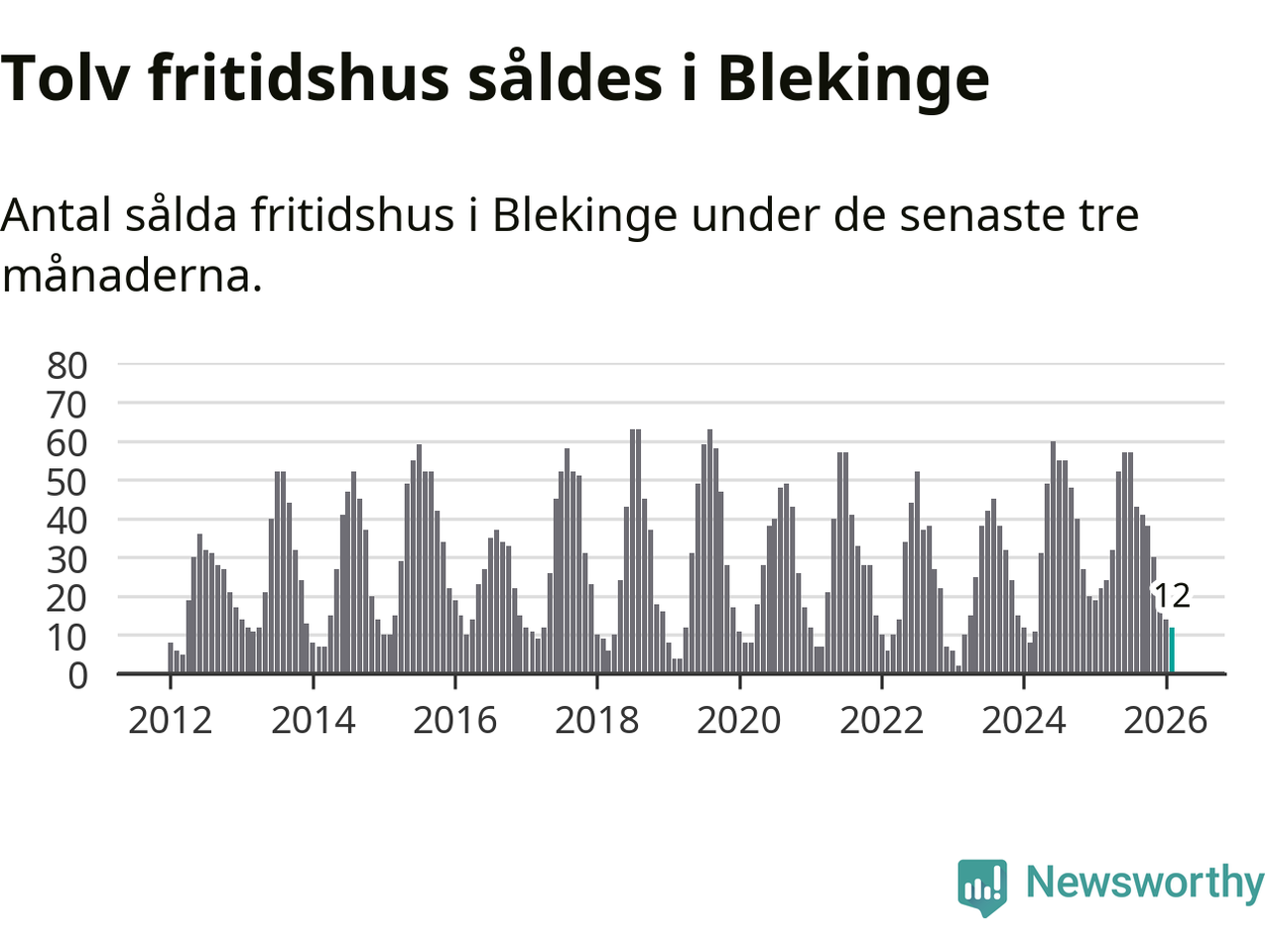 Sammanlagt såldes tolv fritidshus i Blekinge län mellan december 2025 och februari till ett genomsnittligt pris på 2,4 miljoner kronor. I fjol gjordes 22 affärer vid den här tiden på året.