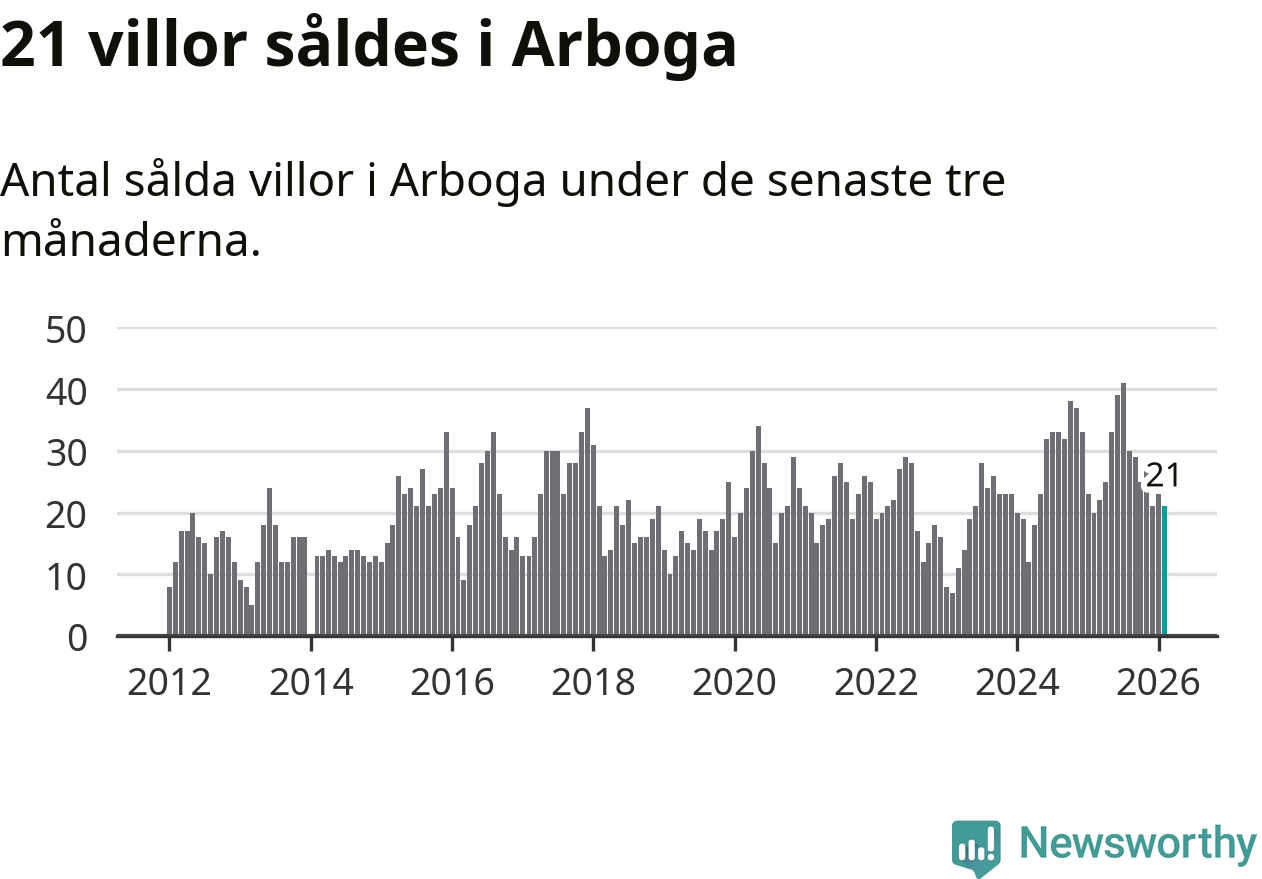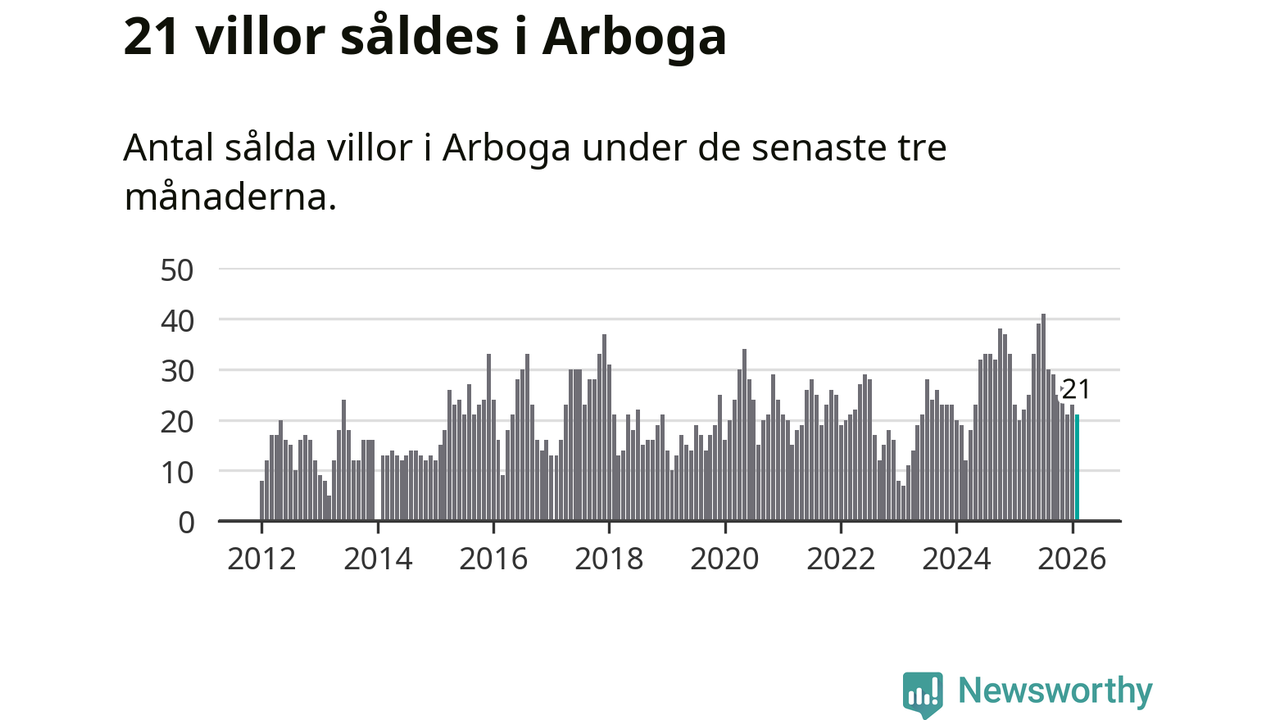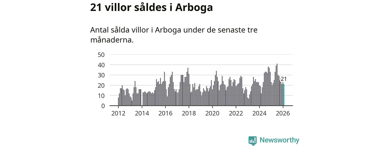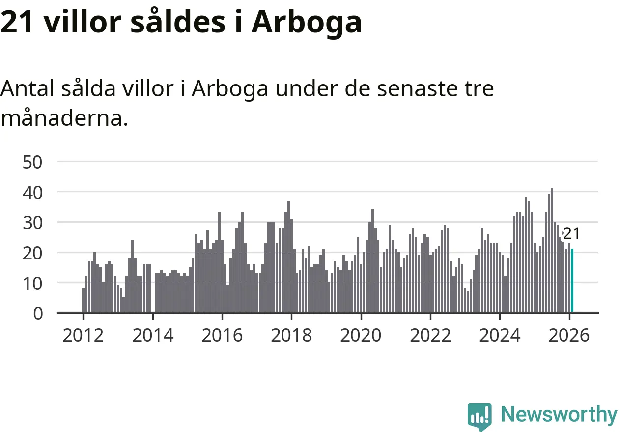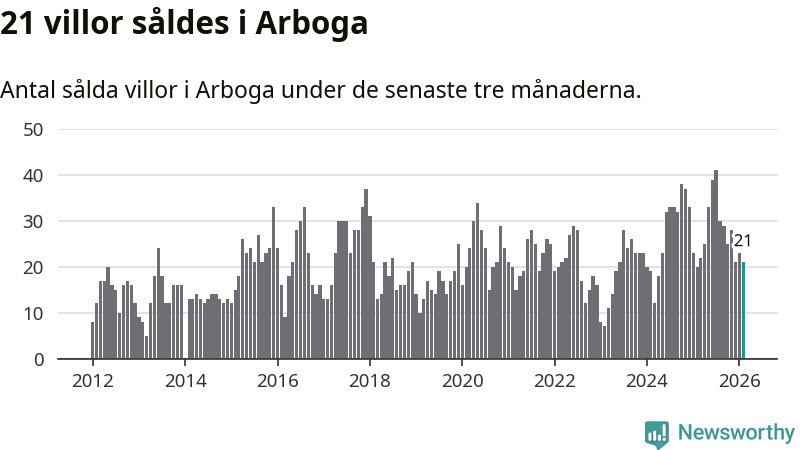 Mellan december och februari gjordes sammanlagt 21 affärer med villor i Arboga kommun. Det kan jämföras med 20 vid motsvarande tid i fjol.