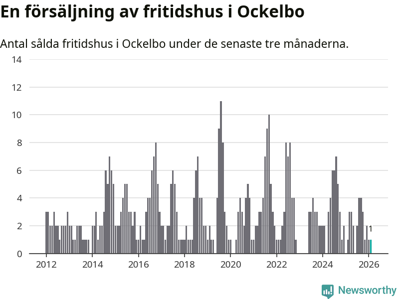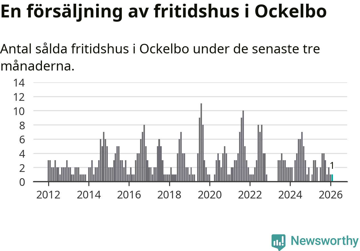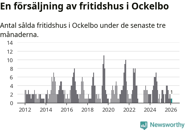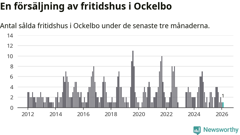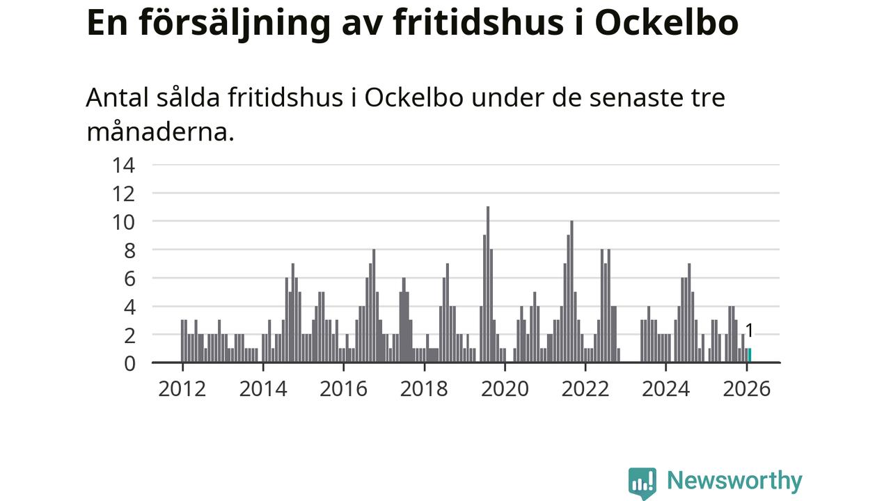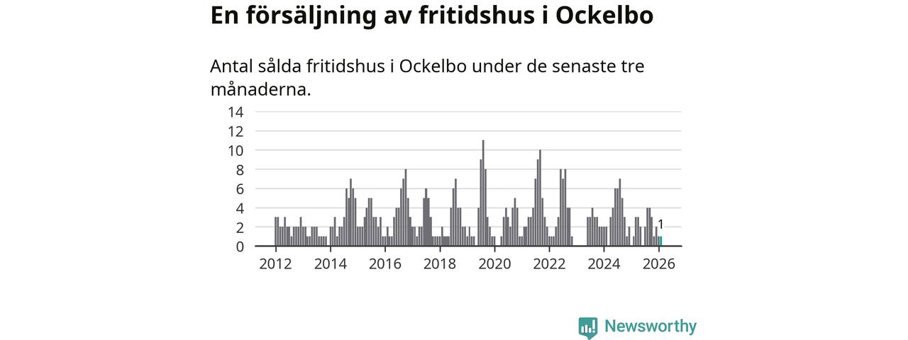 Mellan december och februari gjordes sammanlagt en affär med fritidshus i Ockelbo kommun. Det är lika många affärer som vid motsvarande tid i fjol.