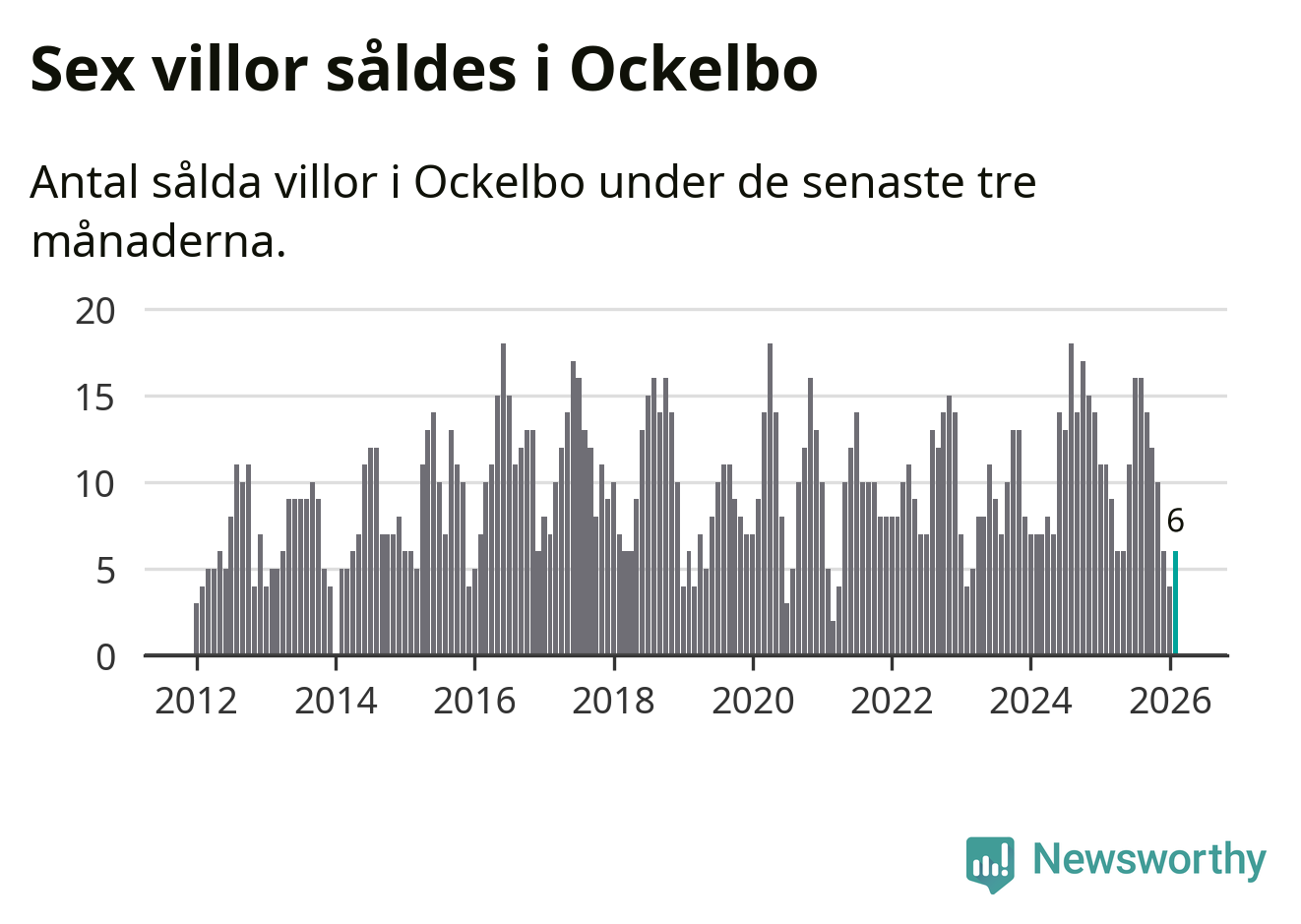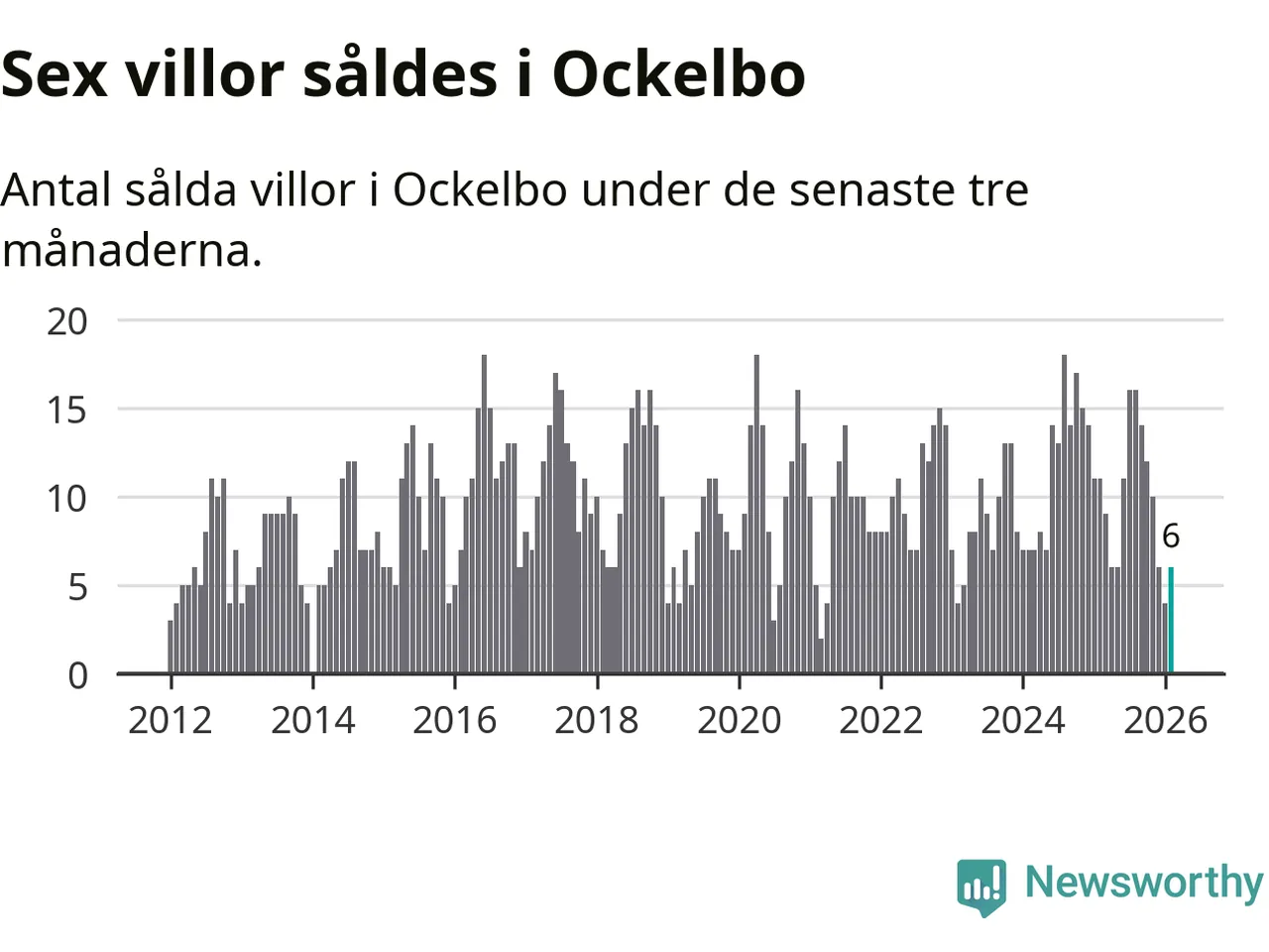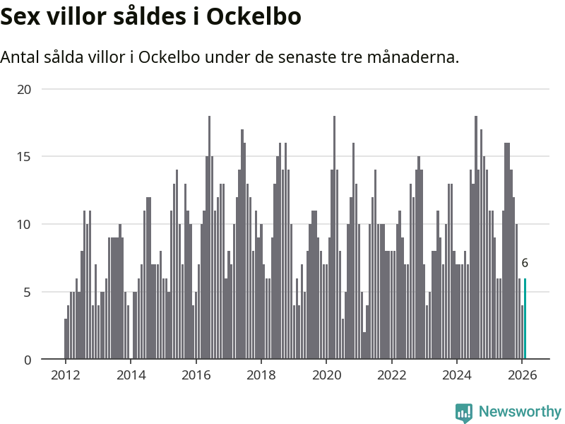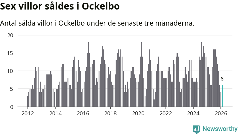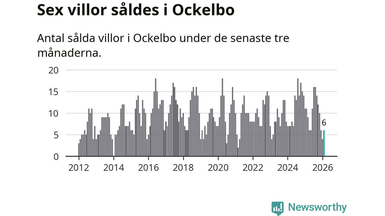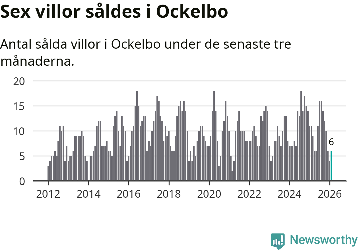 Mellan december och februari gjordes sammanlagt sex affärer med villor i Ockelbo kommun. Det kan jämföras med elva vid motsvarande tid i fjol.