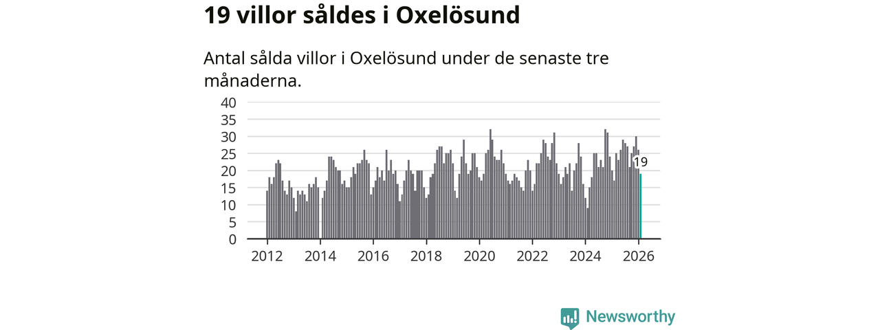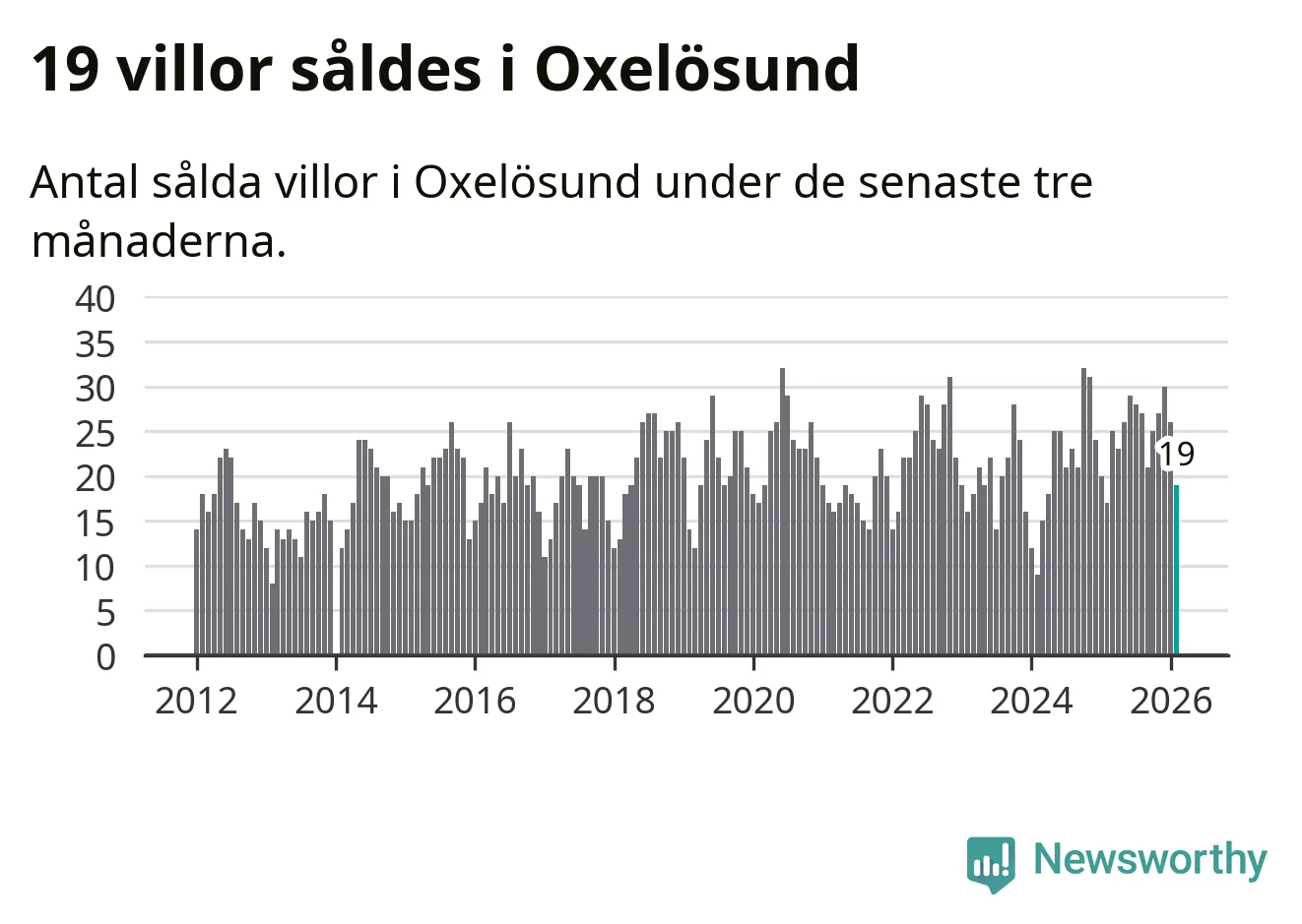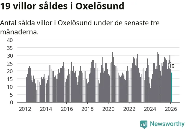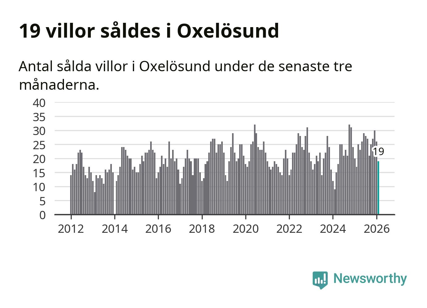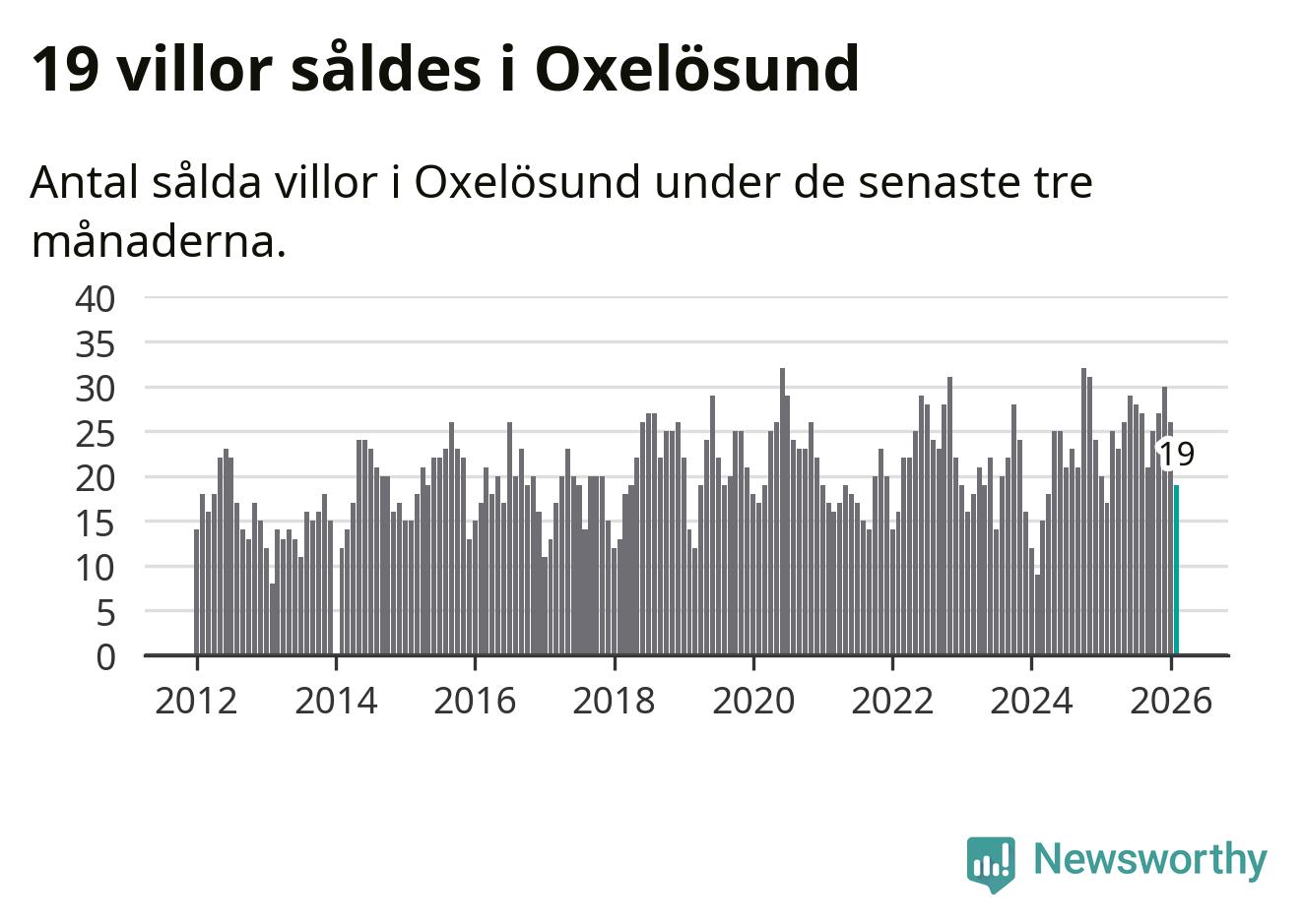 Mellan december och februari gjordes sammanlagt 19 affärer med villor i Oxelösunds kommun. Det kan jämföras med 17 vid motsvarande tid i fjol.