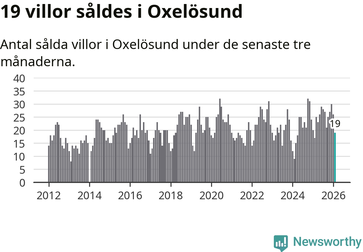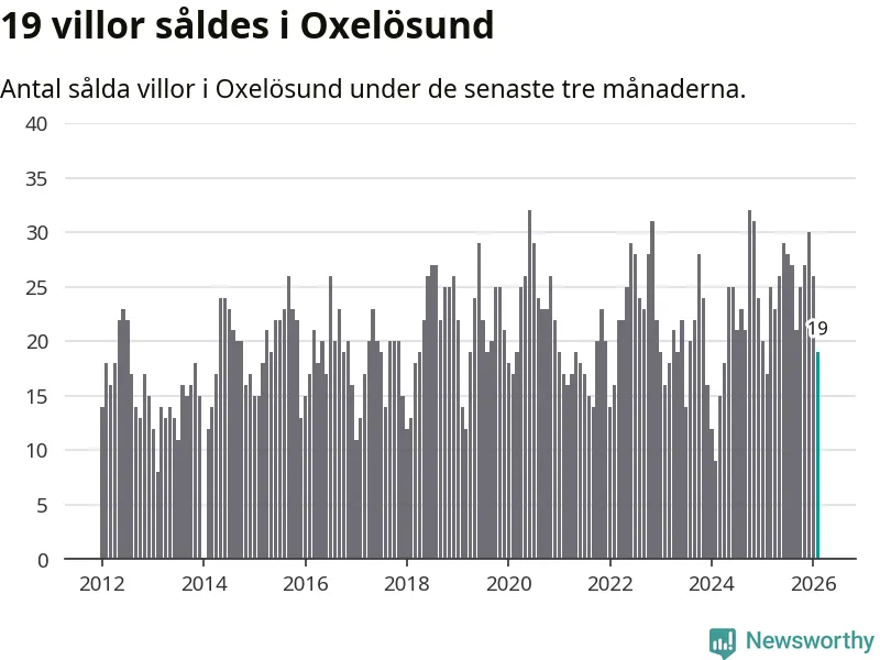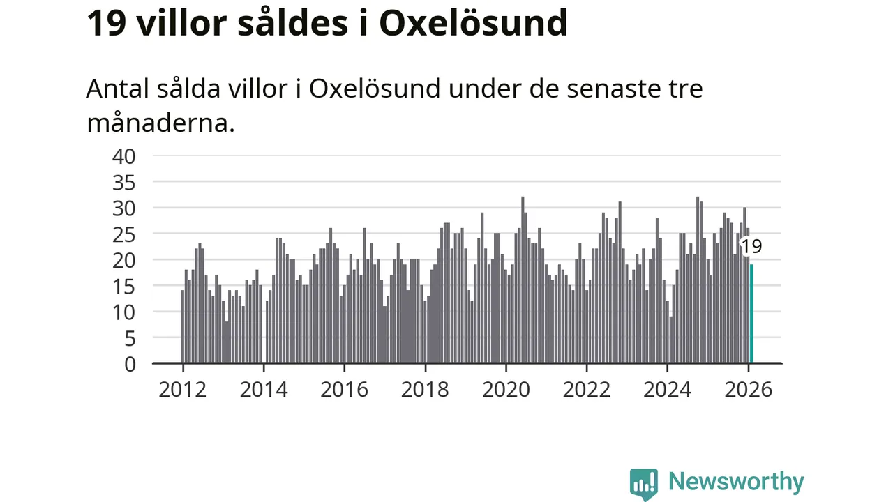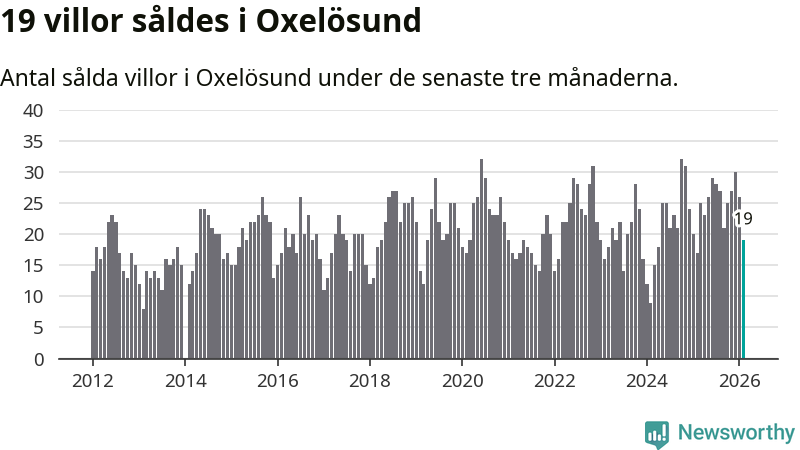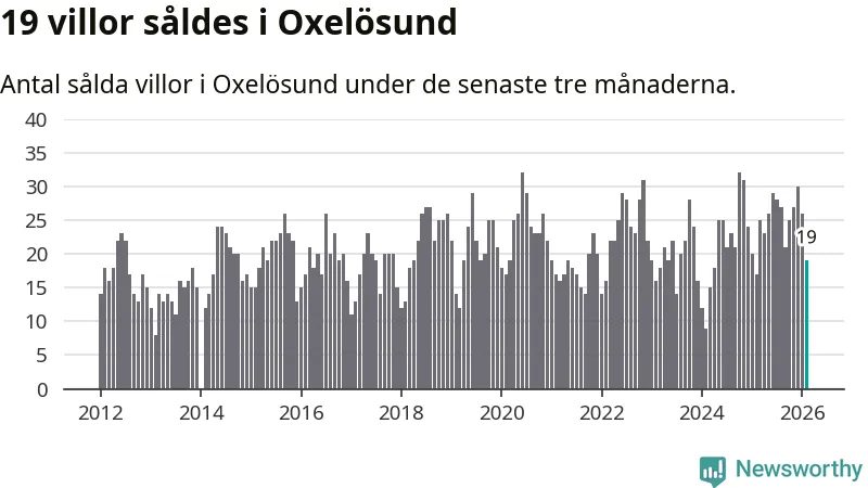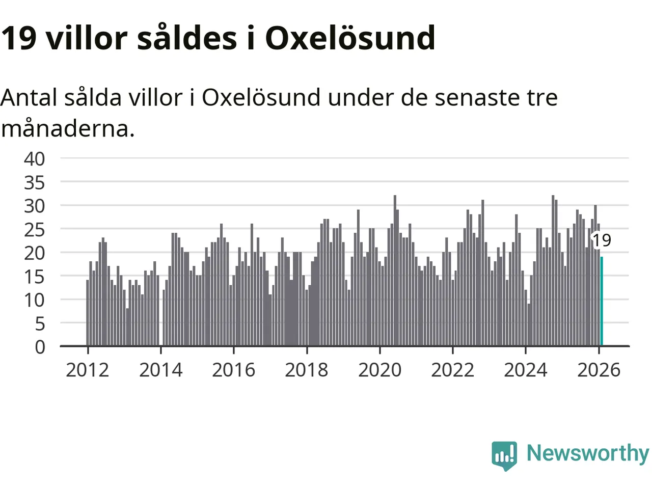 Mellan december och februari gjordes sammanlagt 19 affärer med villor i Oxelösunds kommun. Det kan jämföras med 17 vid motsvarande tid i fjol.