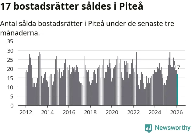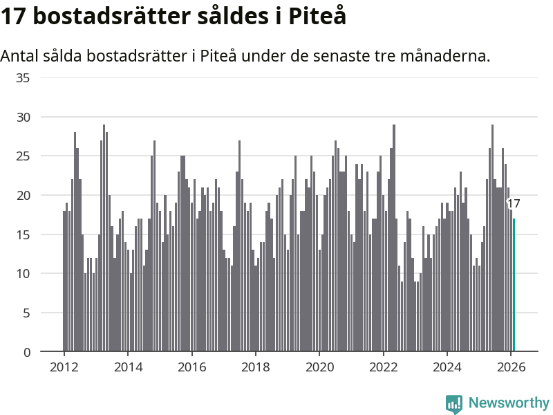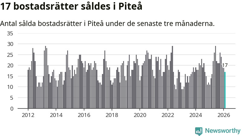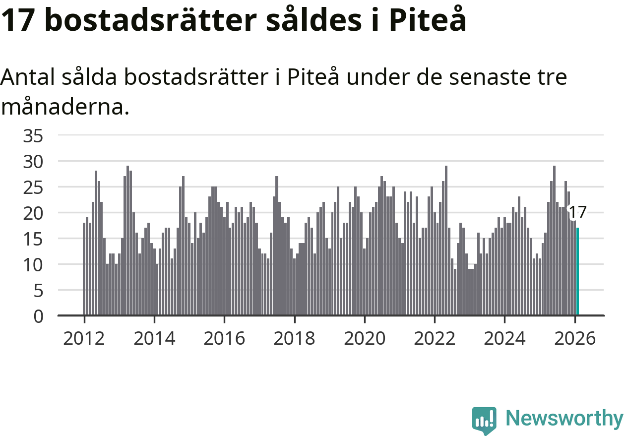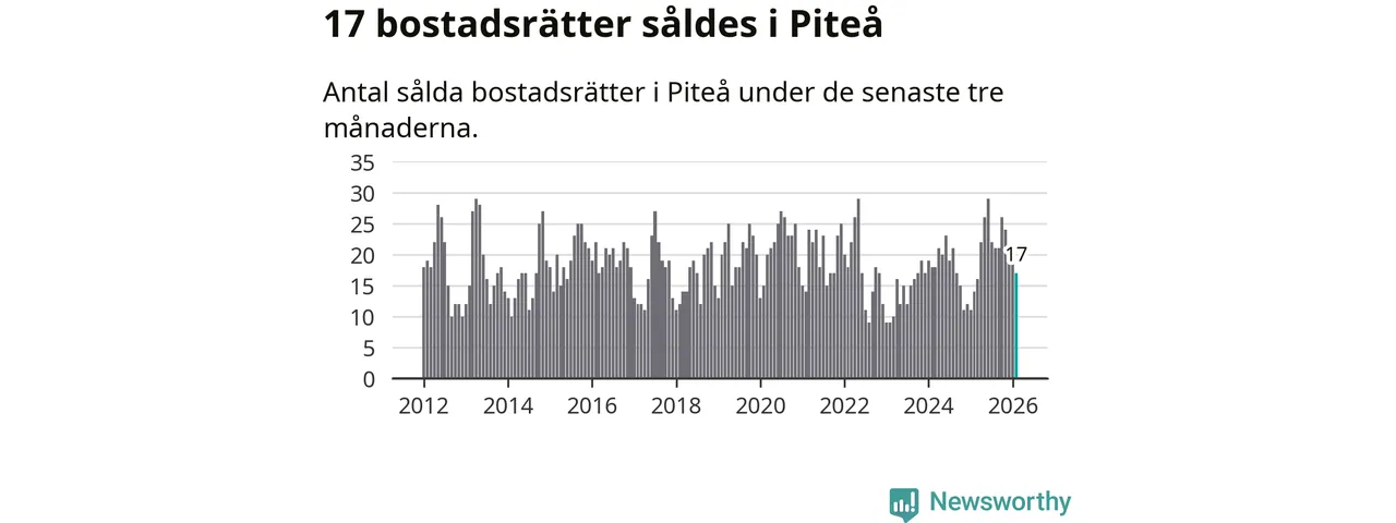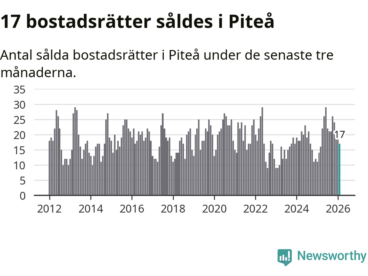 Mellan december och februari gjordes sammanlagt 17 affärer med bostadsrätter i Piteå kommun. Det kan jämföras med 14 vid motsvarande tid i fjol.