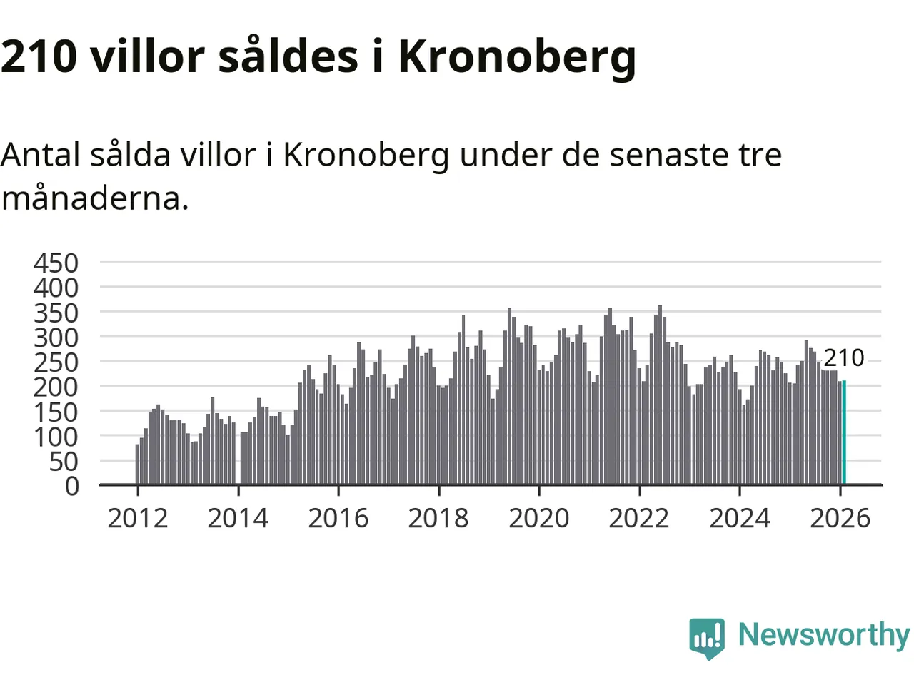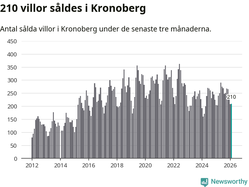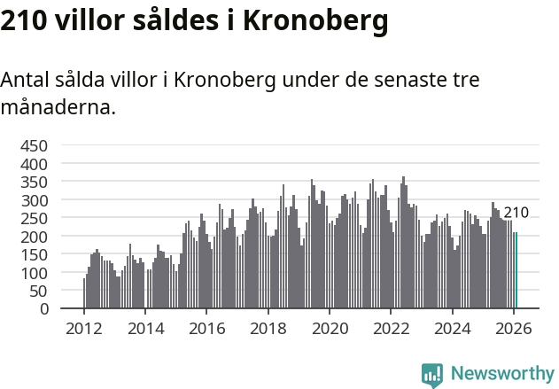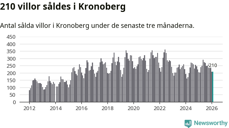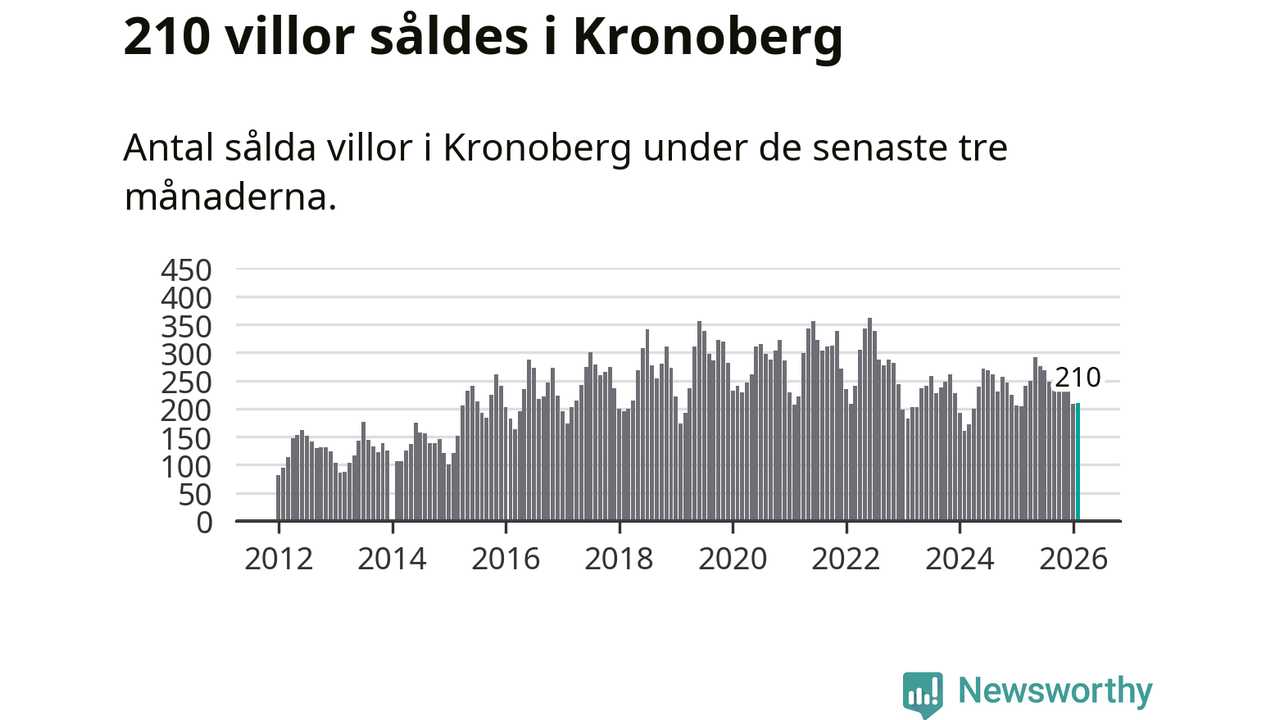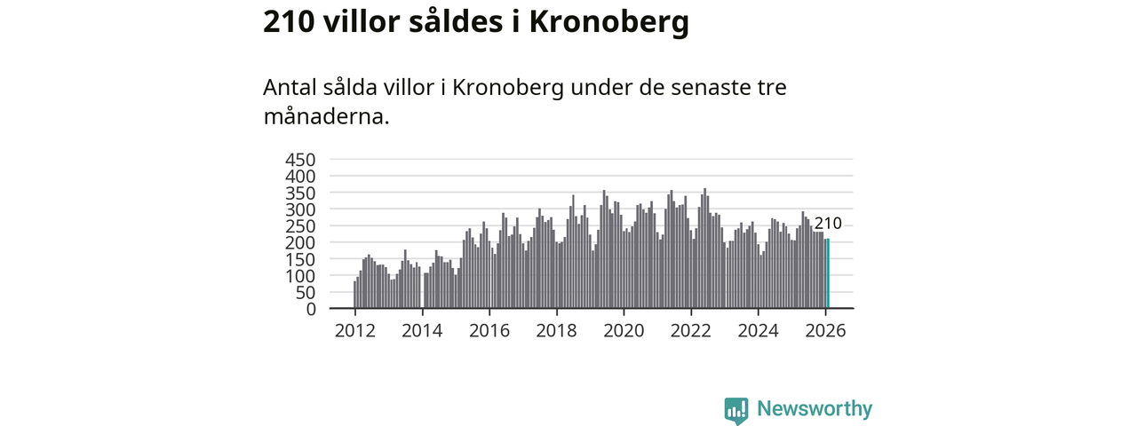 Sammanlagt såldes 210 villor i Kronobergs län mellan december och februari till ett genomsnittligt pris på 2,3 miljoner kronor. I fjol gjordes 204 affärer vid den här tiden på året.