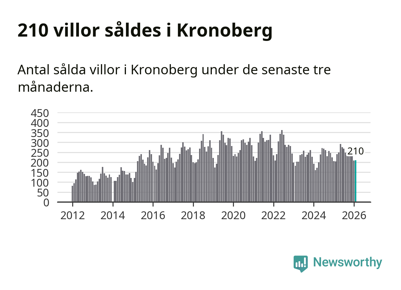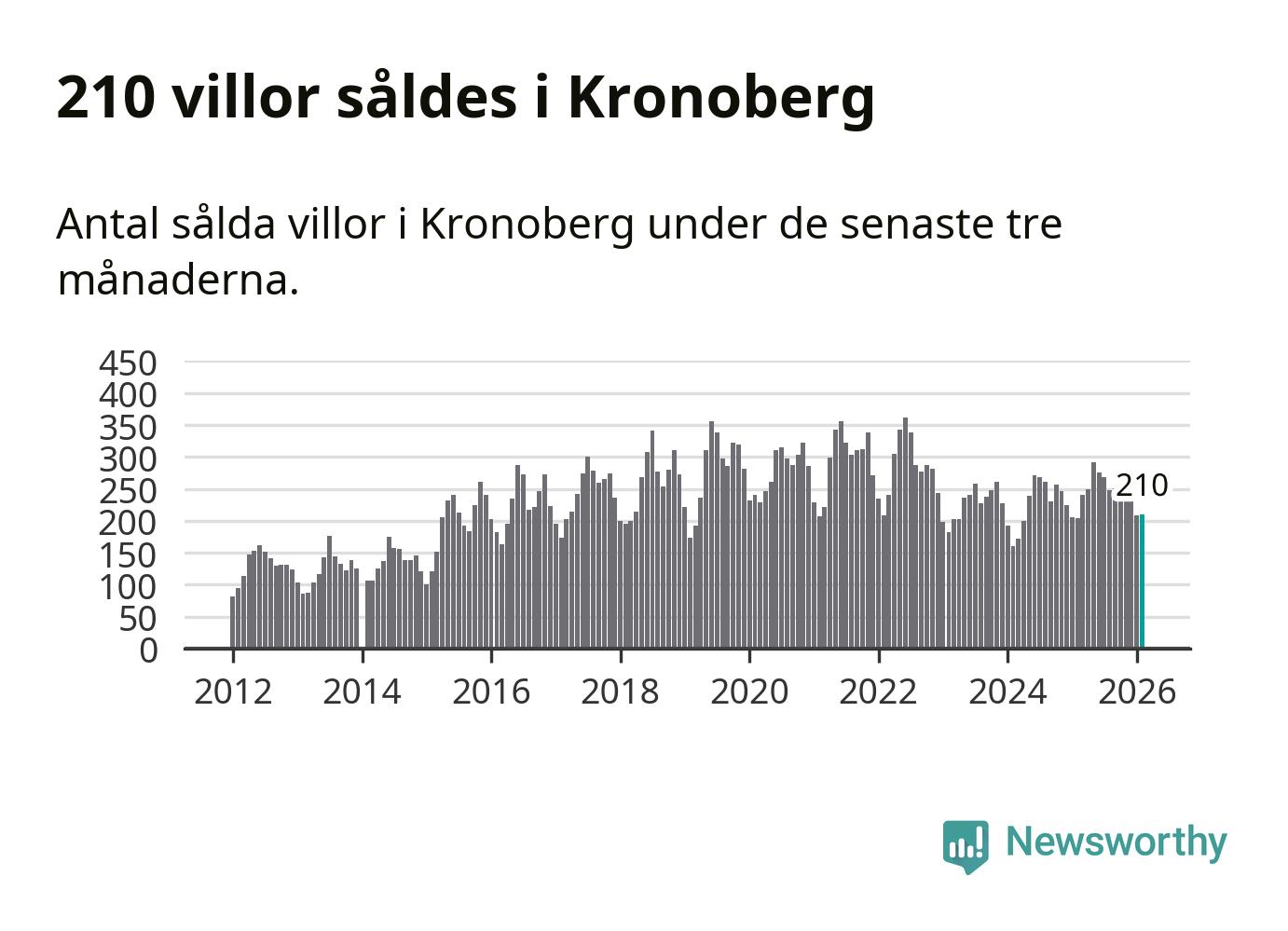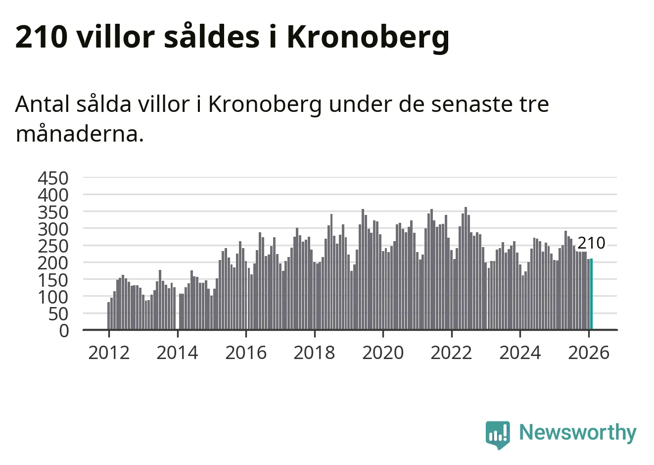 Sammanlagt såldes 210 villor i Kronobergs län mellan december och februari till ett genomsnittligt pris på 2,3 miljoner kronor. I fjol gjordes 204 affärer vid den här tiden på året.