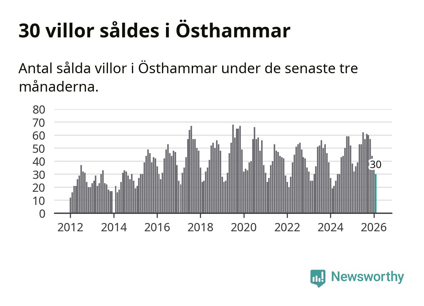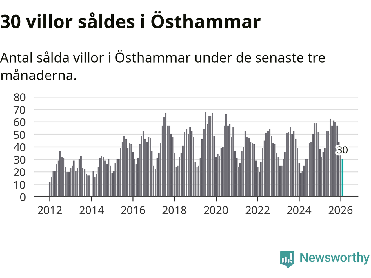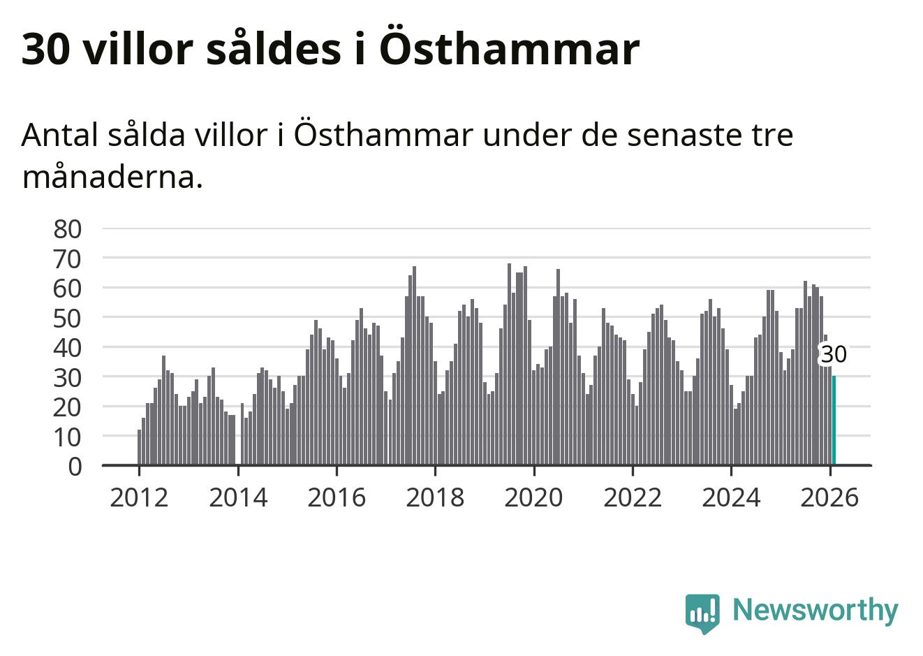 Sammanlagt såldes 30 villor i Östhammars kommun mellan december och februari till ett genomsnittligt pris på 2,7 miljoner kronor. I fjol gjordes 32 affärer vid den här tiden på året.