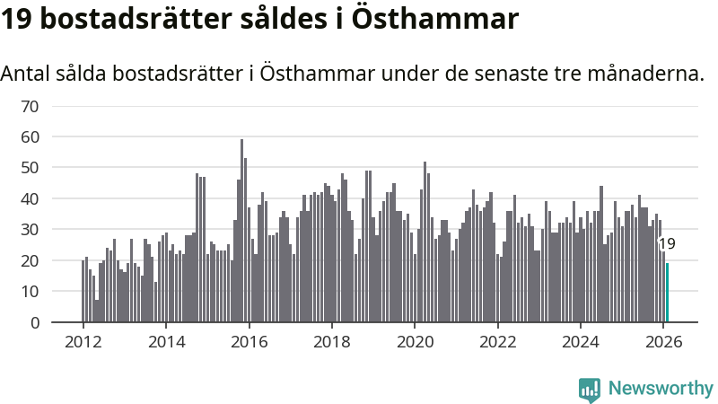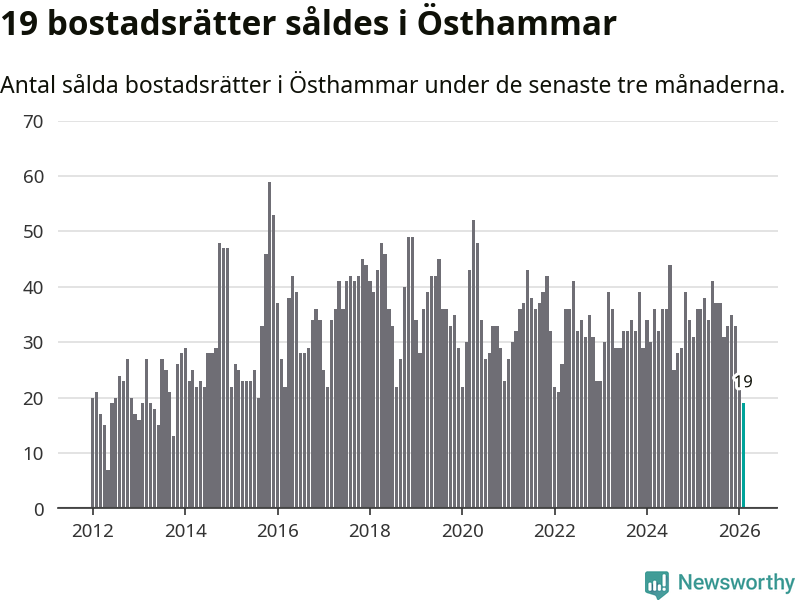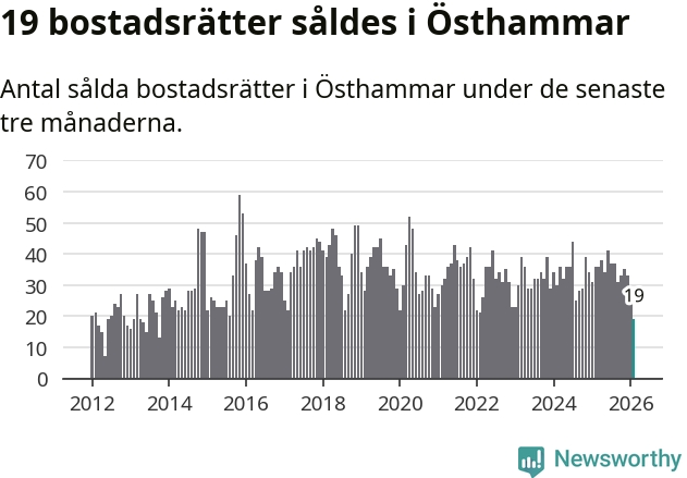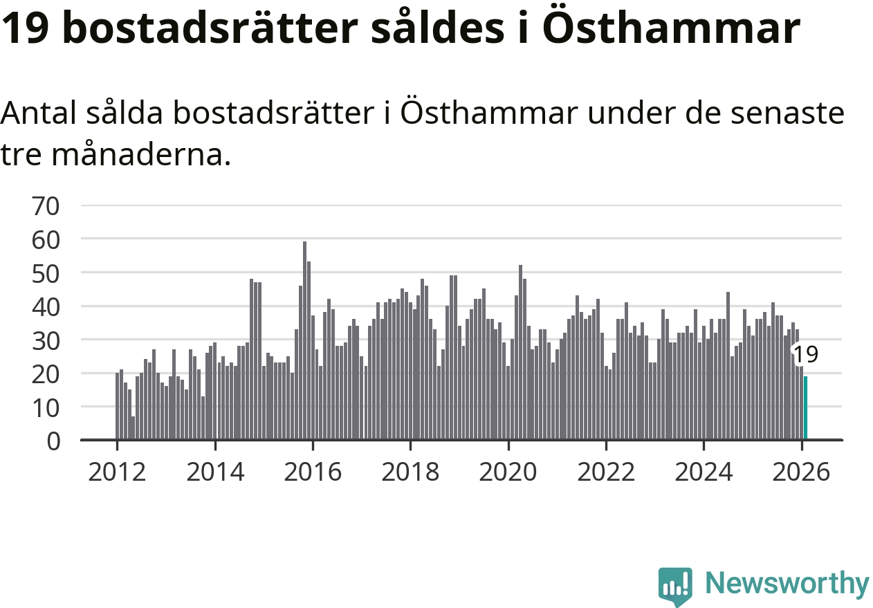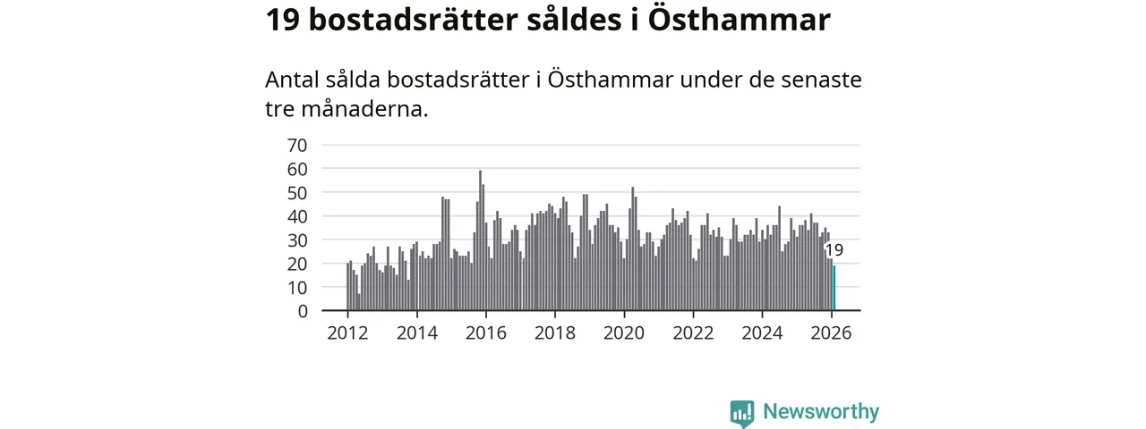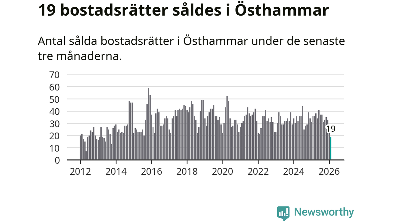 Mellan december och februari gjordes sammanlagt 19 affärer med bostadsrätter i Östhammars kommun. Det kan jämföras med 36 vid motsvarande tid i fjol.