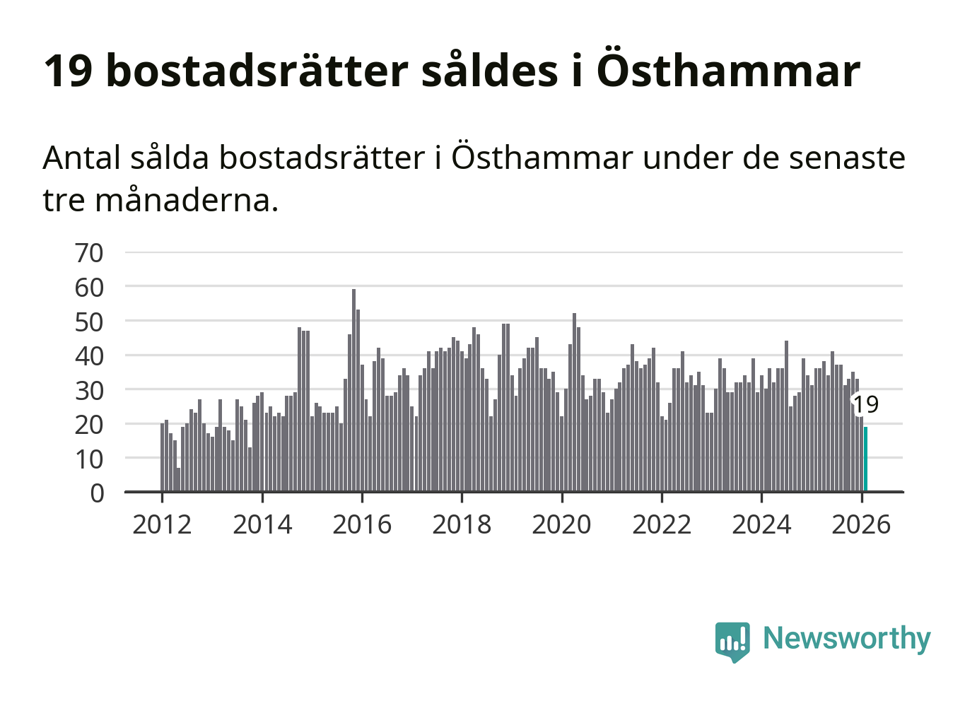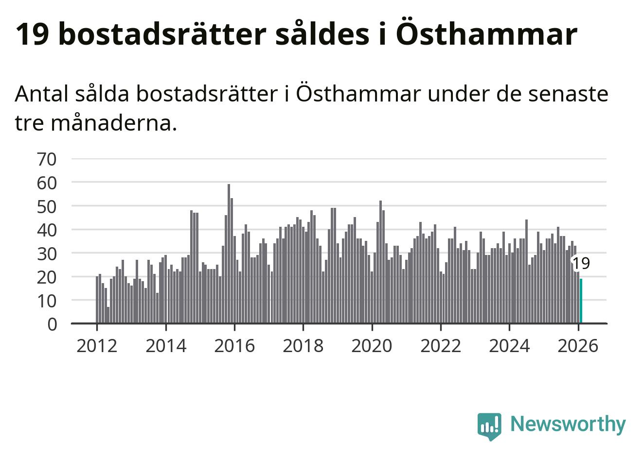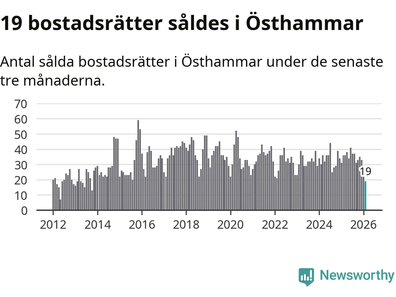Mellan december och februari gjordes sammanlagt 19 affärer med bostadsrätter i Östhammars kommun. Det kan jämföras med 36 vid motsvarande tid i fjol.