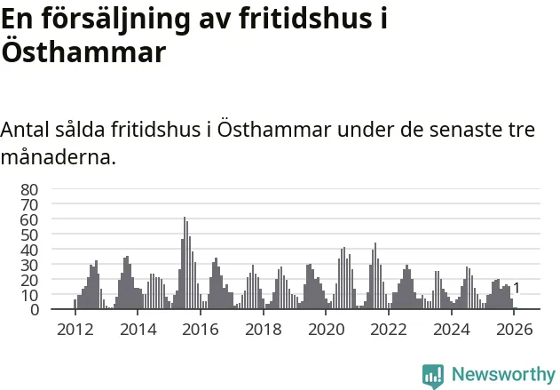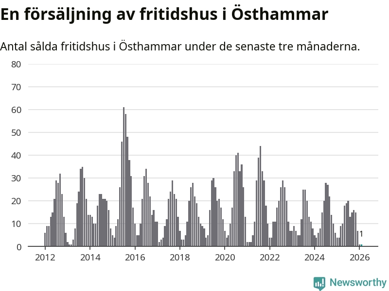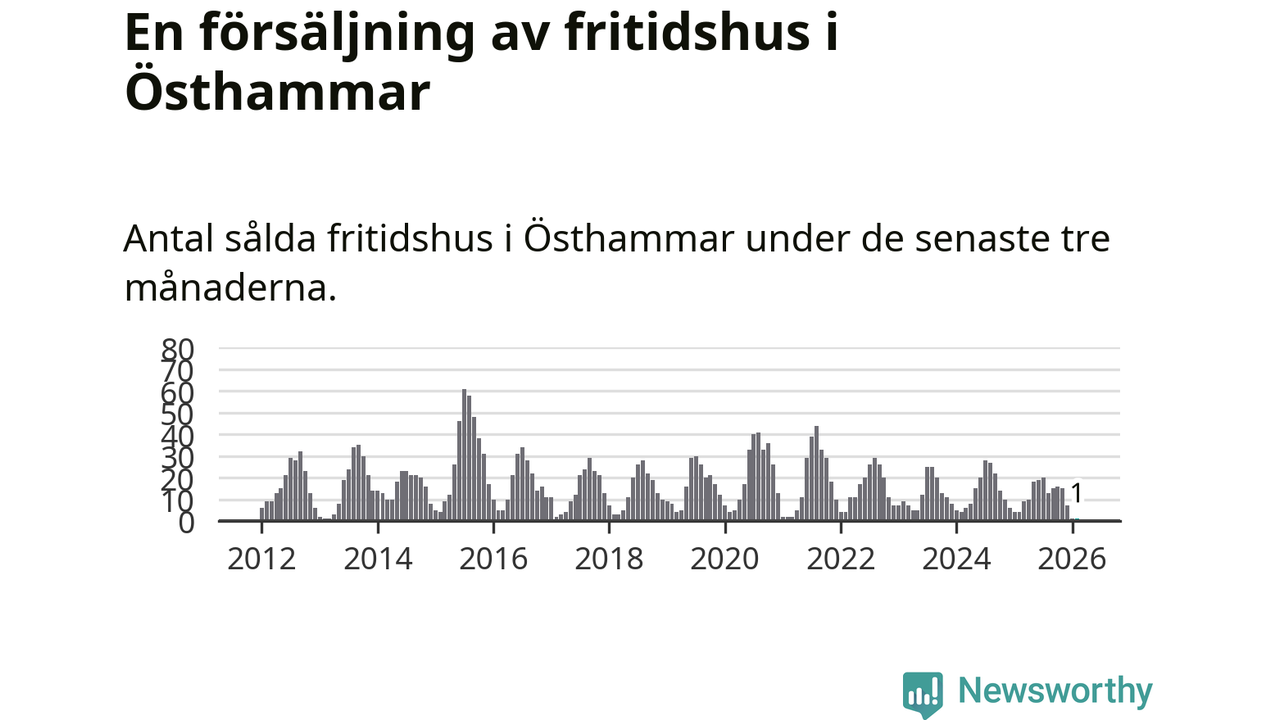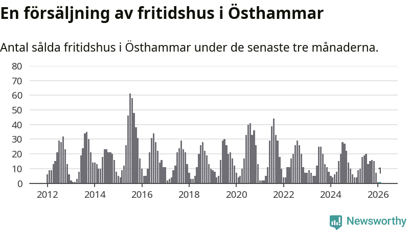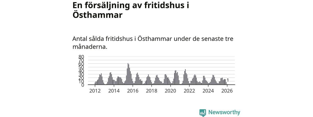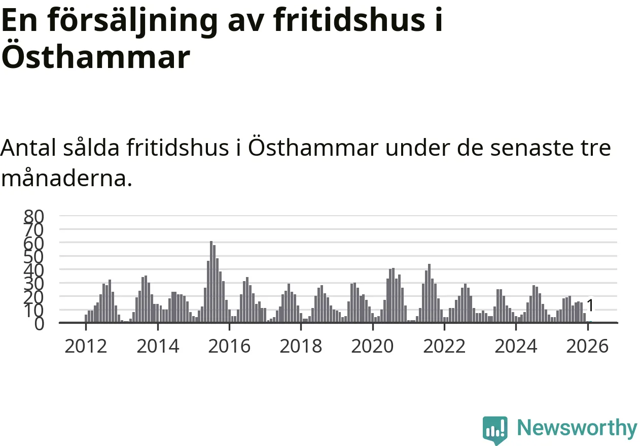 Sammanlagt såldes ett fritidshus i Östhammars kommun mellan december 2025 och februari till ett genomsnittligt pris på 2,0 miljoner kronor. I fjol gjordes fyra affärer vid den här tiden på året.