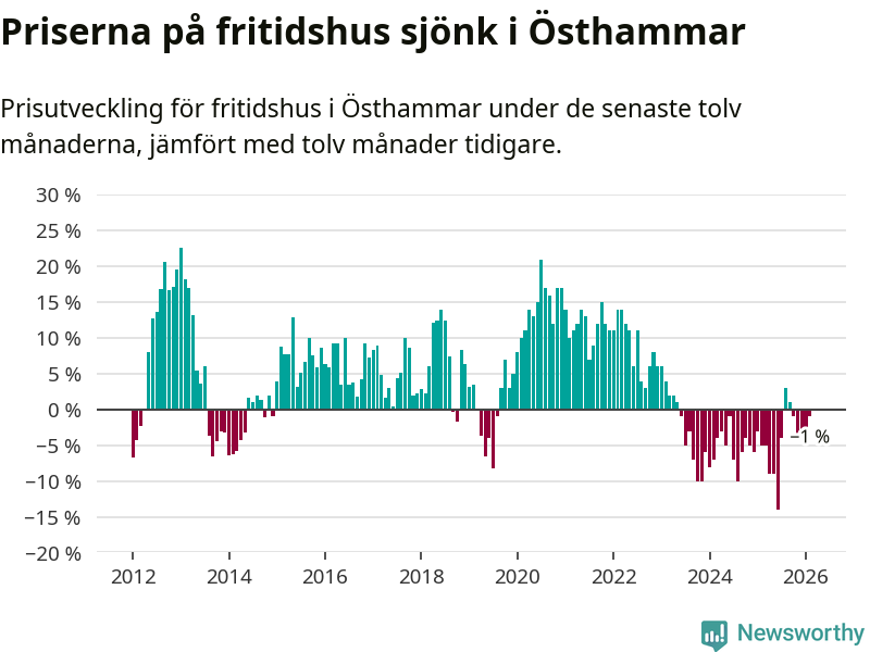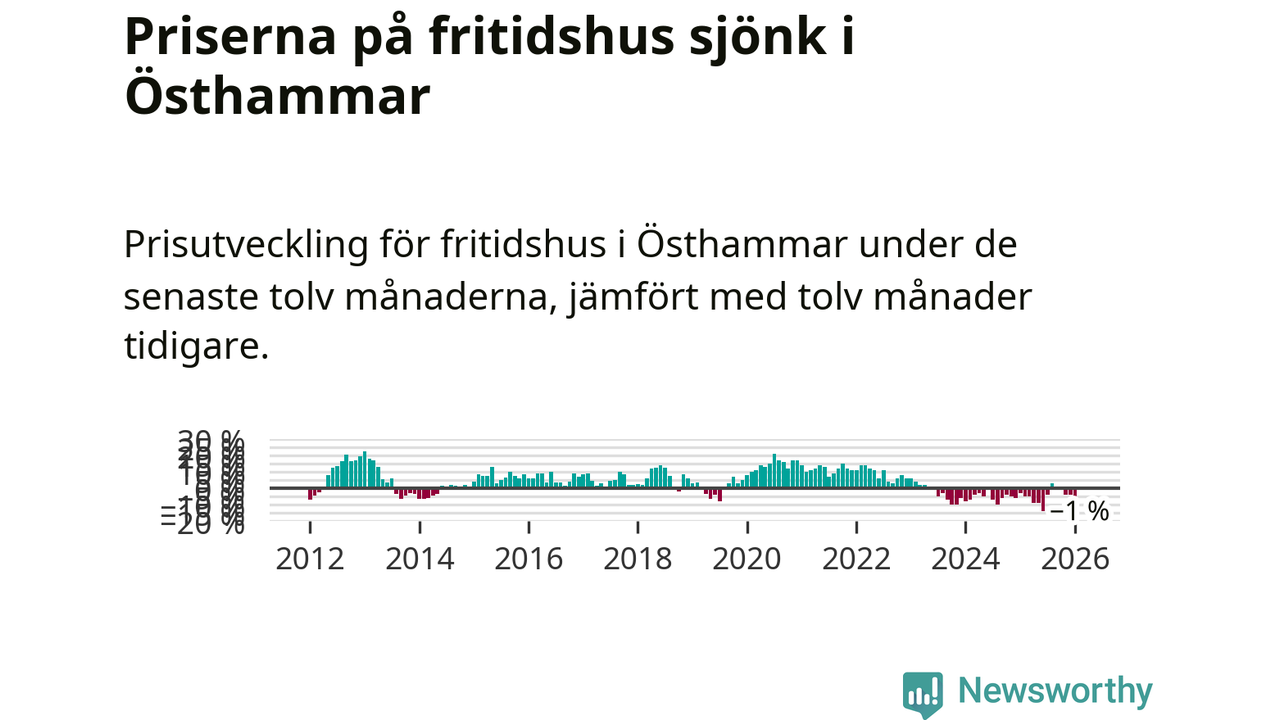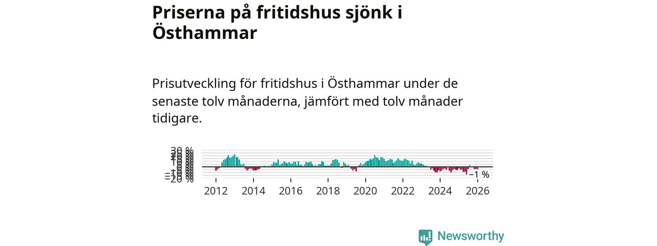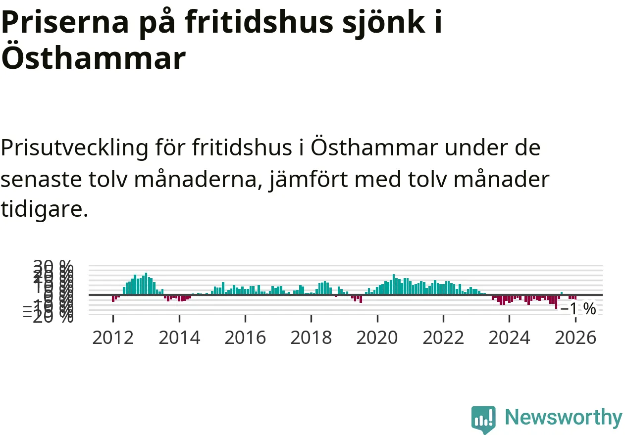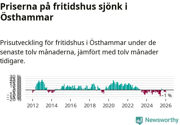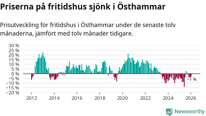 Priserna på fritidshus har gått ner i Östhammars kommun. Medelpriset på försäljningarna under de senaste tolv månaderna visar på en nedgång med 1 procent.