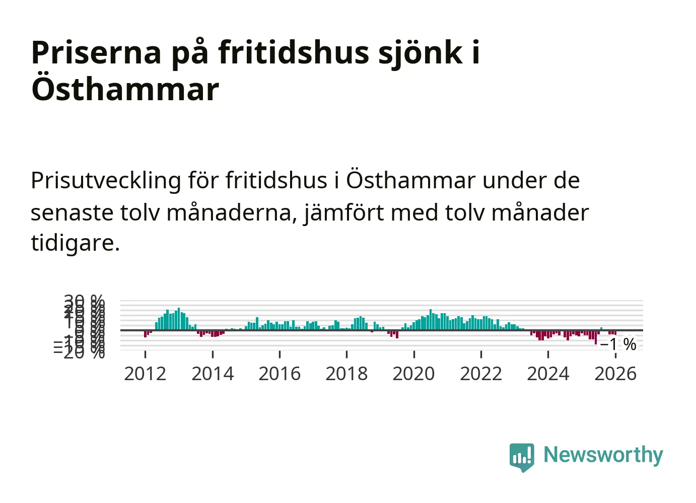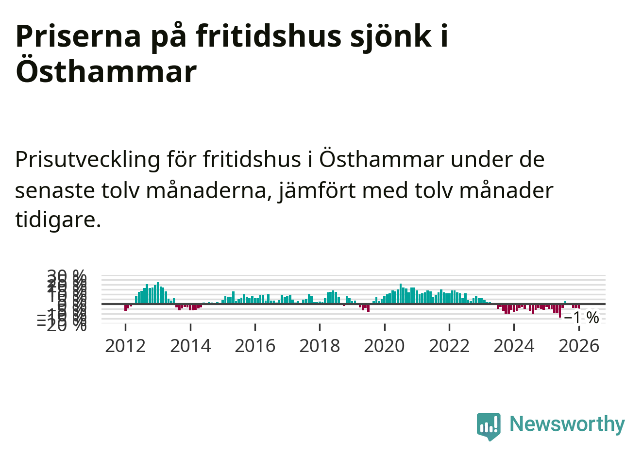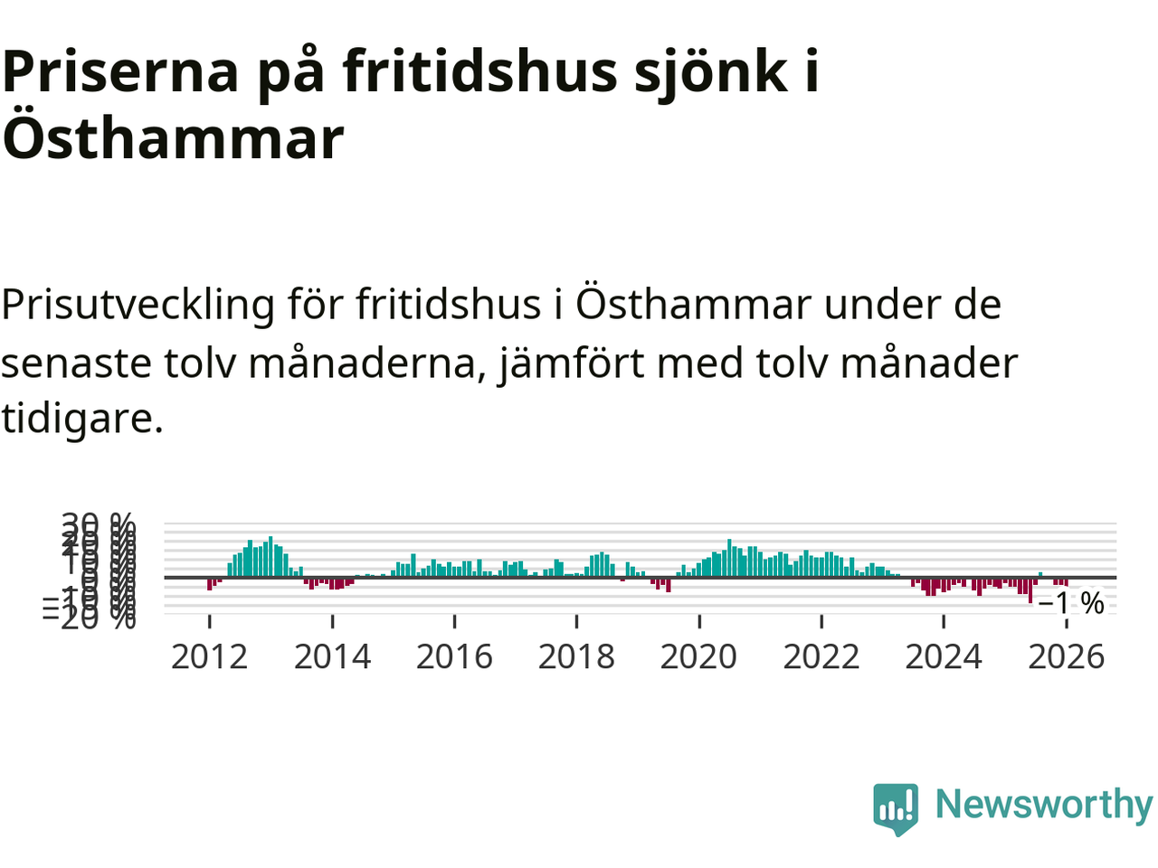 Priserna på fritidshus har gått ner i Östhammars kommun. Medelpriset på försäljningarna under de senaste tolv månaderna visar på en nedgång med 1 procent.