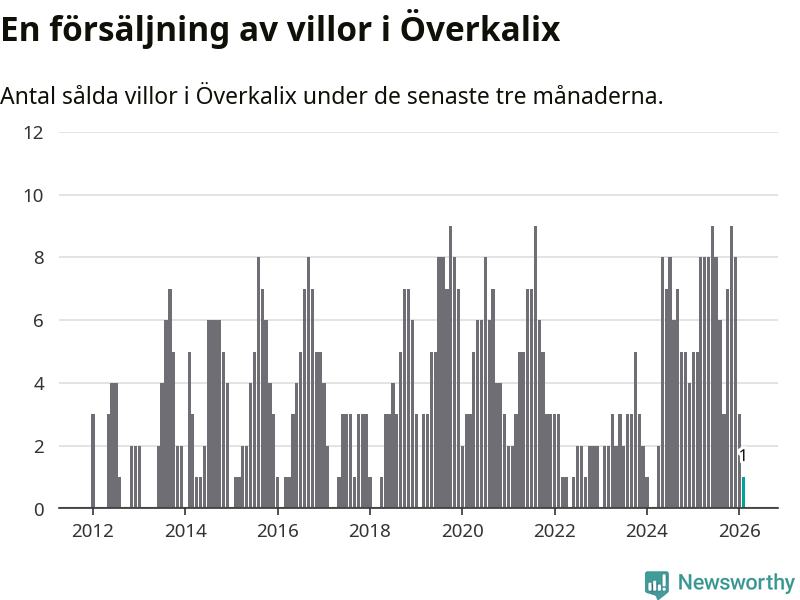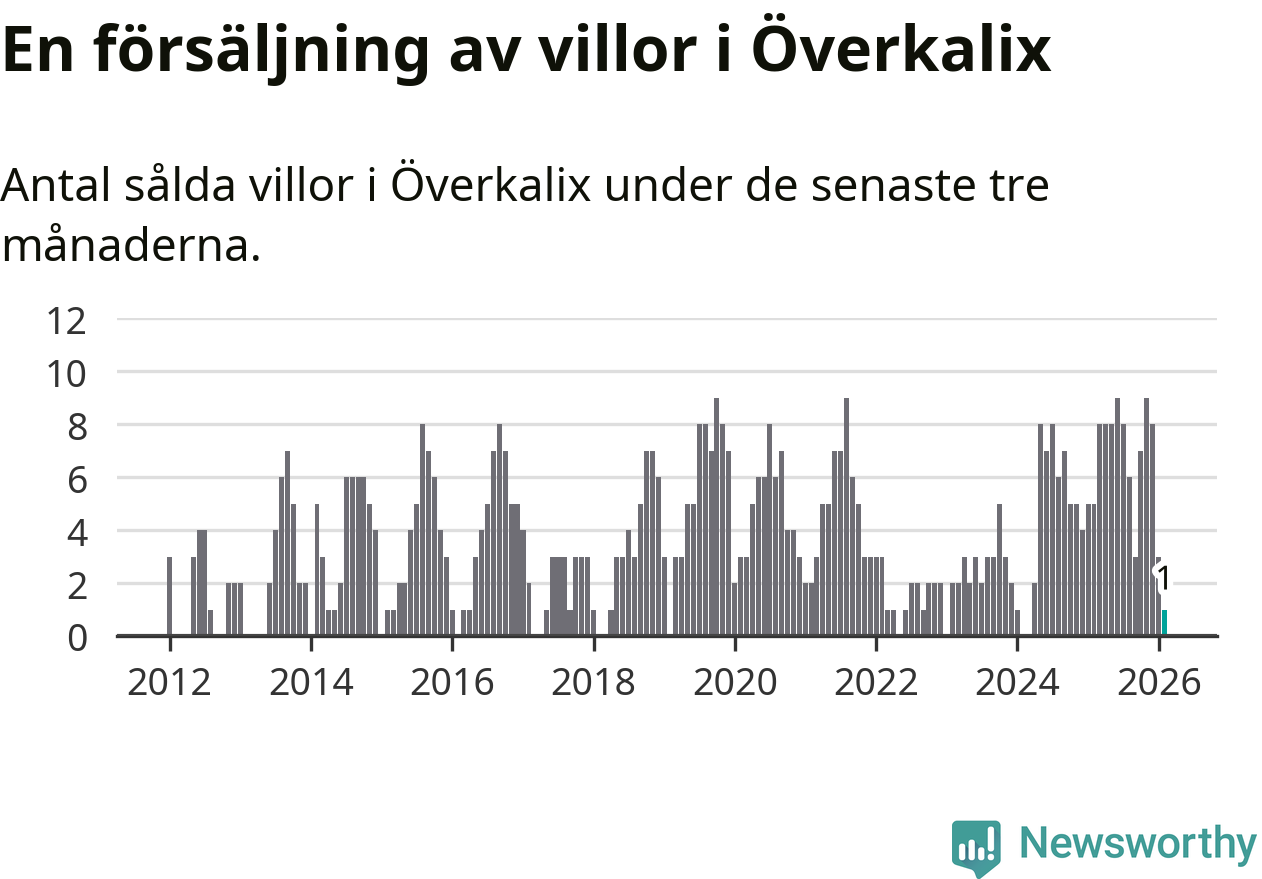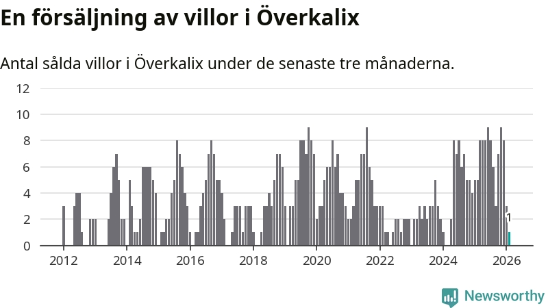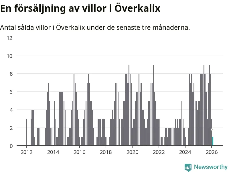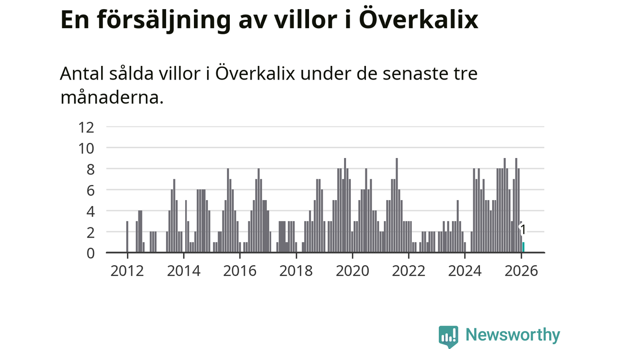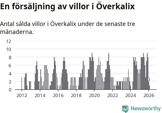 Mellan december och februari gjordes sammanlagt en affär med villor i Överkalix kommun. Det kan jämföras med fem vid motsvarande tid i fjol.