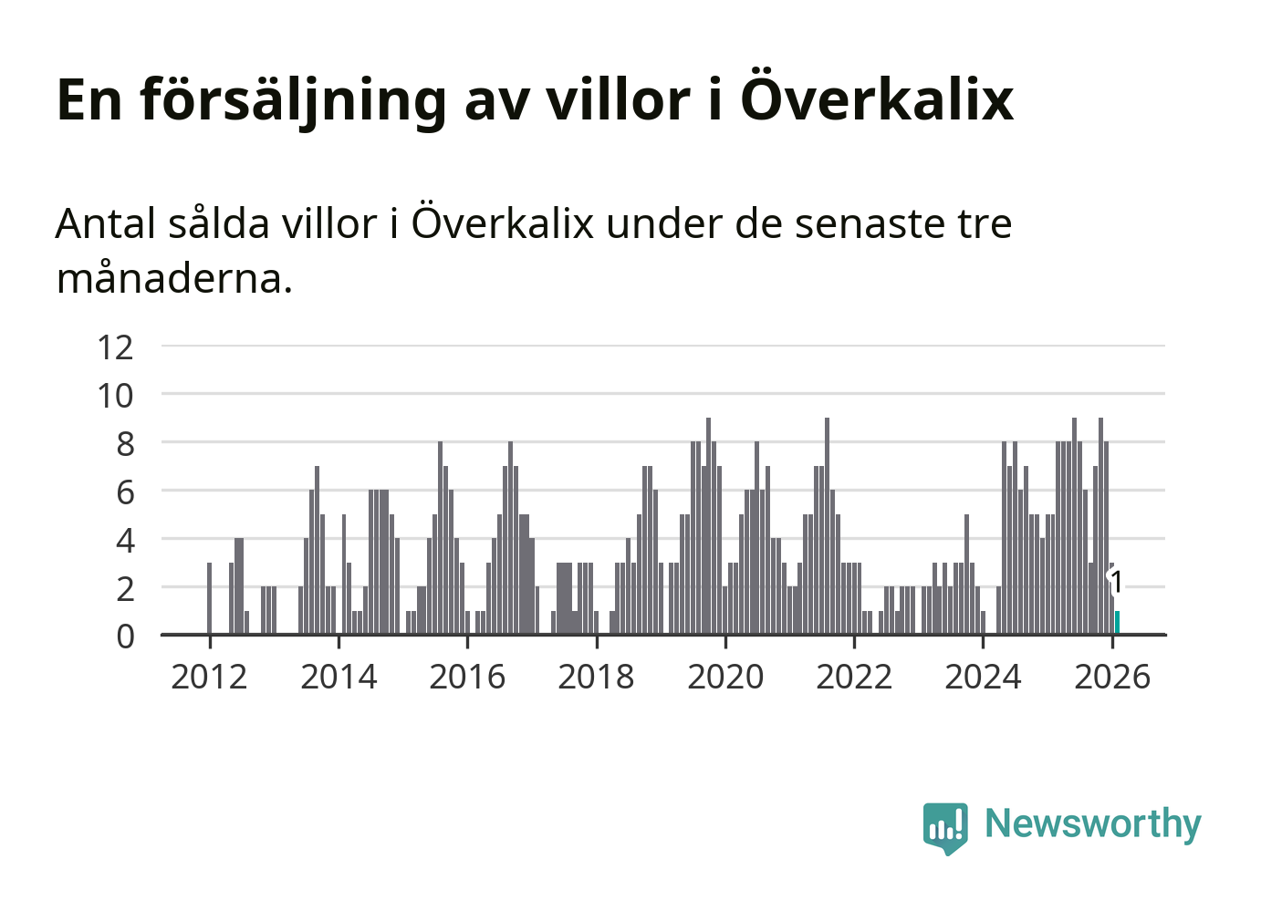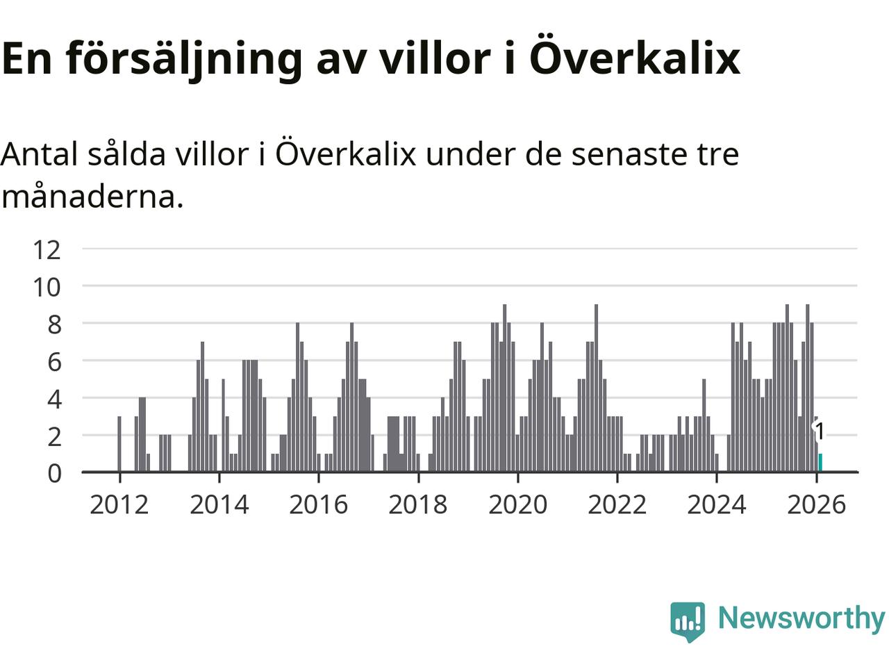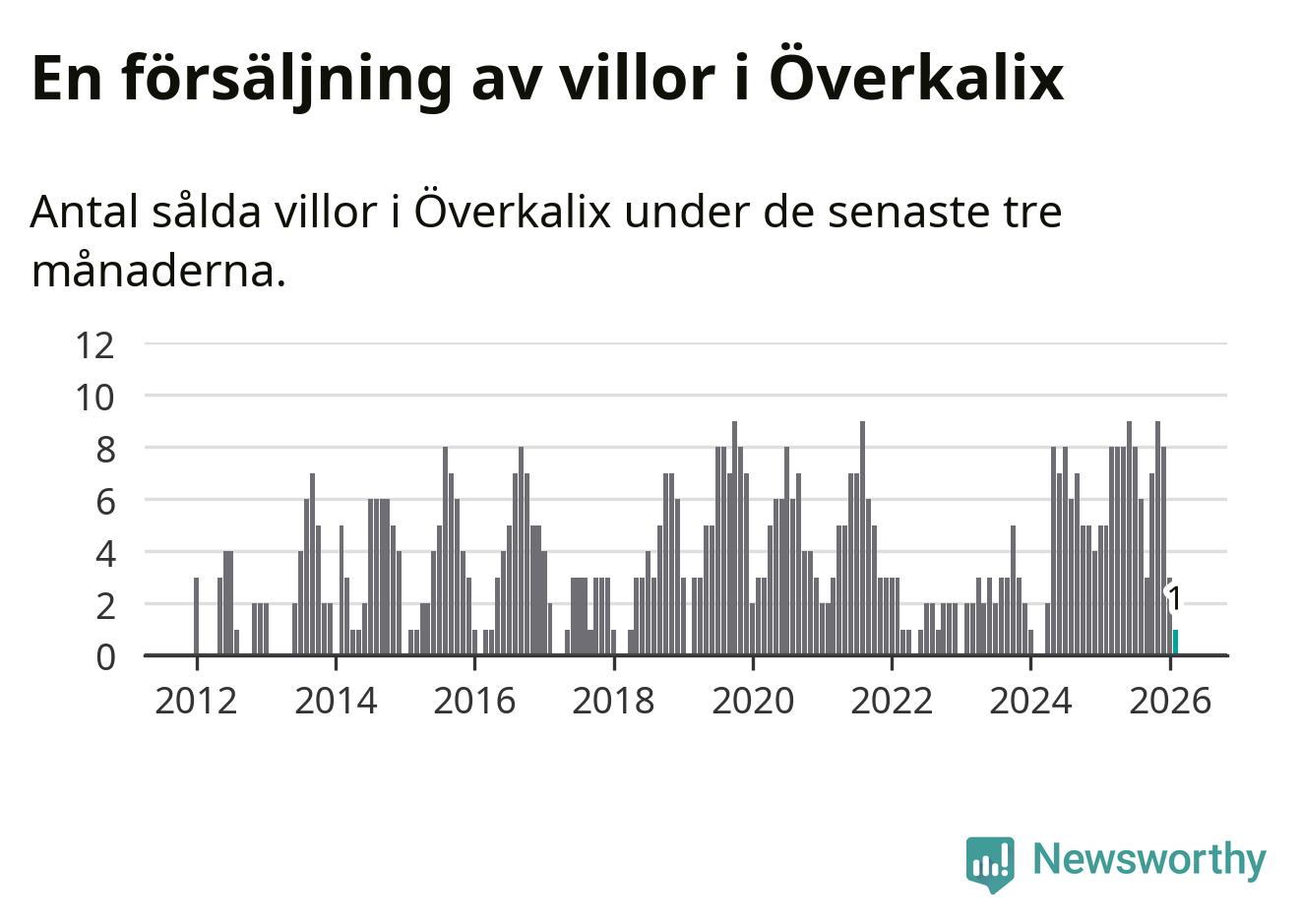 Graf: Antal sålda villor i Överkalix kommun