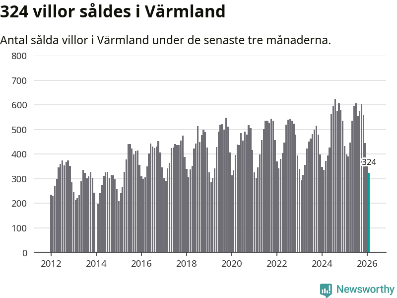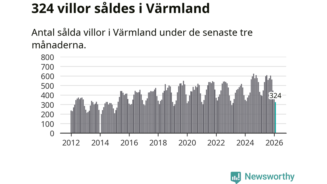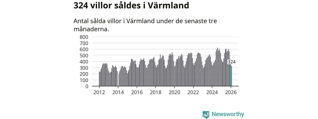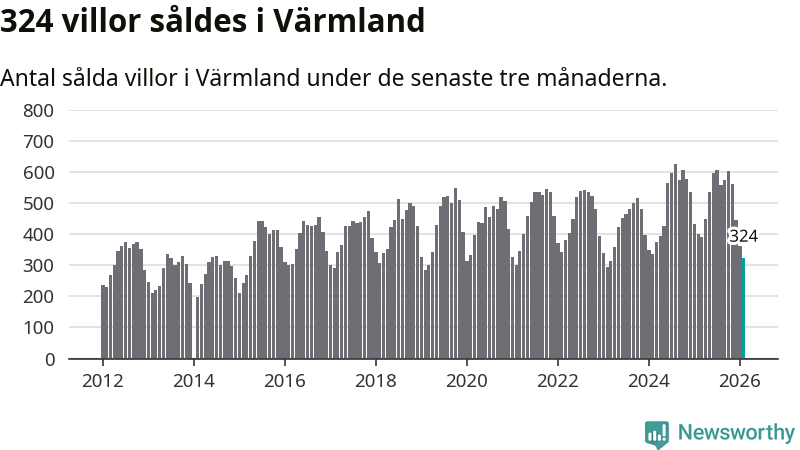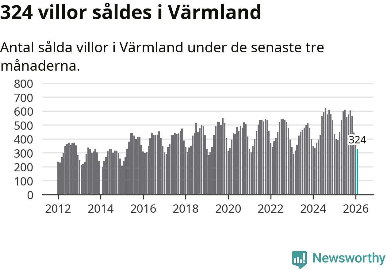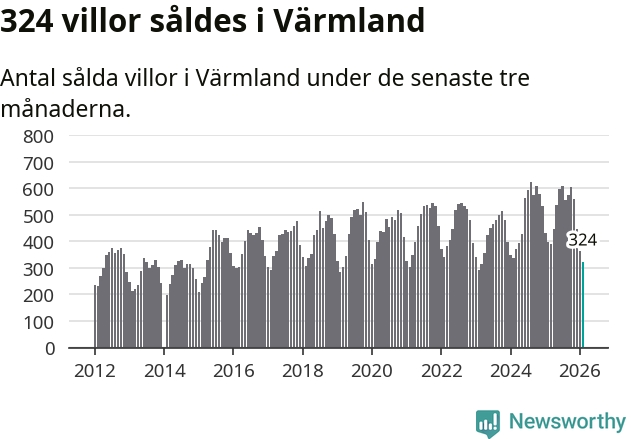Mellan december och februari såldes 324 villor i Värmlands län. Det är relativt få sett till aktiviteten på bostadsmarknaden i länet under de senaste tolv månaderna, samt det historiska snittet för den här tiden på året.