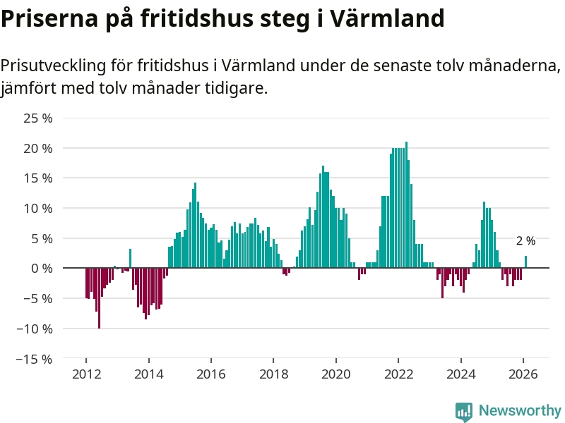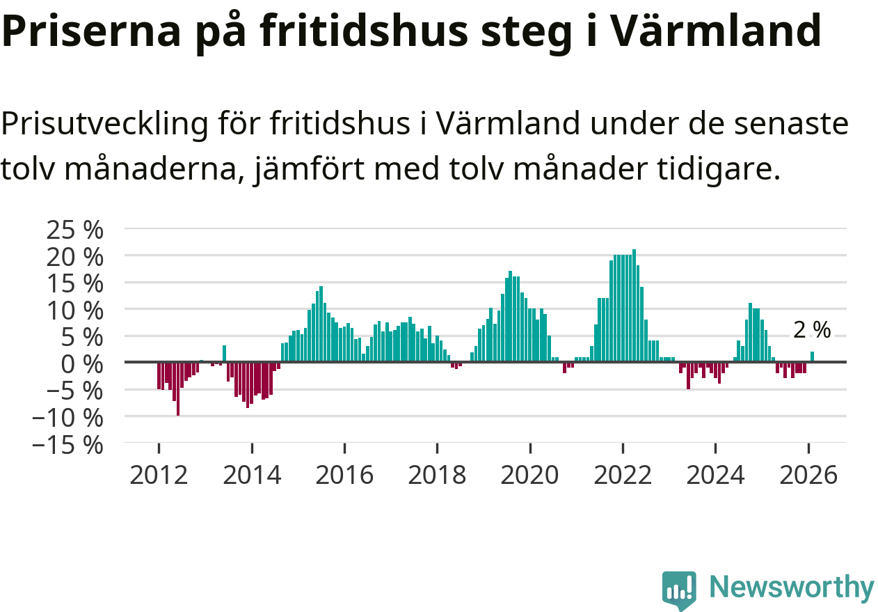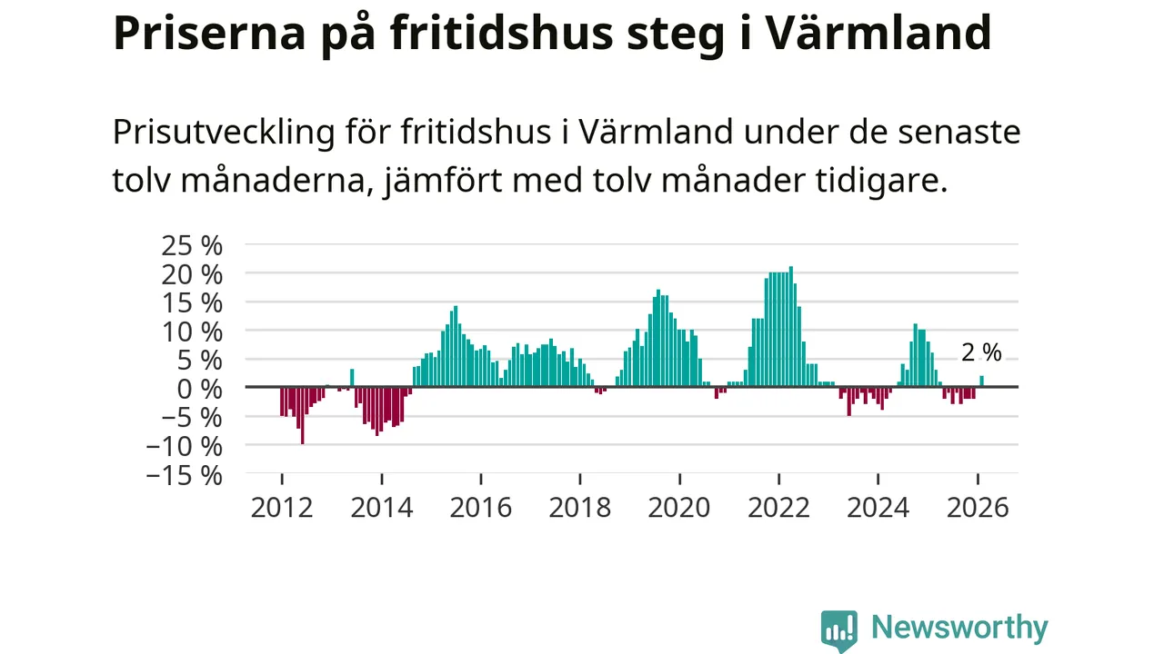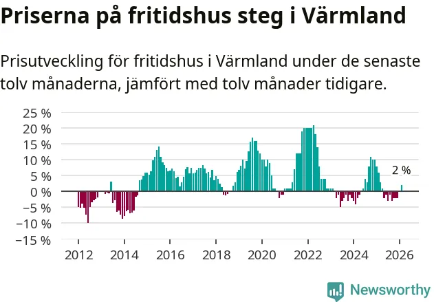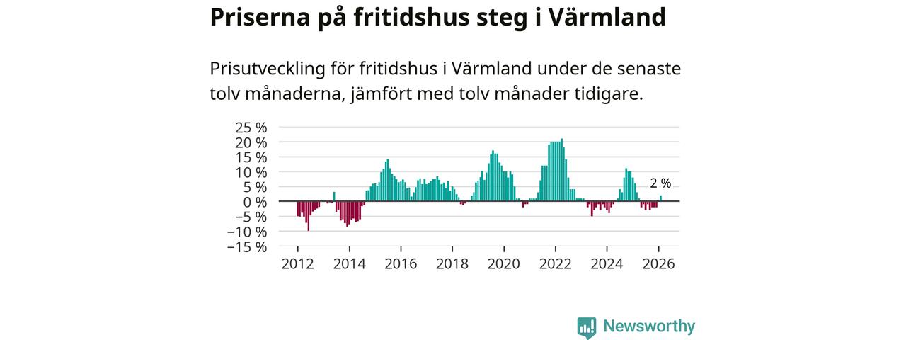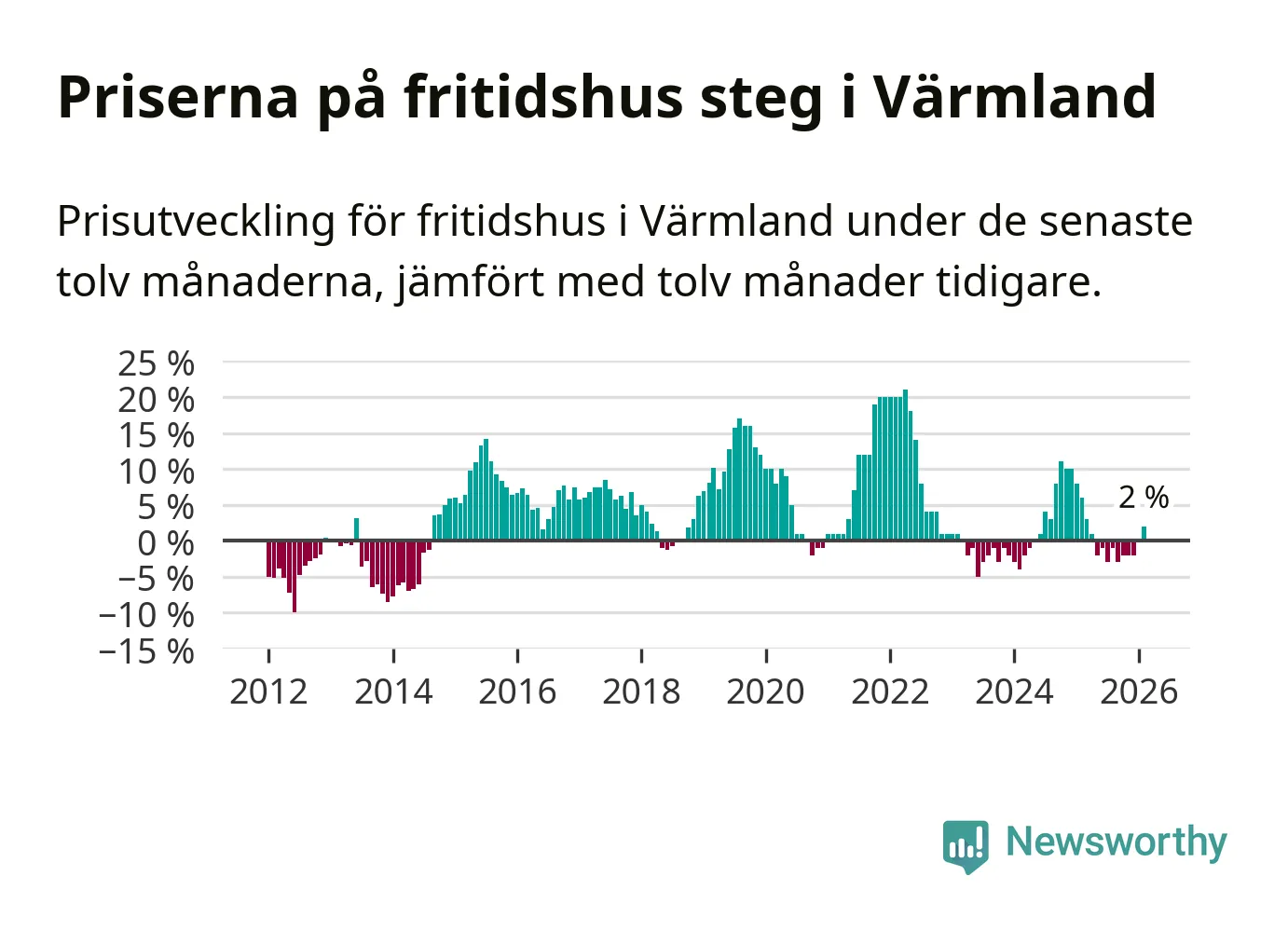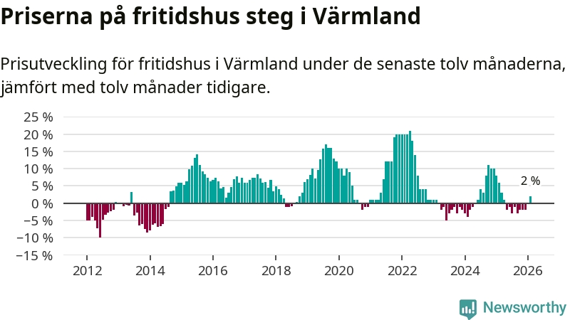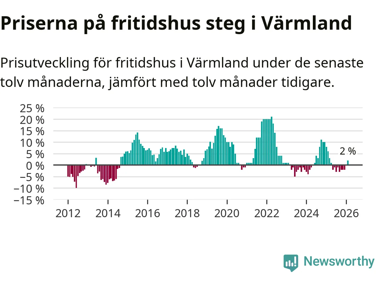 Priserna på fritidshus har gått upp i Värmlands län. Medelpriset på försäljningarna under de senaste tolv månaderna visar på en uppgång med 2 procent.
