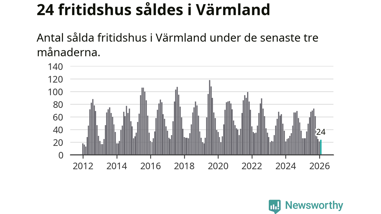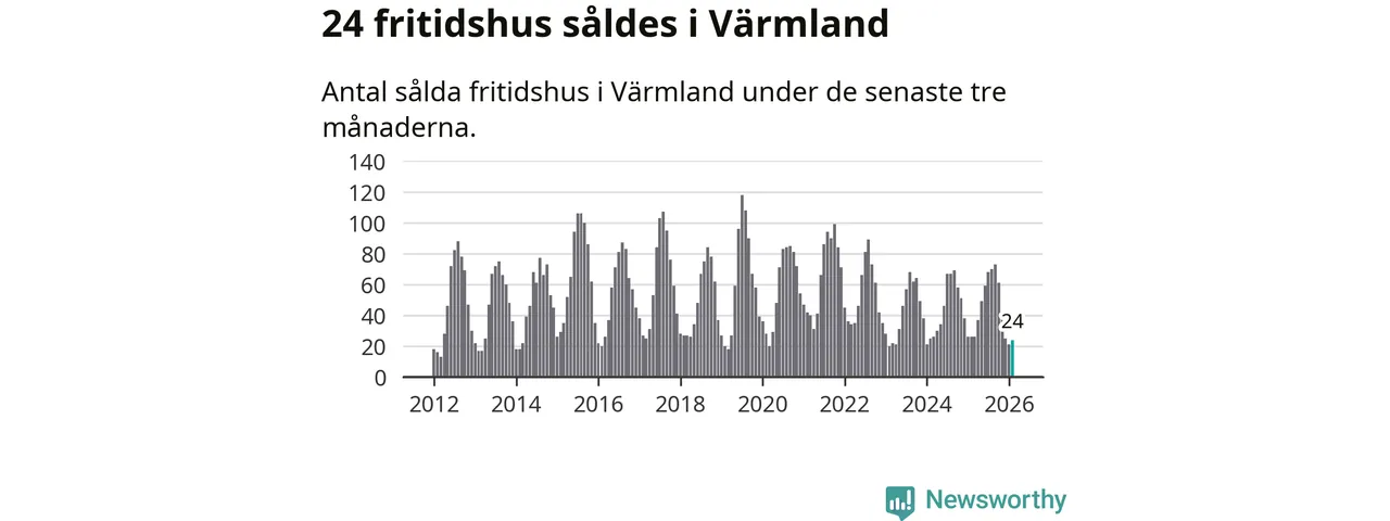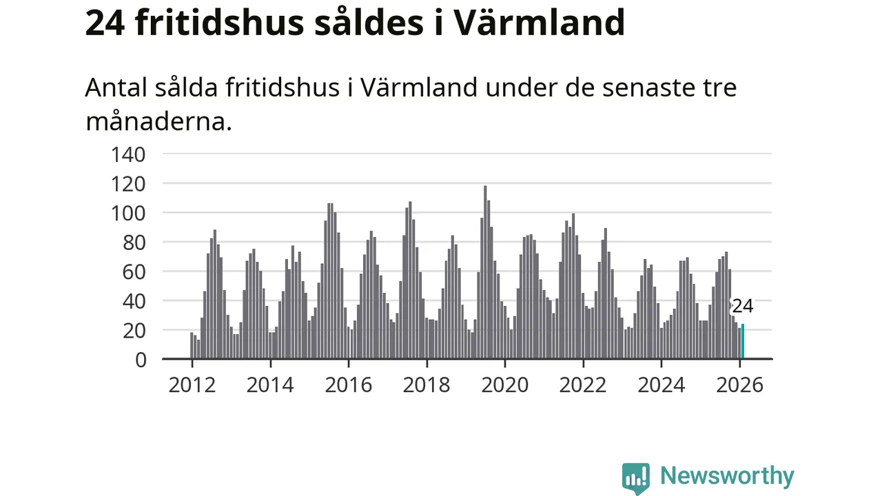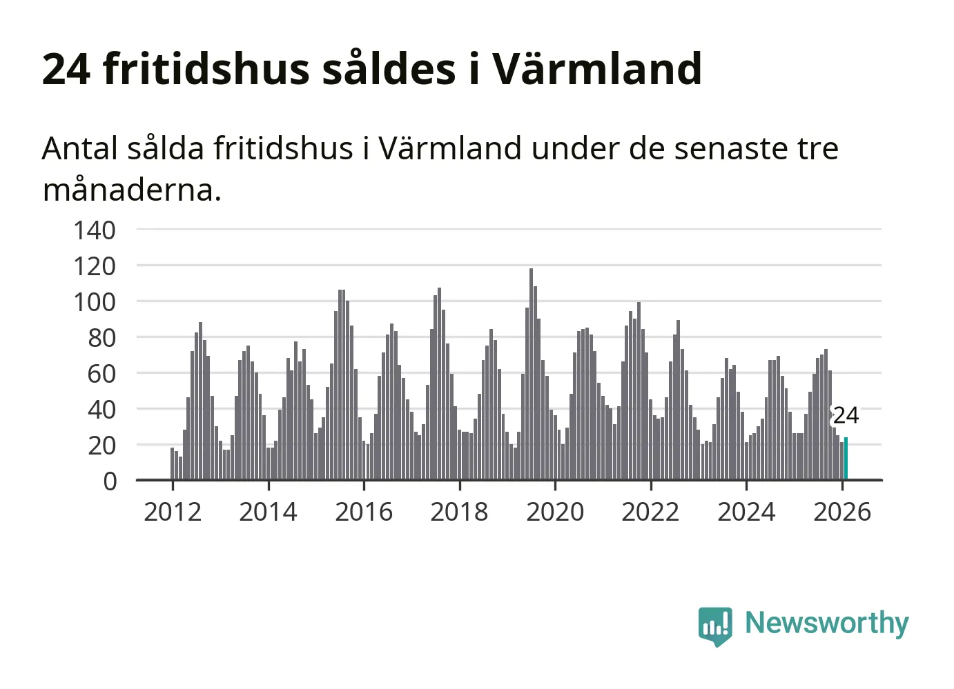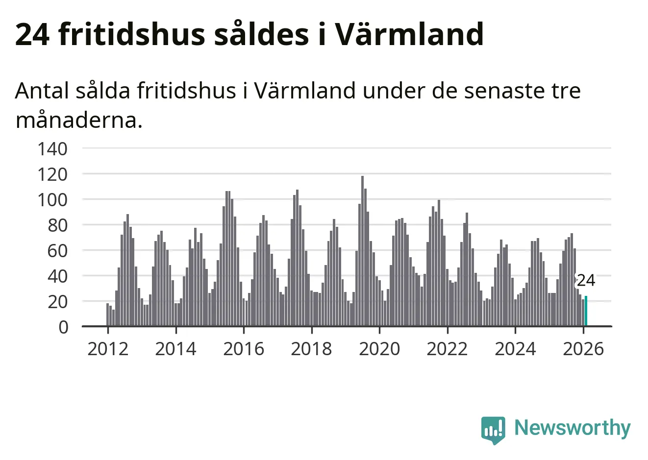 Sammanlagt såldes 24 fritidshus i Värmlands län mellan december 2025 och februari till ett genomsnittligt pris på 1,7 miljoner kronor. I fjol gjordes 26 affärer vid den här tiden på året.
