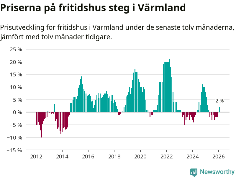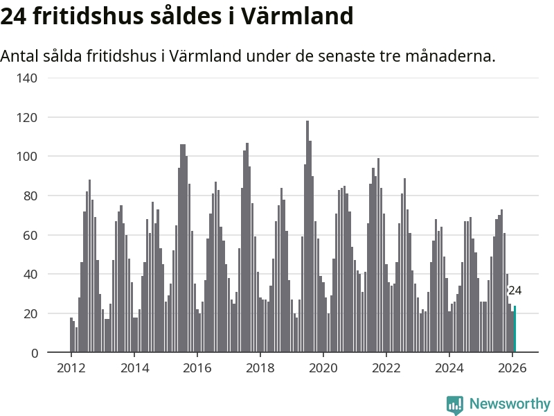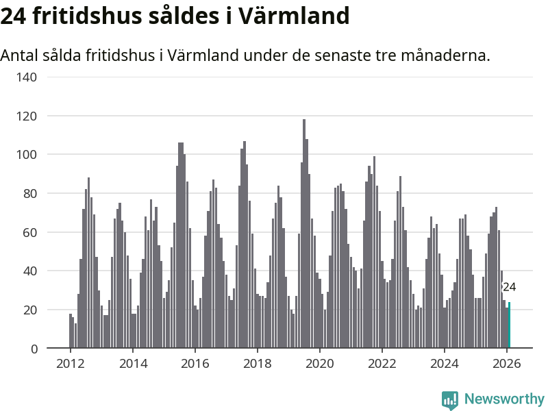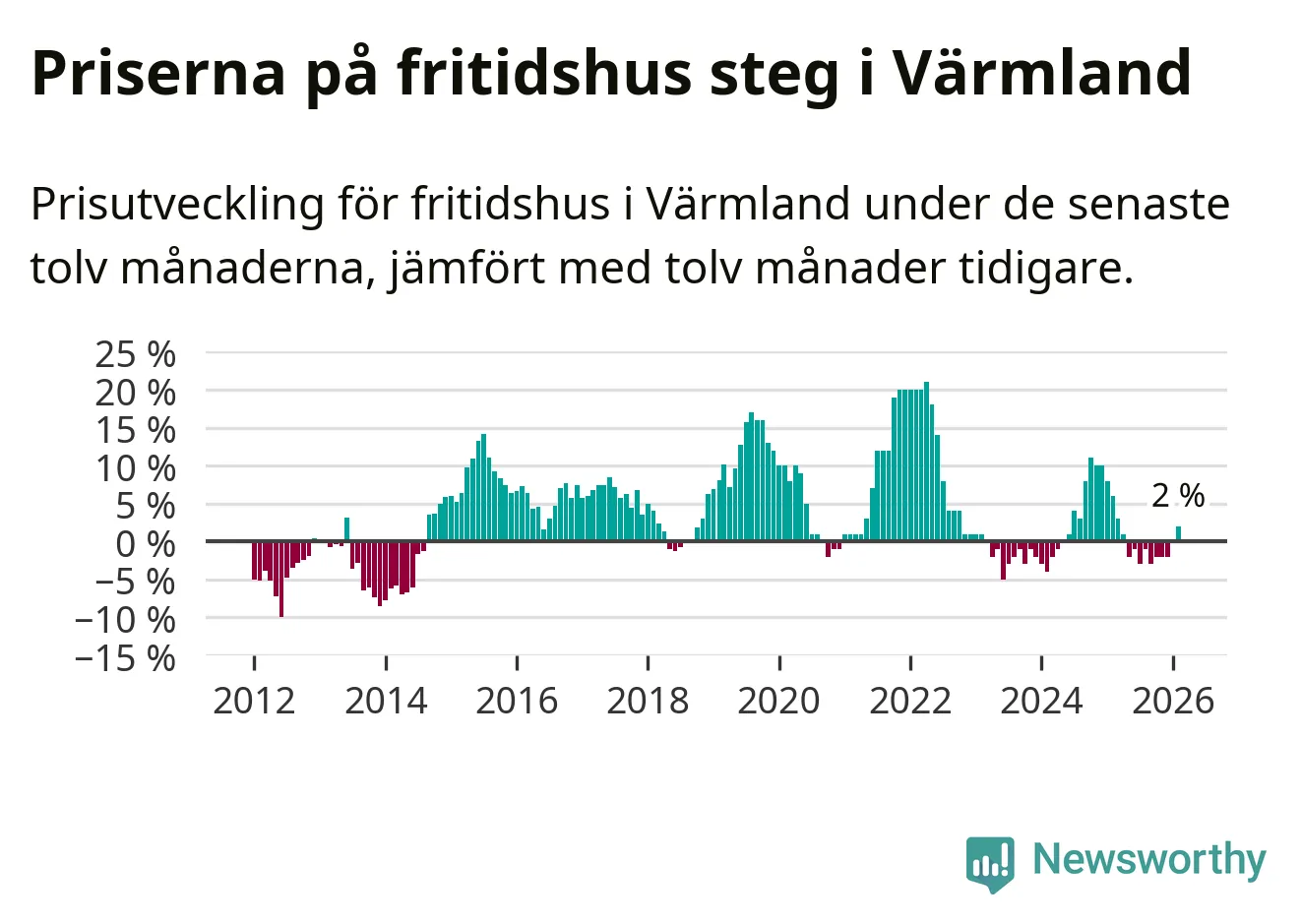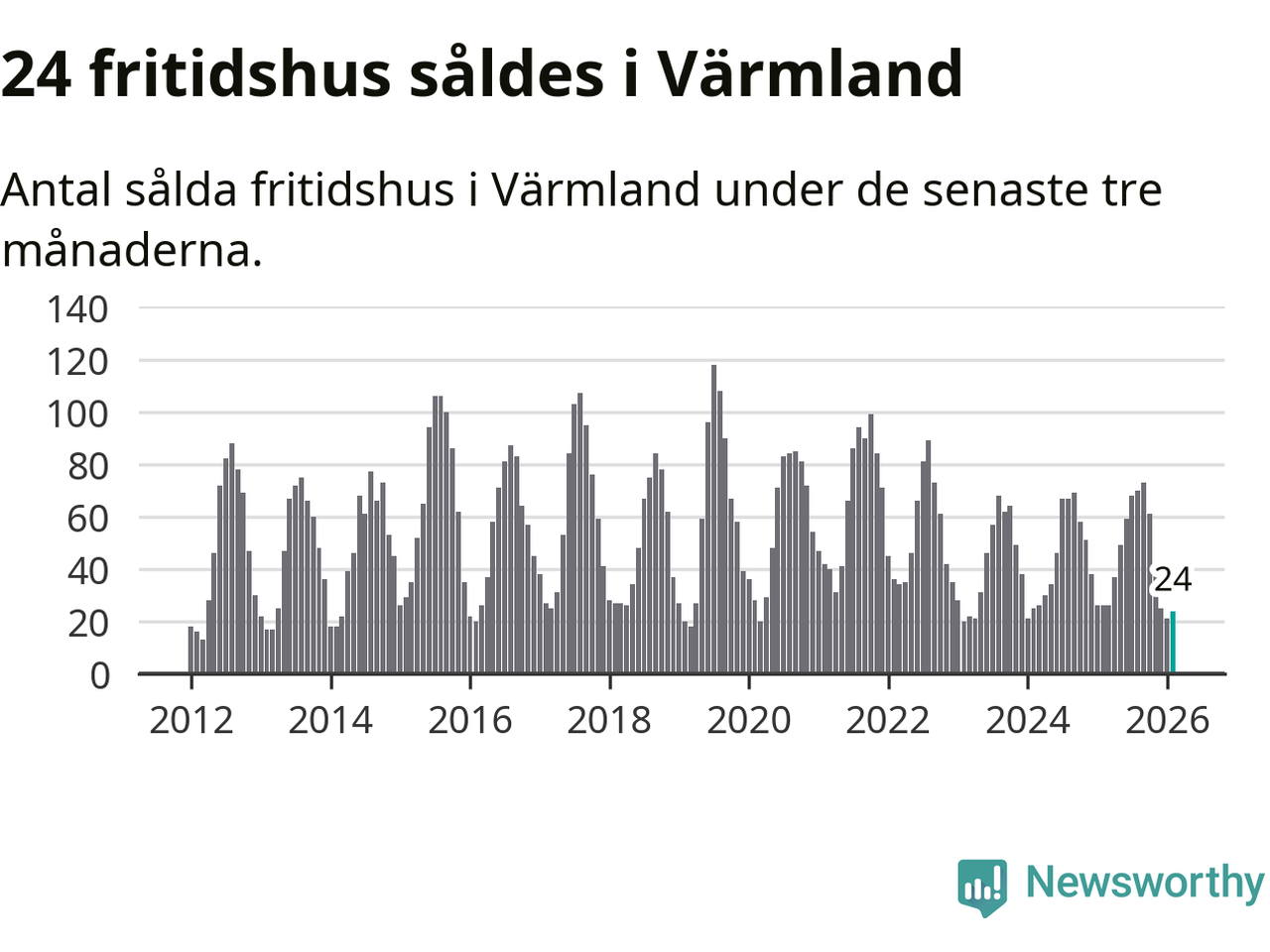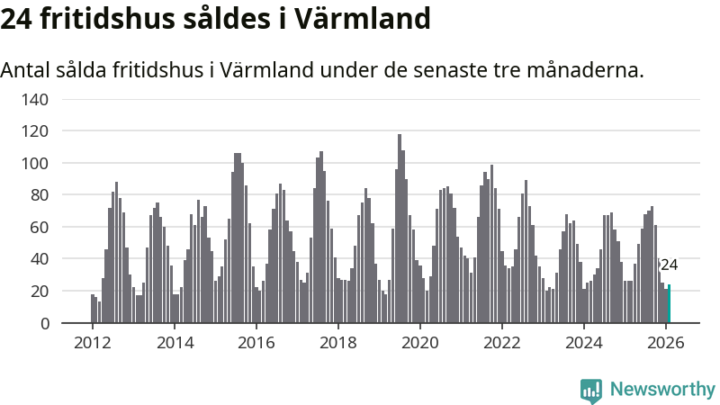 Sammanlagt såldes 24 fritidshus i Värmlands län mellan december 2025 och februari till ett genomsnittligt pris på 1,7 miljoner kronor. I fjol gjordes 26 affärer vid den här tiden på året.