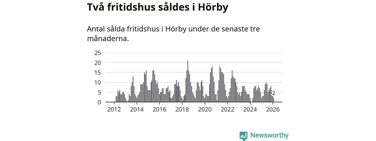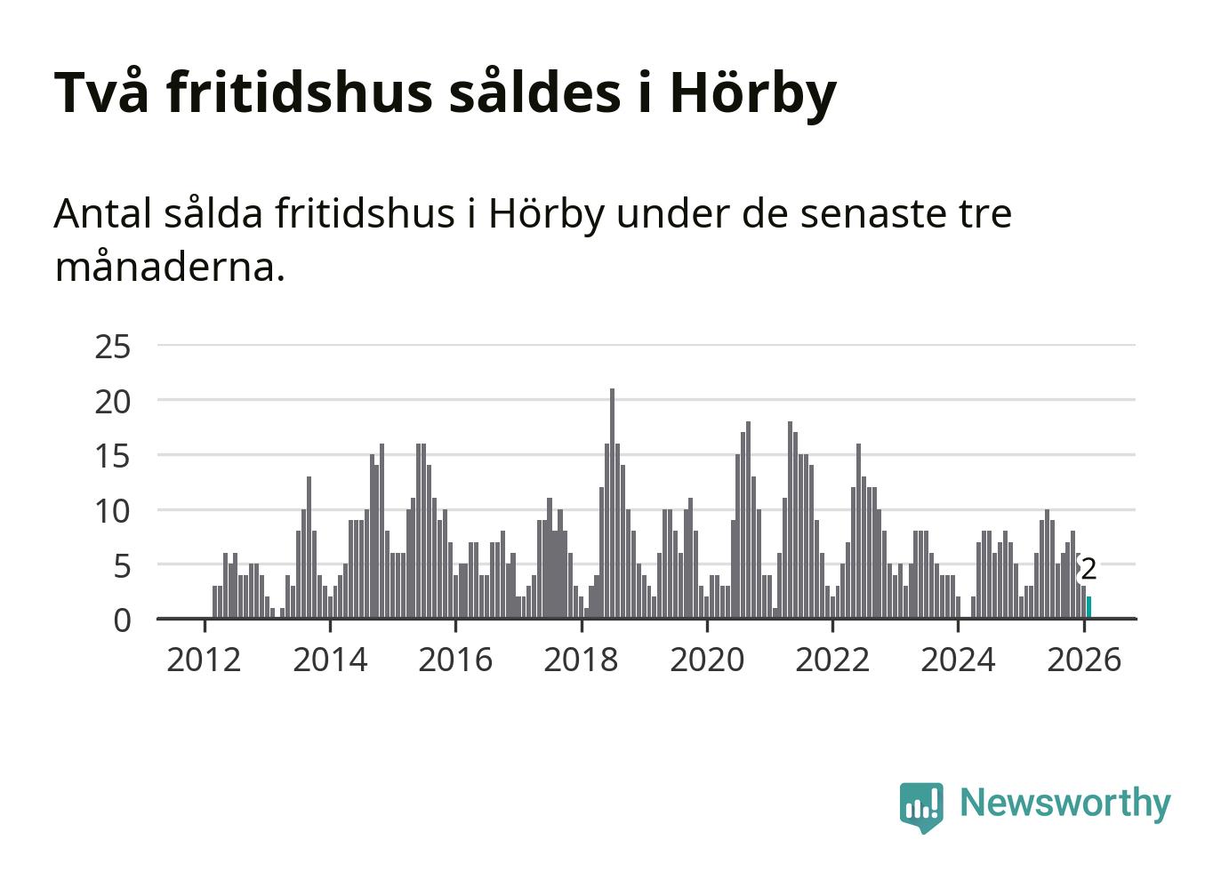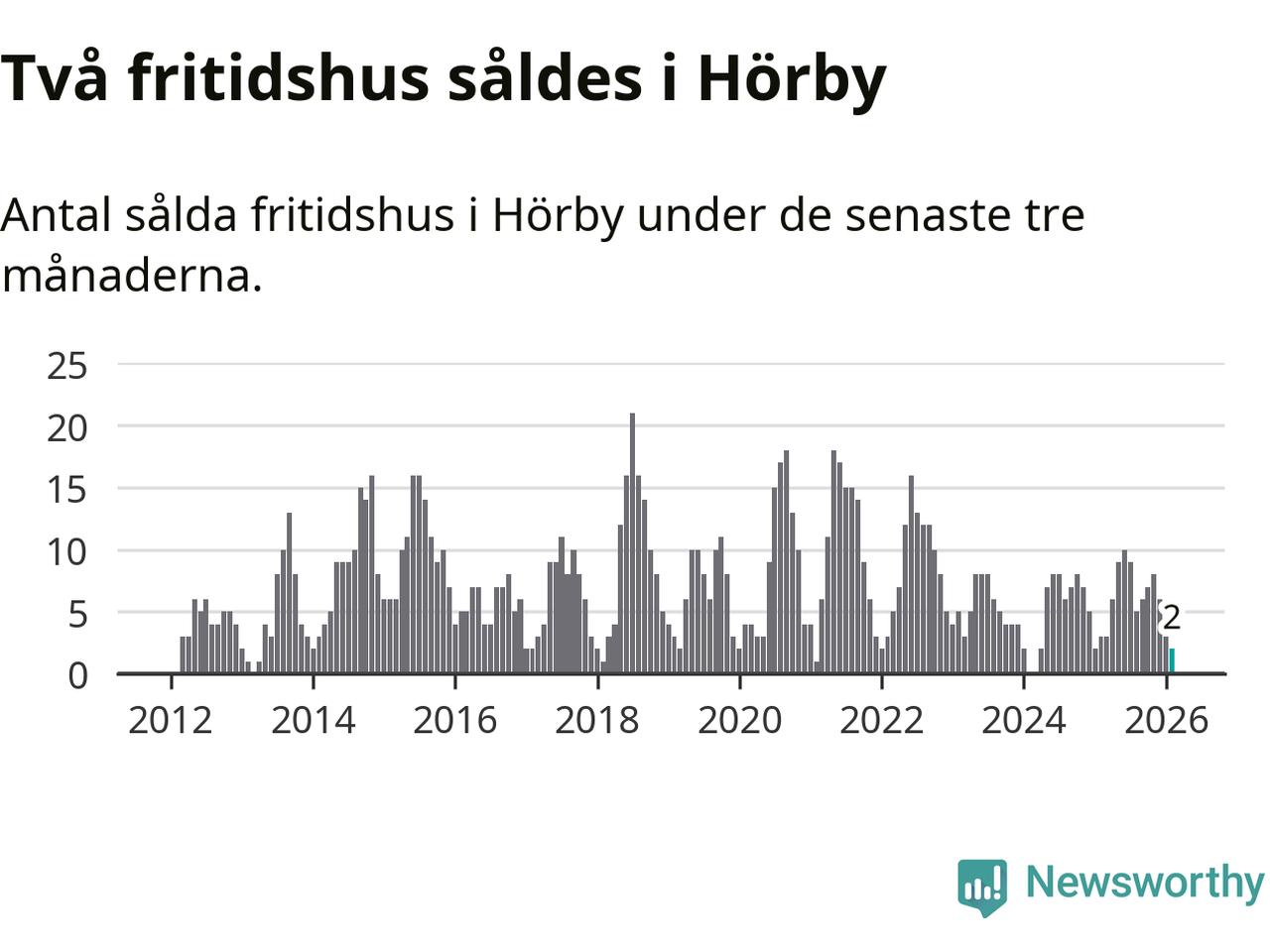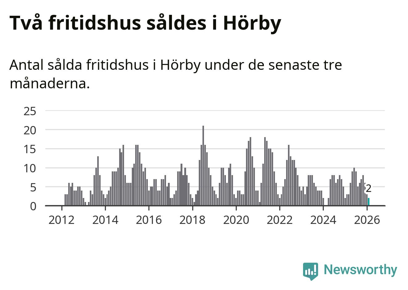 Mellan december och februari gjordes sammanlagt två affärer med fritidshus i Hörby kommun. Det kan jämföras med tre vid motsvarande tid i fjol.