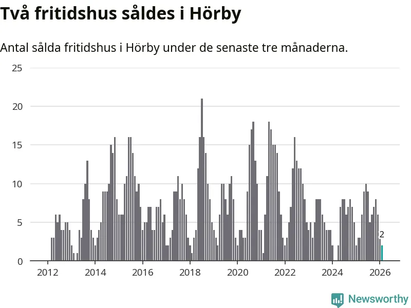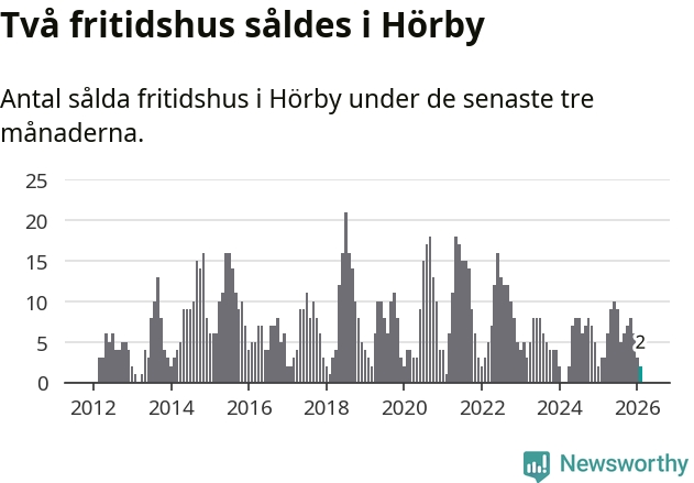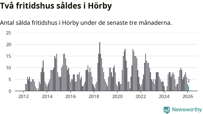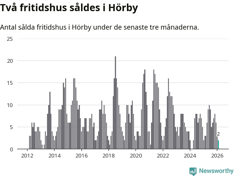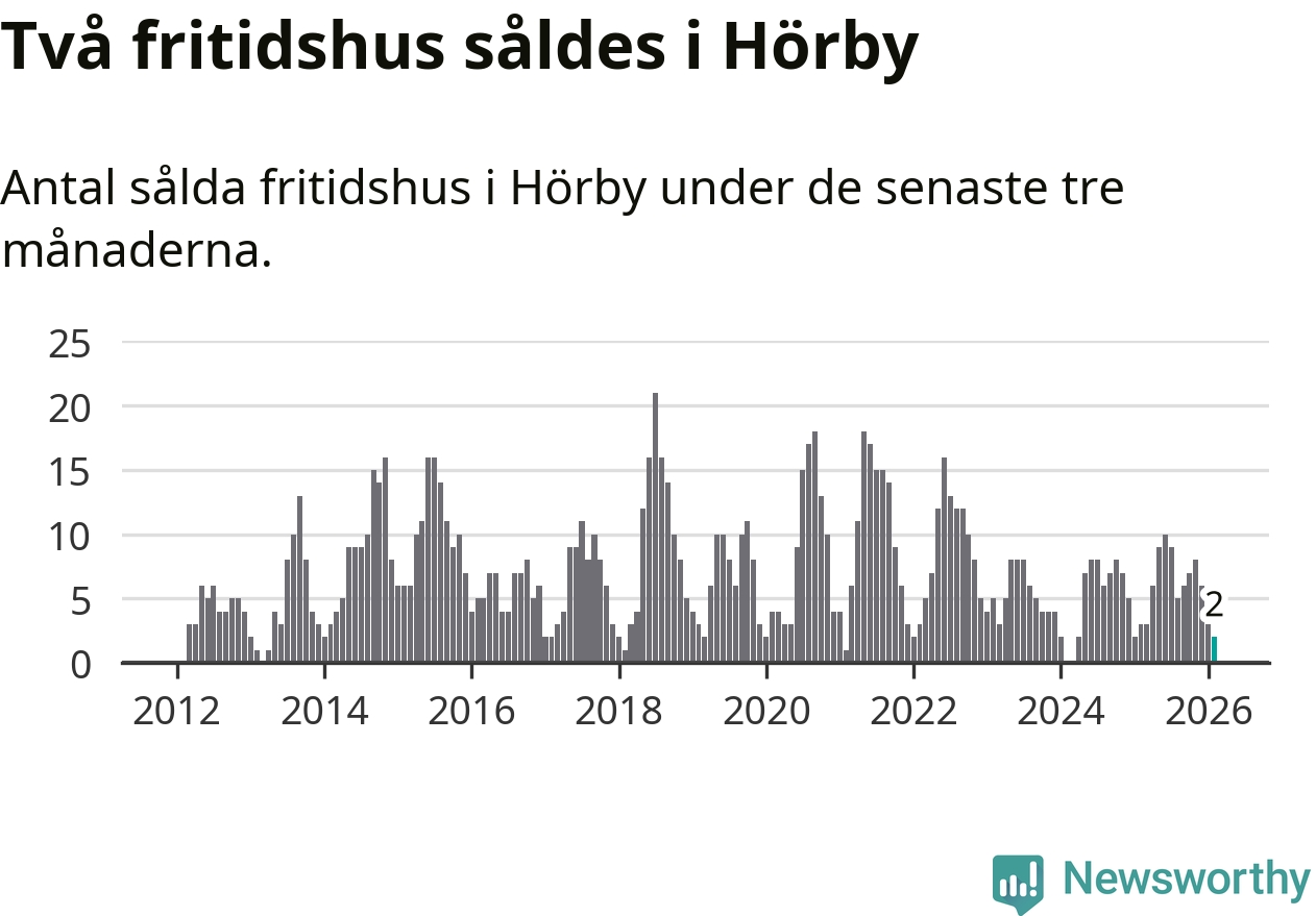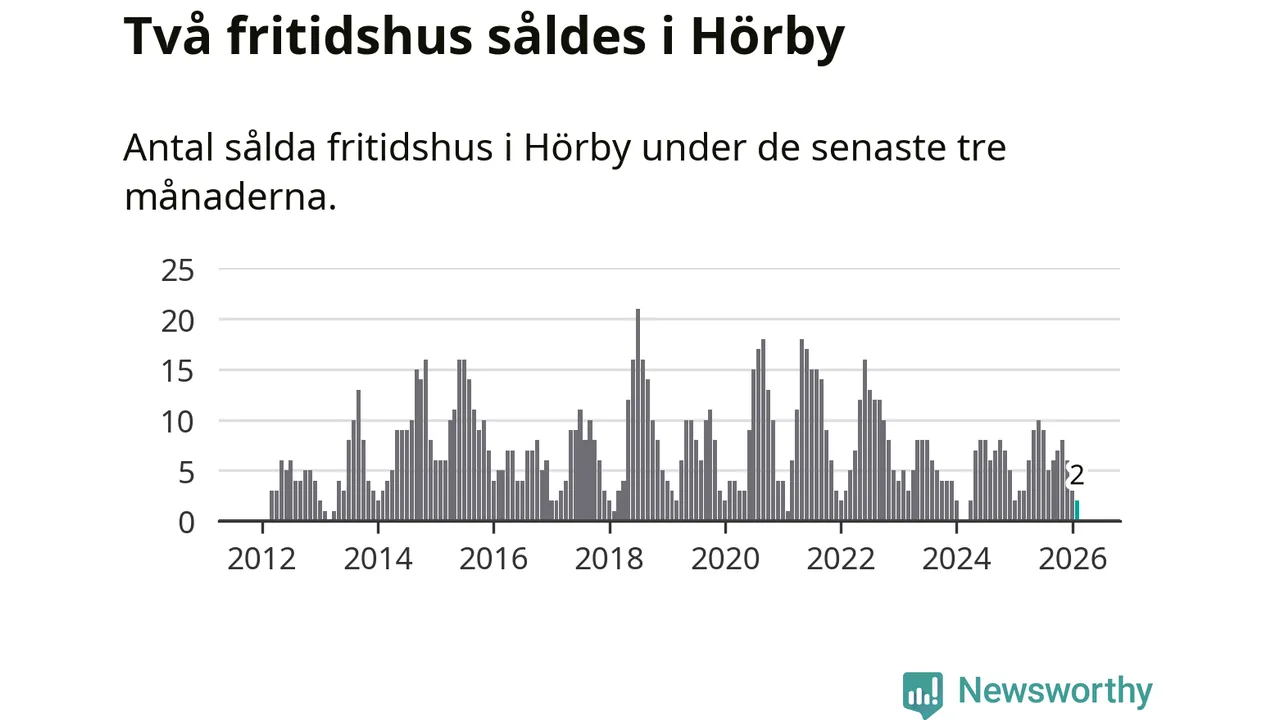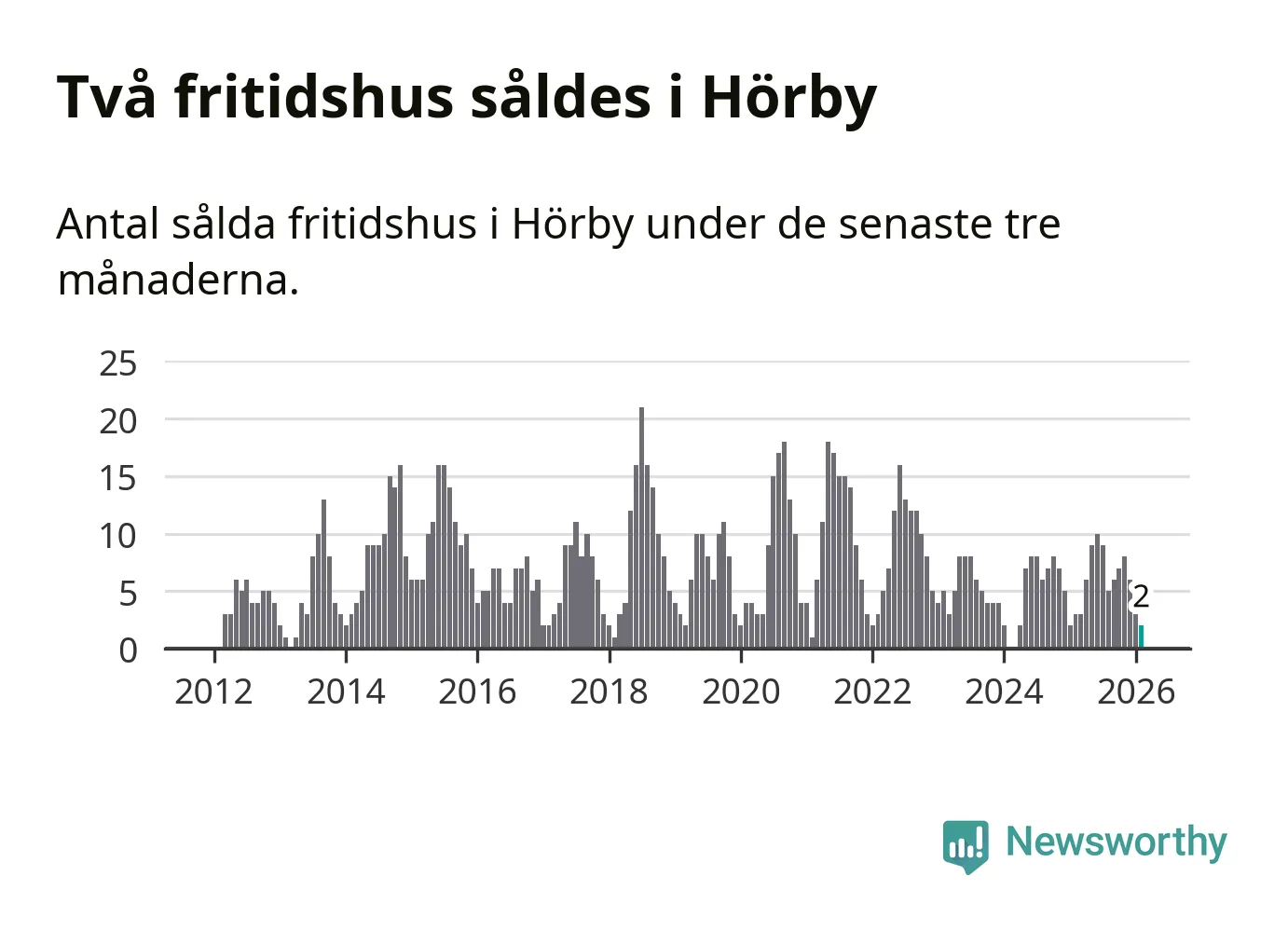 Mellan december och februari gjordes sammanlagt två affärer med fritidshus i Hörby kommun. Det kan jämföras med tre vid motsvarande tid i fjol.