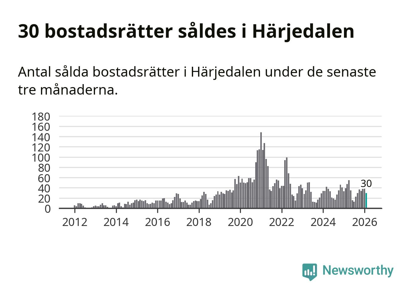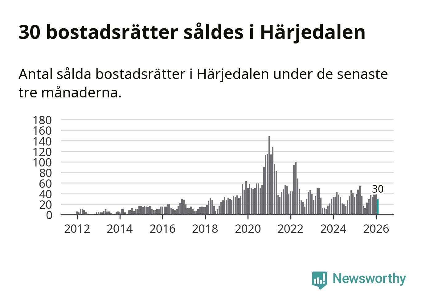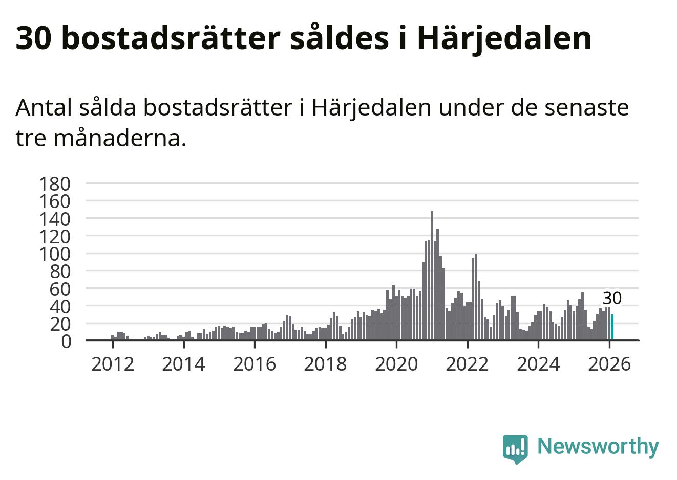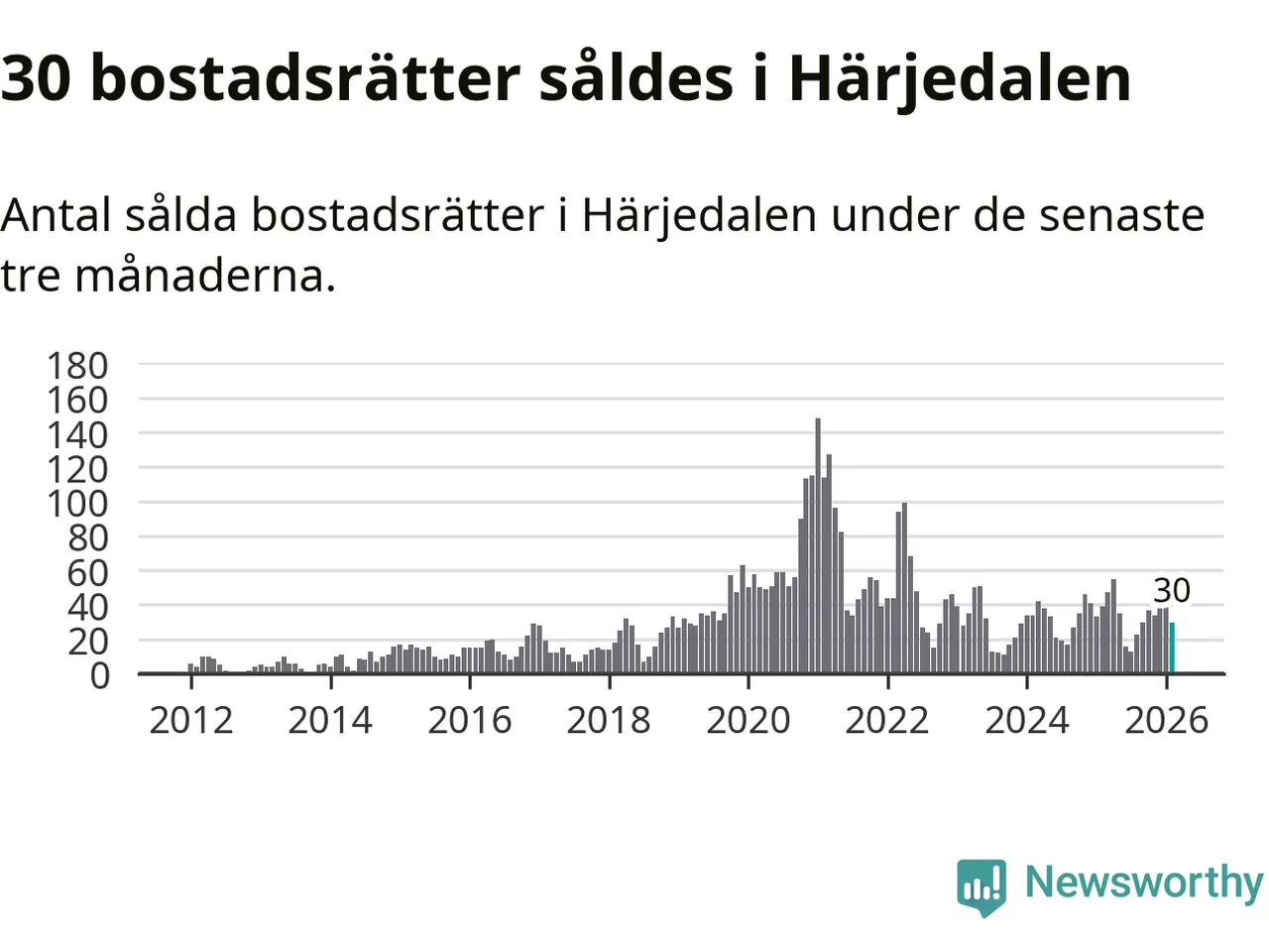 Sammanlagt såldes 30 bostadsrätter i Härjedalens kommun mellan december och februari till ett genomsnittligt pris på 3,0 miljoner kronor. I fjol gjordes 39 affärer vid den här tiden på året.