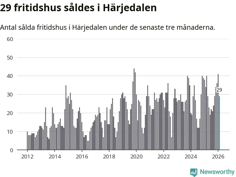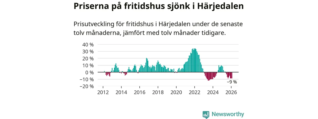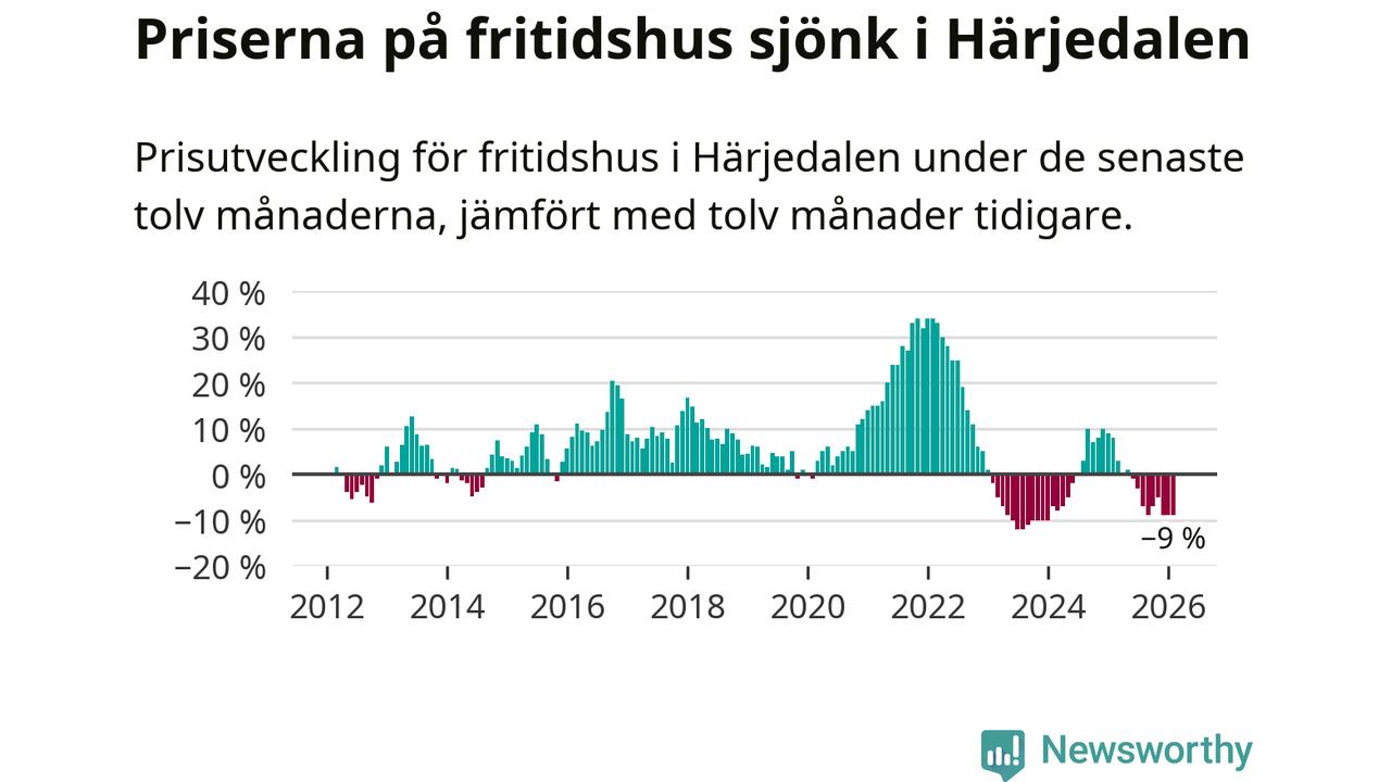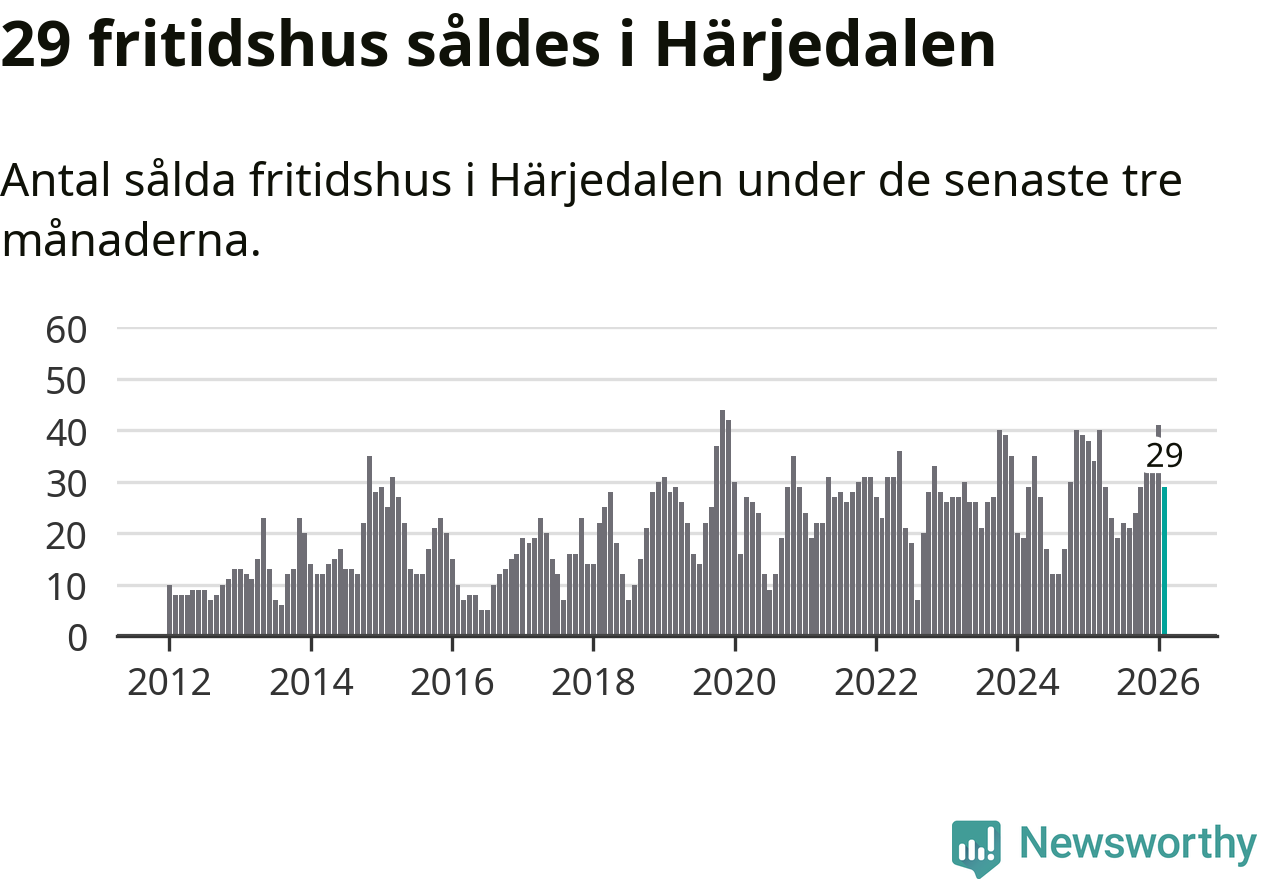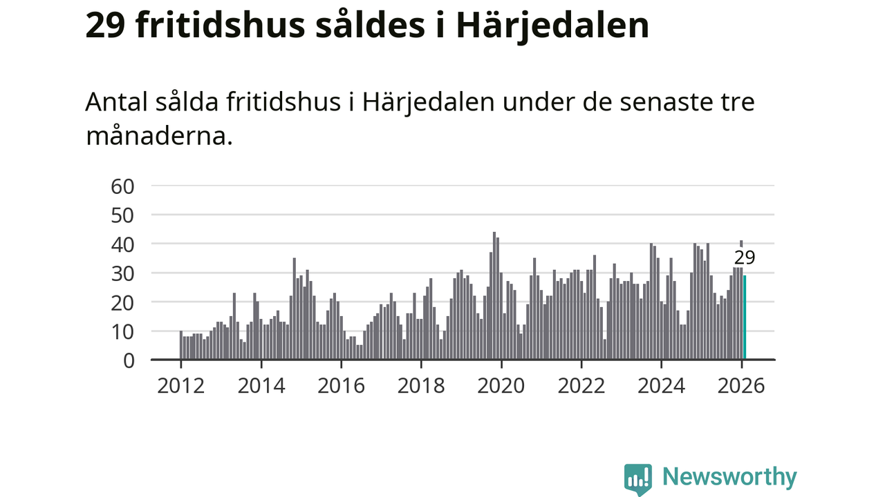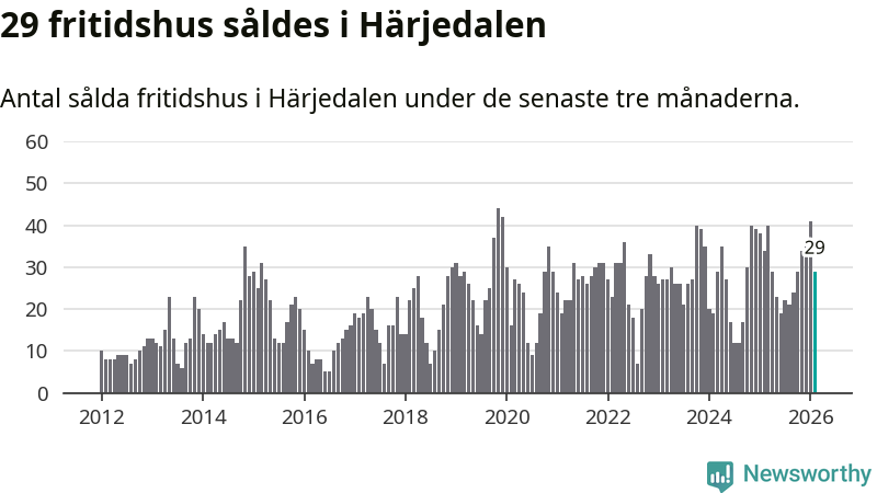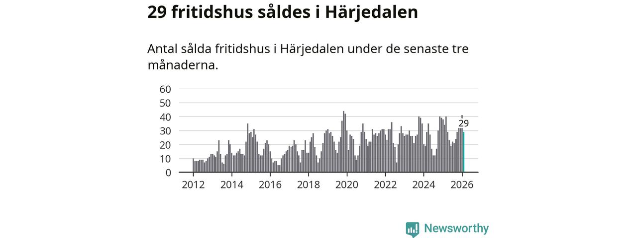 Sammanlagt såldes 29 fritidshus i Härjedalens kommun mellan december 2025 och februari till ett genomsnittligt pris på 3,4 miljoner kronor. I fjol gjordes 34 affärer vid den här tiden på året.