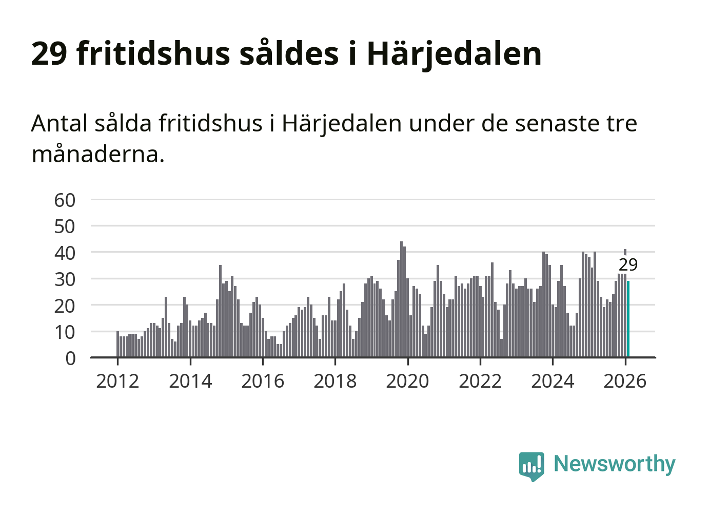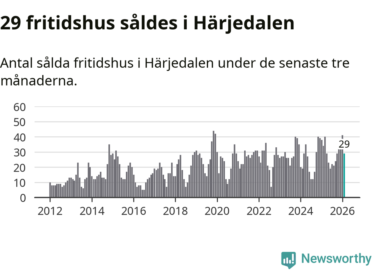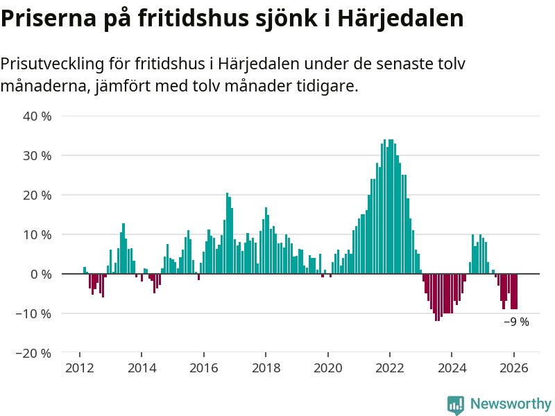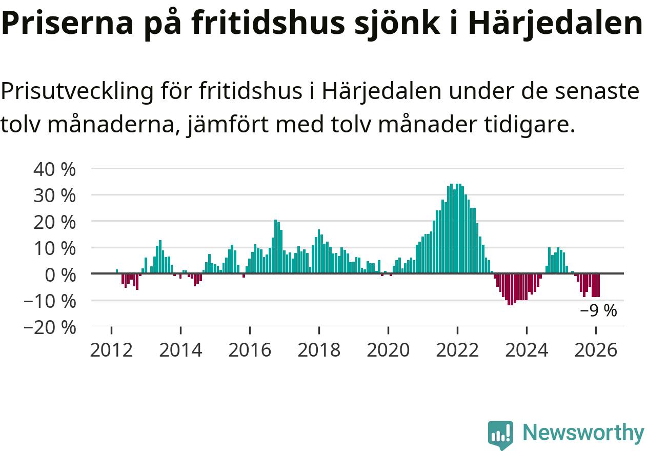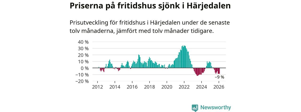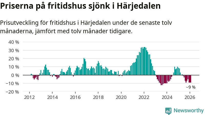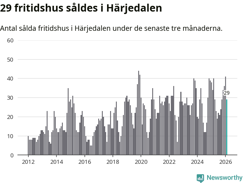 Sammanlagt såldes 29 fritidshus i Härjedalens kommun mellan december 2025 och februari till ett genomsnittligt pris på 3,4 miljoner kronor. I fjol gjordes 34 affärer vid den här tiden på året.