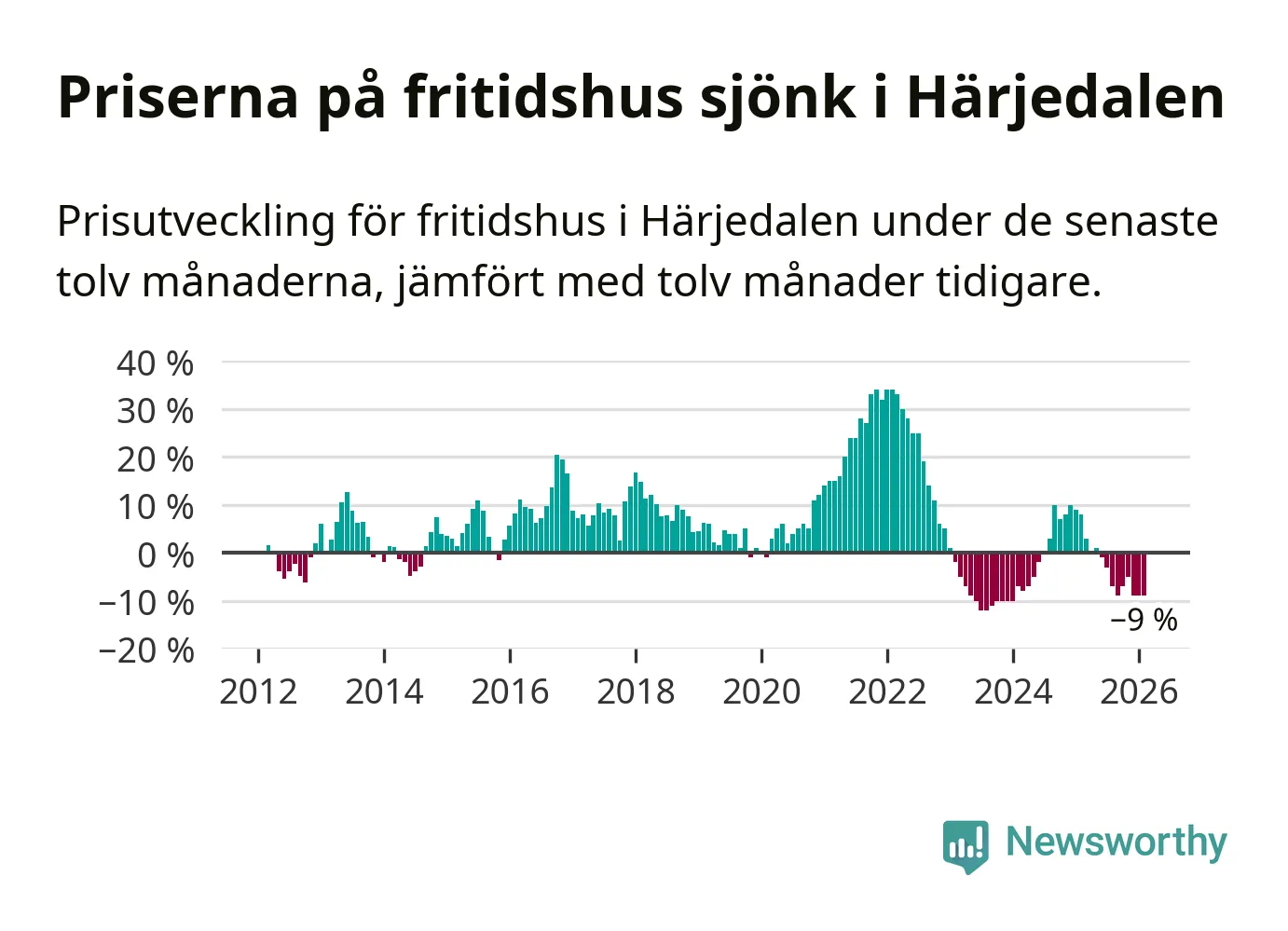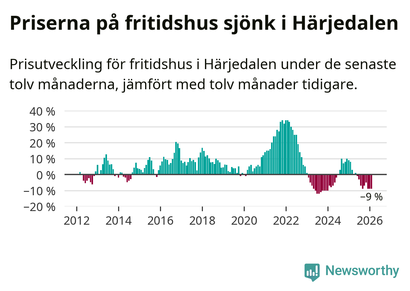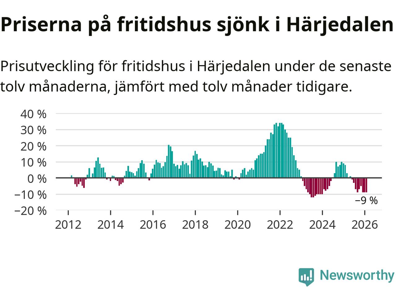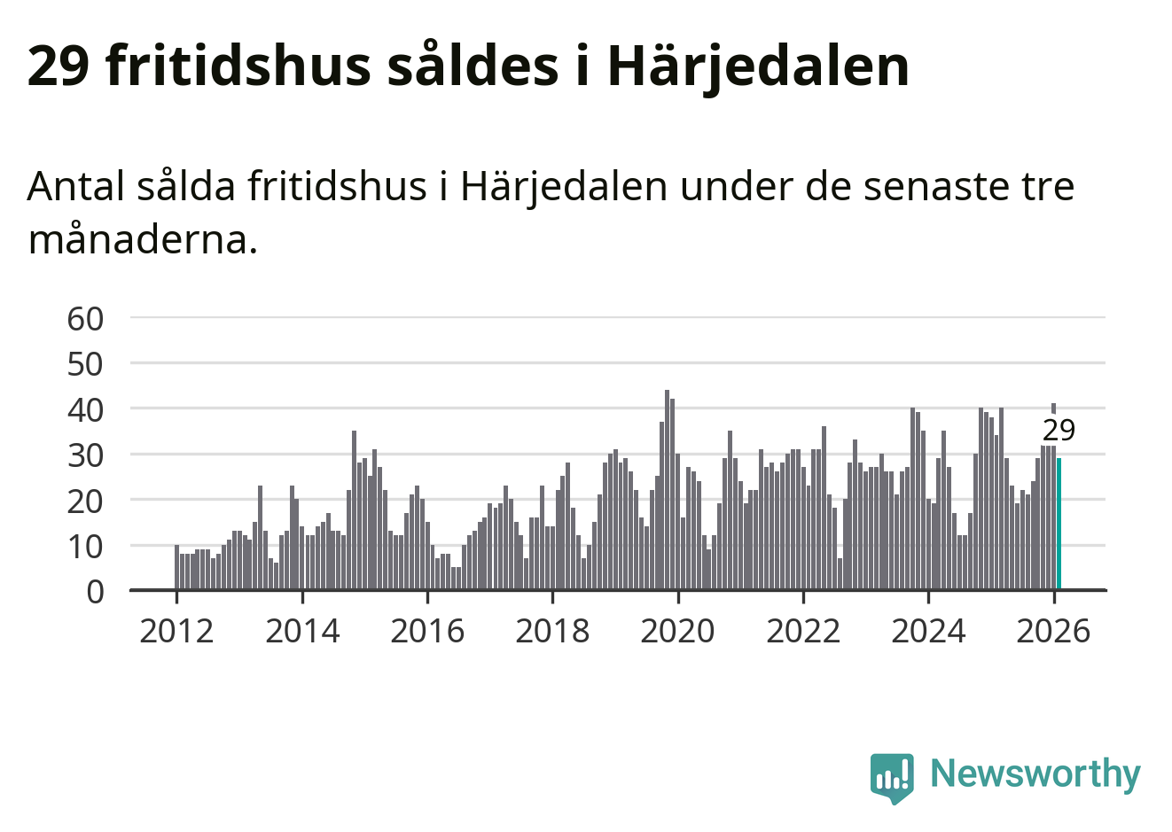 Sammanlagt såldes 29 fritidshus i Härjedalens kommun mellan december 2025 och februari till ett genomsnittligt pris på 3,4 miljoner kronor. I fjol gjordes 34 affärer vid den här tiden på året.