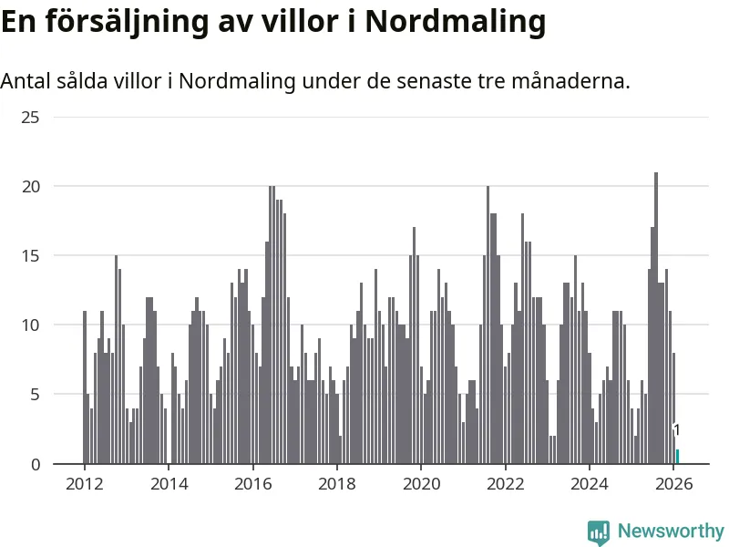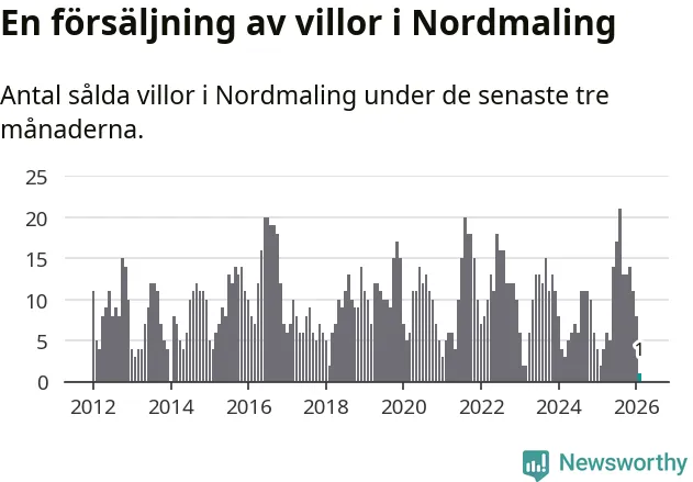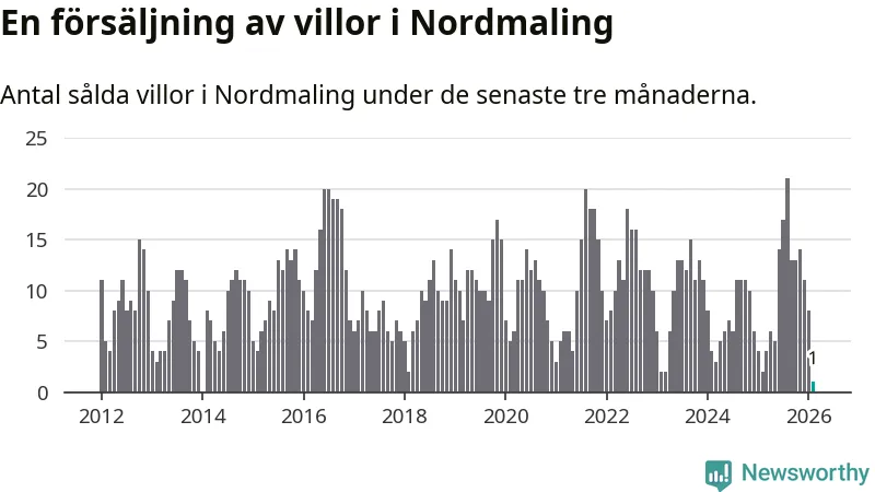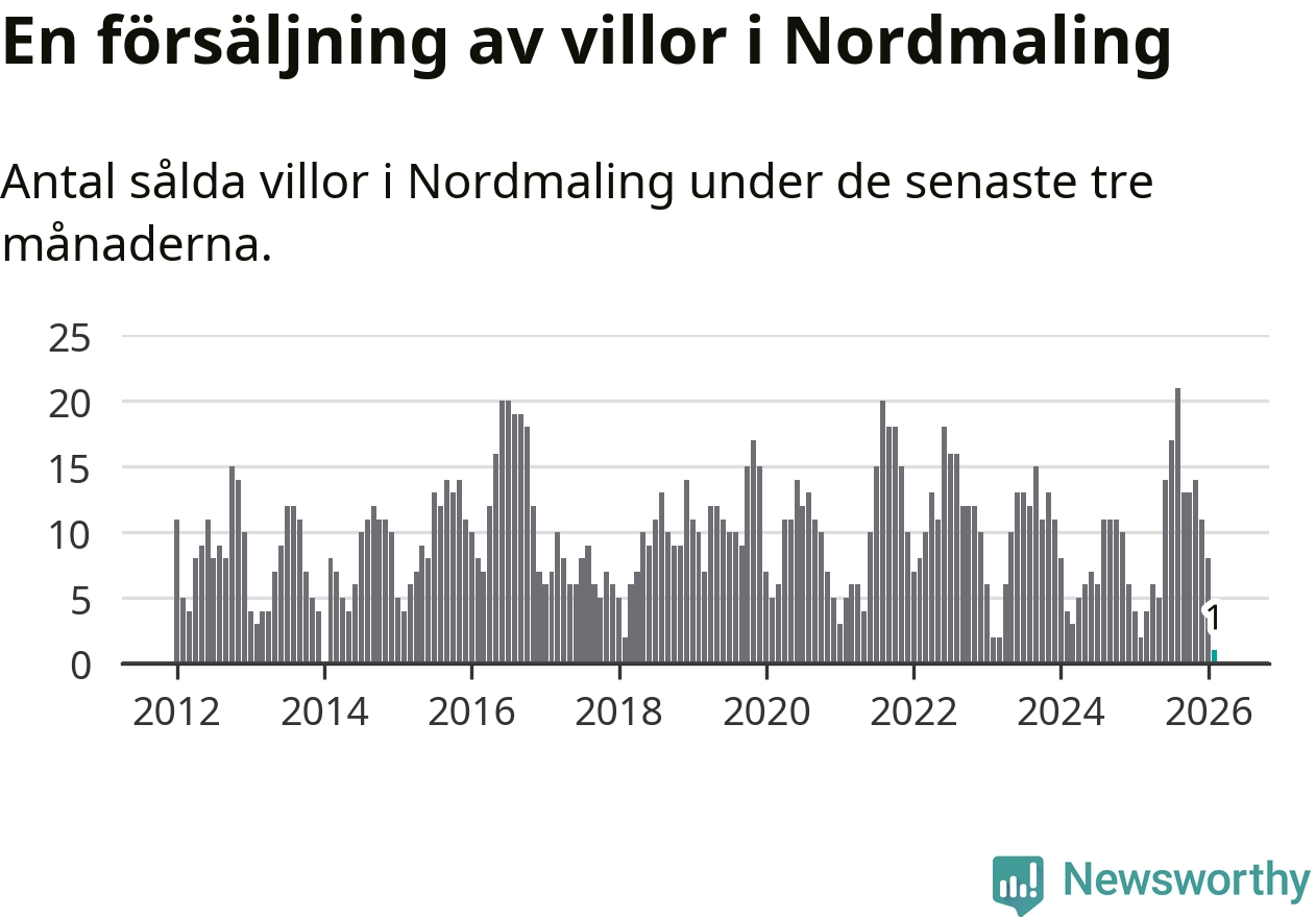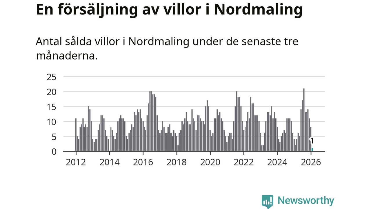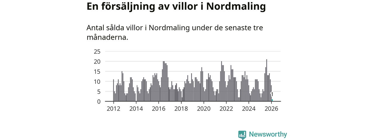 Mellan december och februari gjordes sammanlagt en affär med villor i Nordmalings kommun. Det kan jämföras med två vid motsvarande tid i fjol.