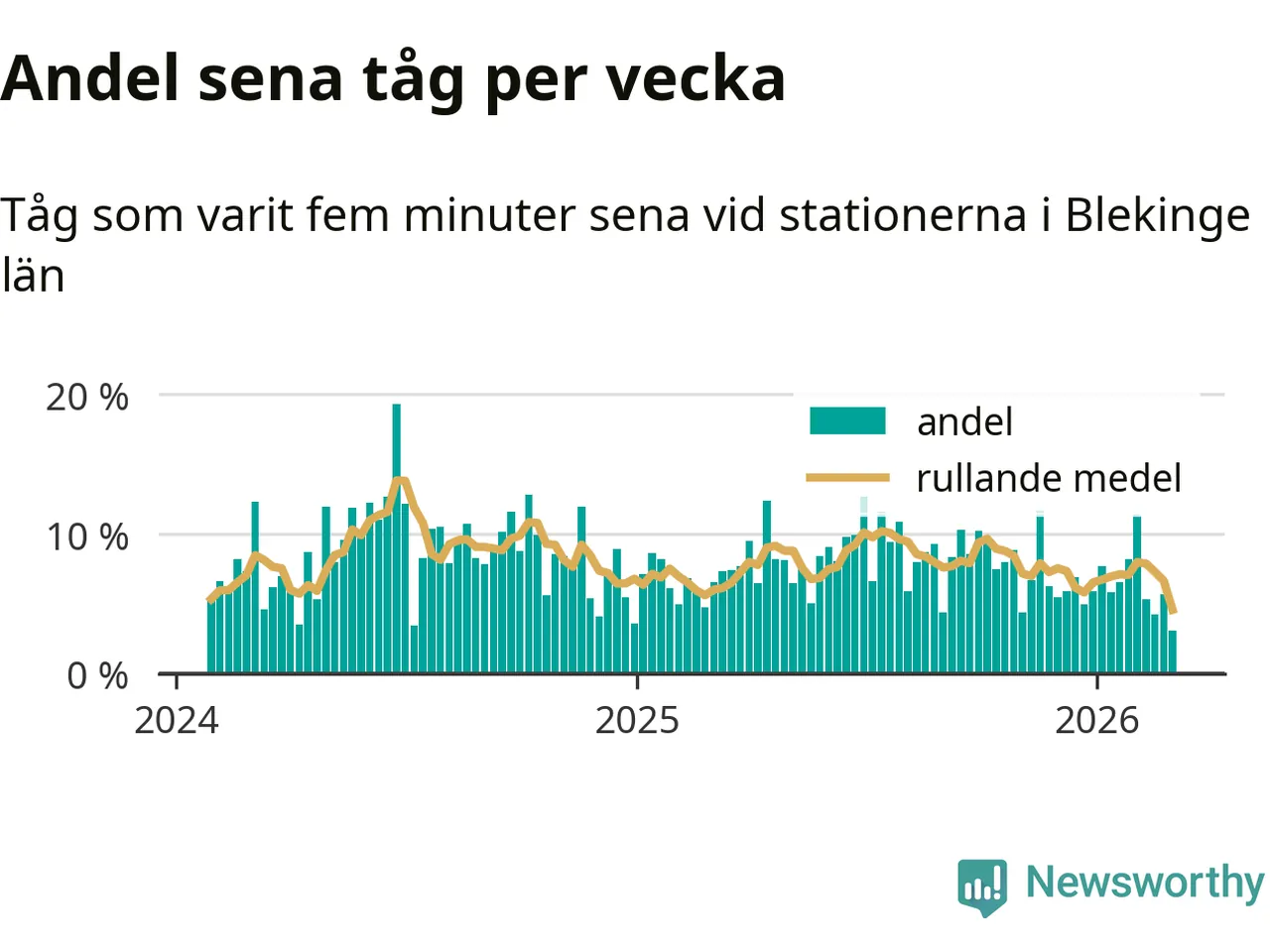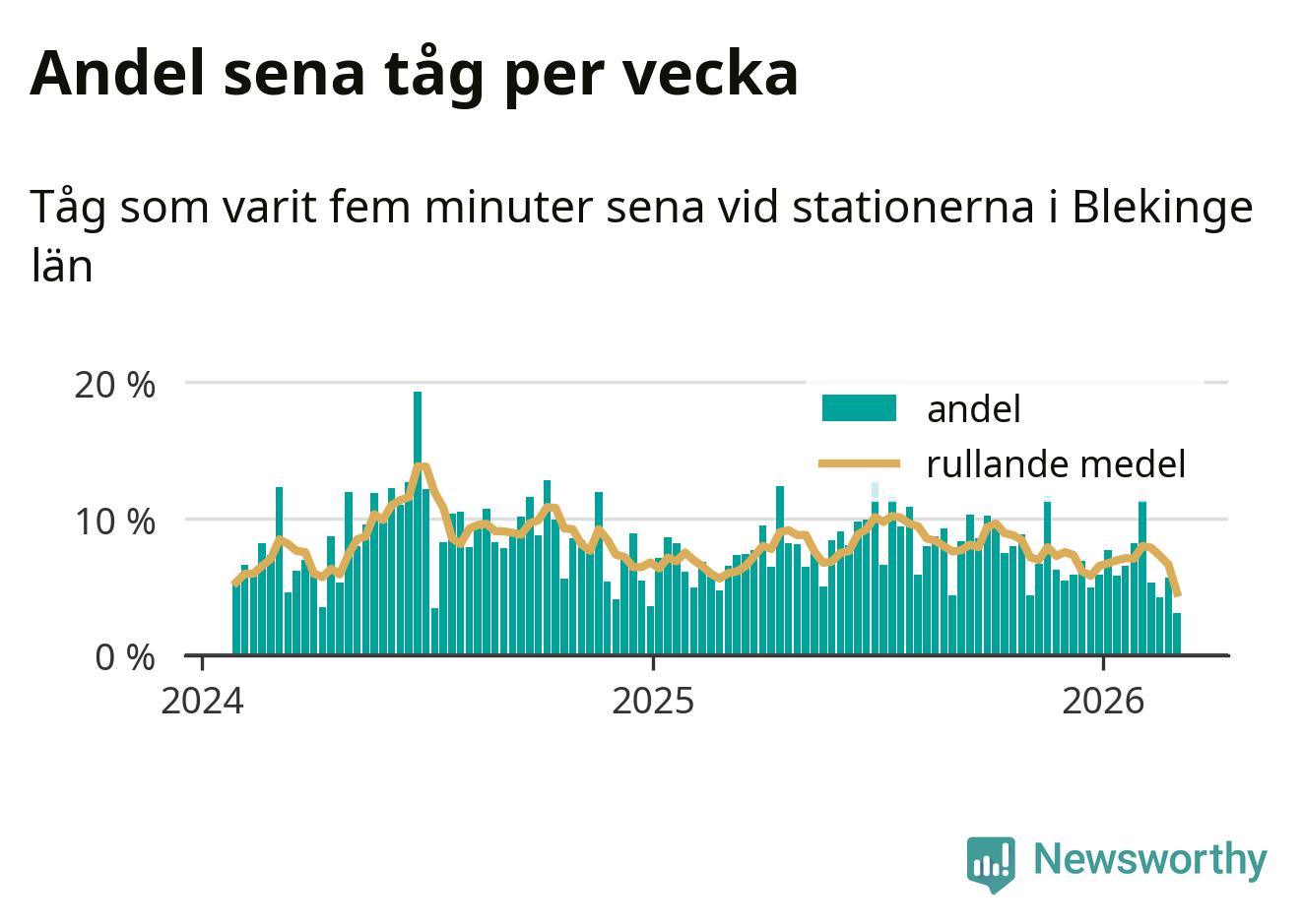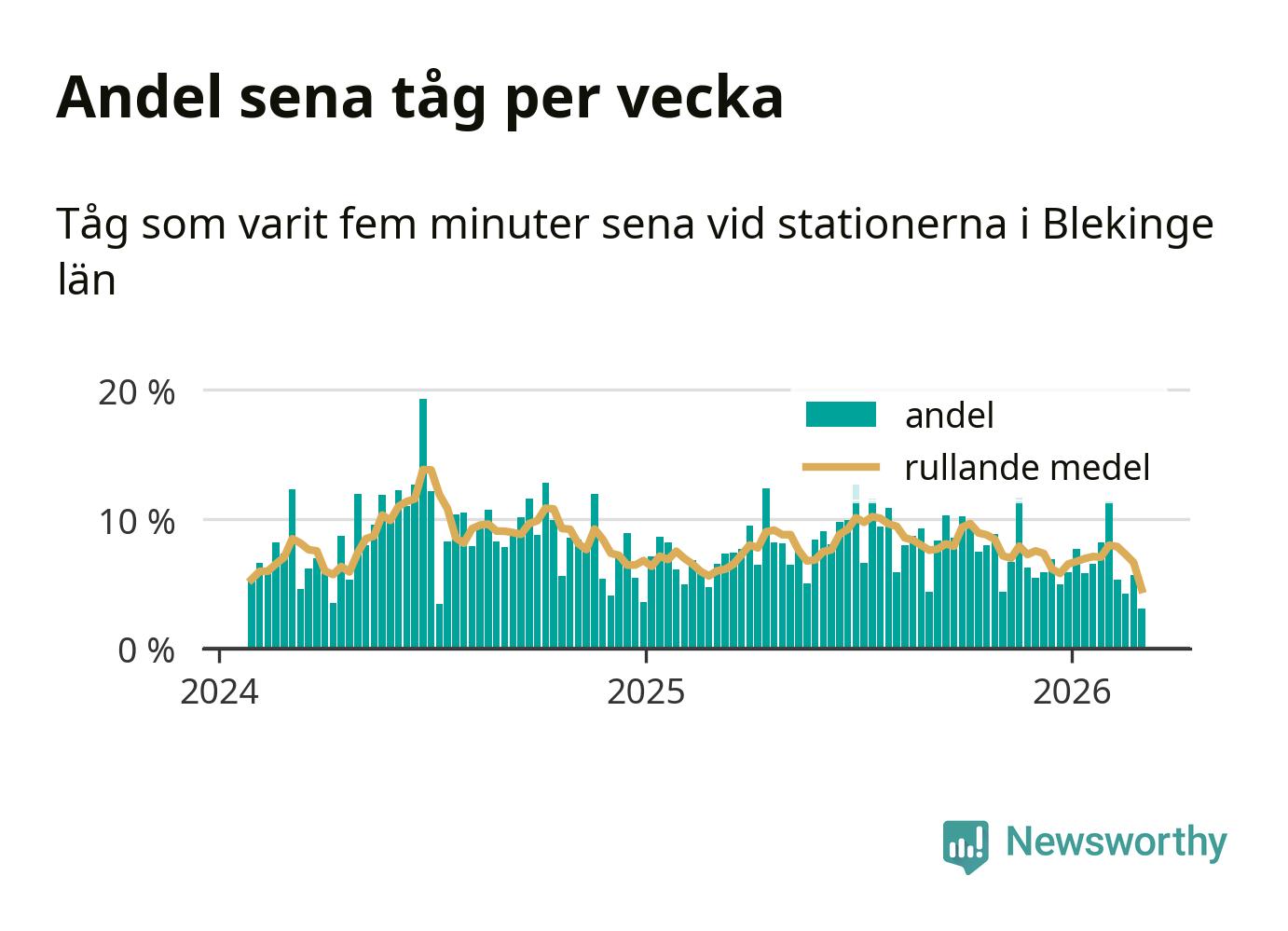 har andelen sena tåg varit 7 procent.