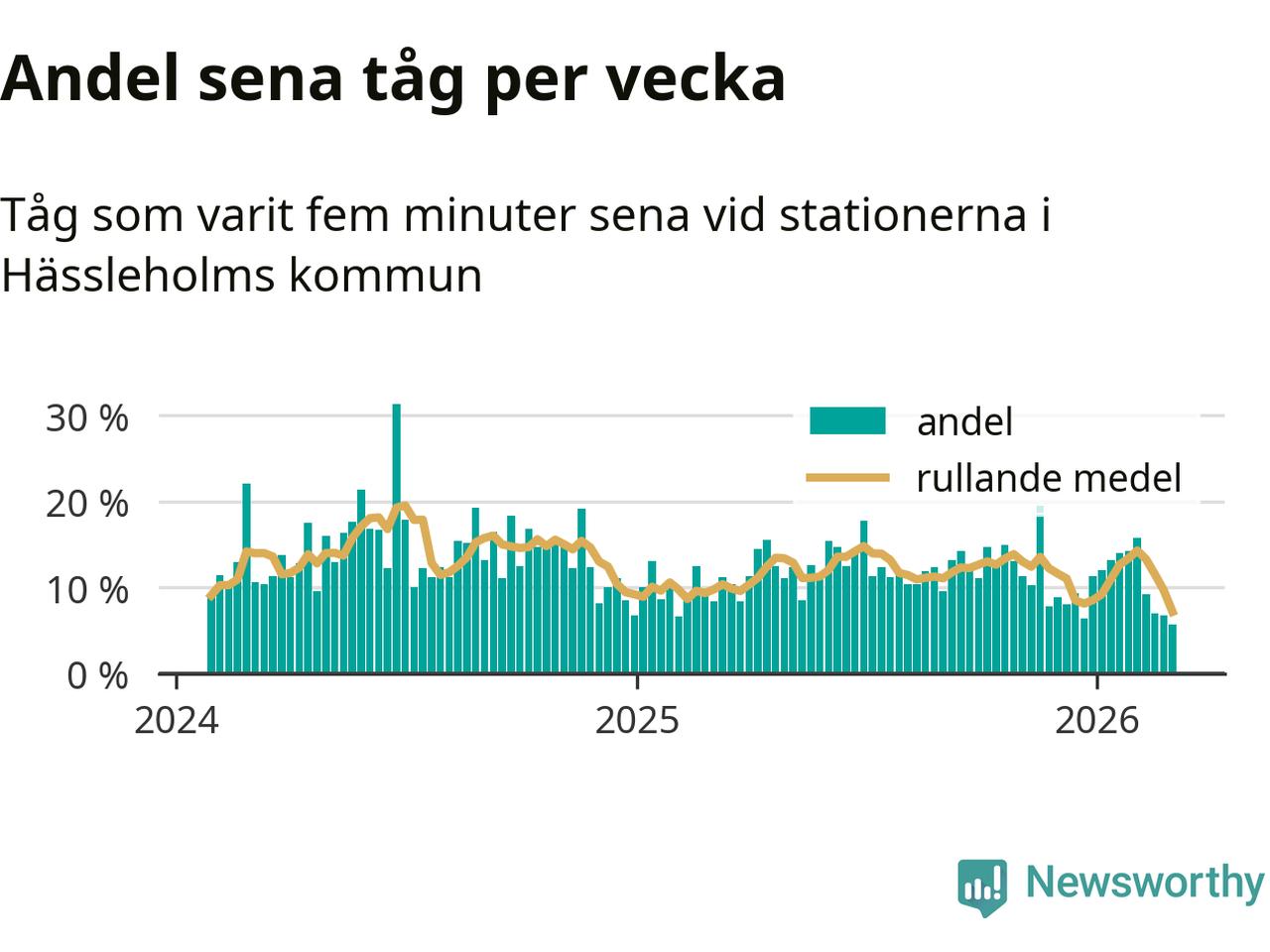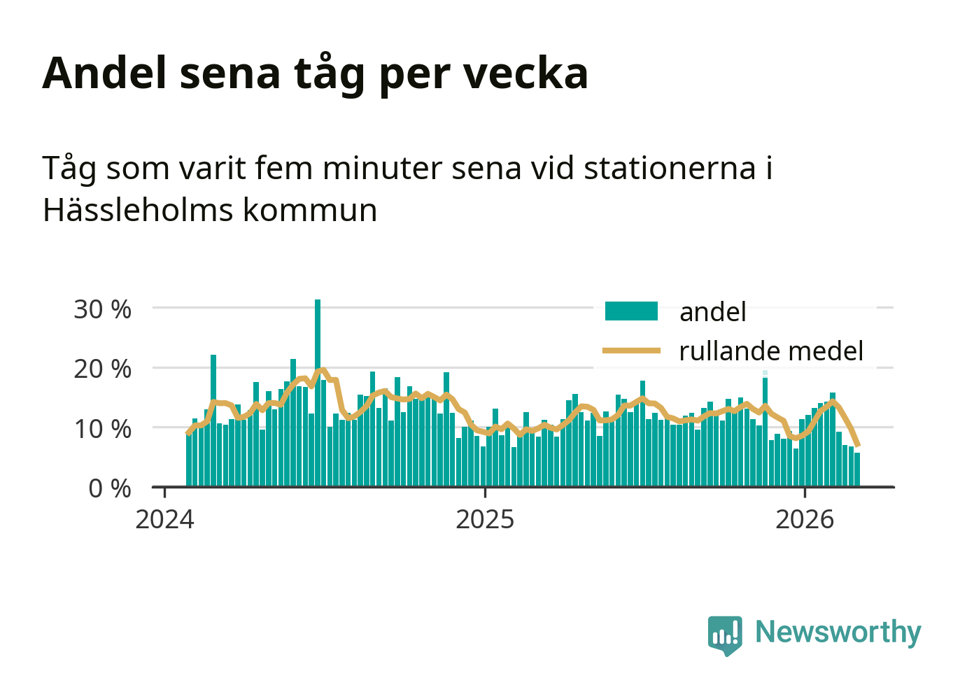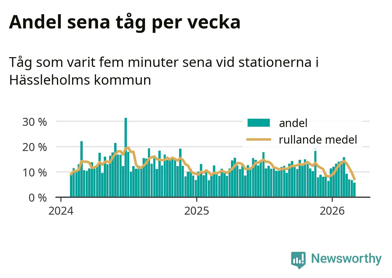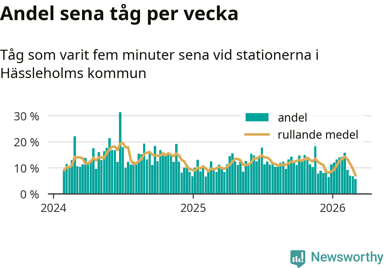 har andelen sena tåg varit 11 procent.
