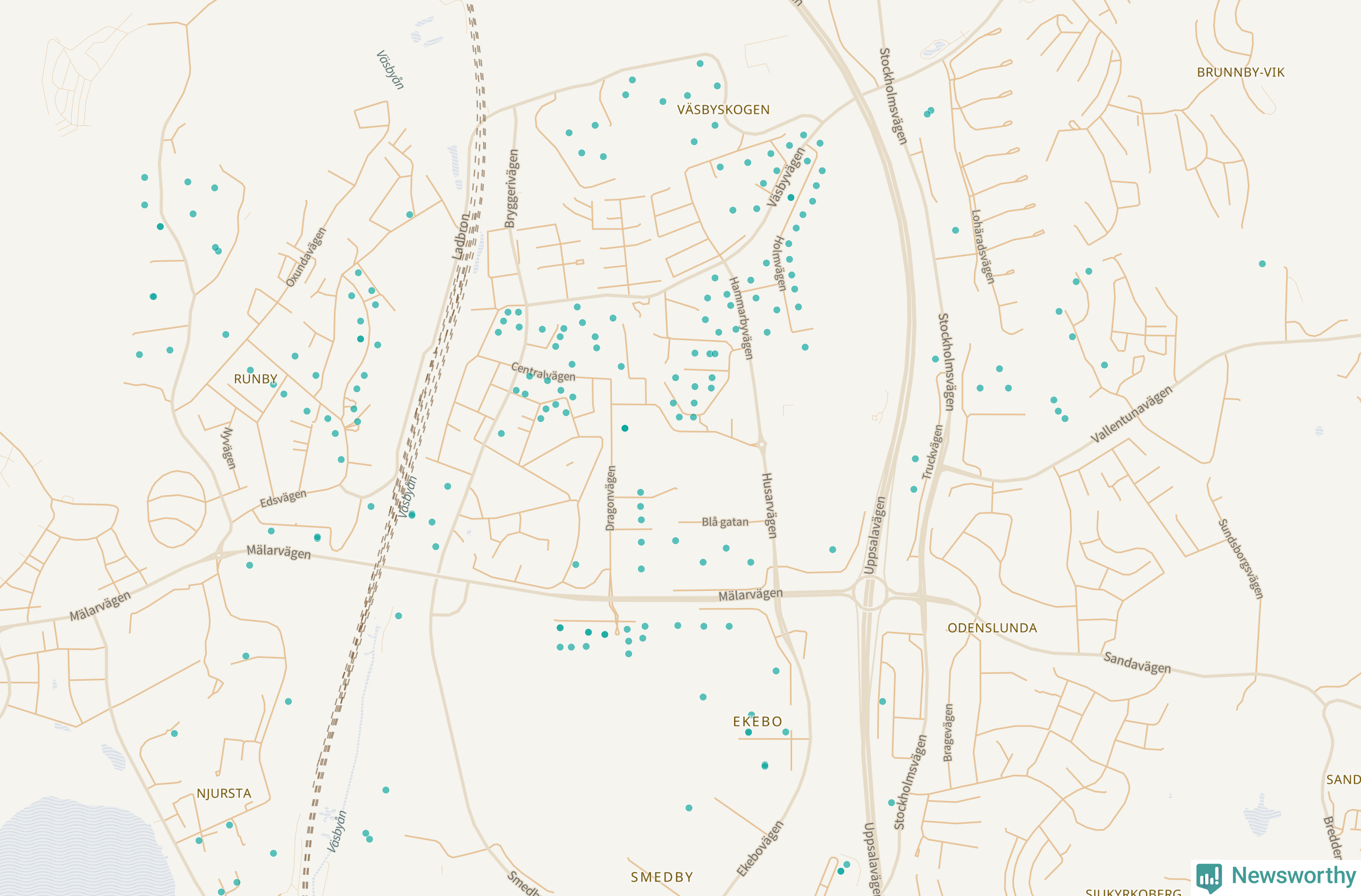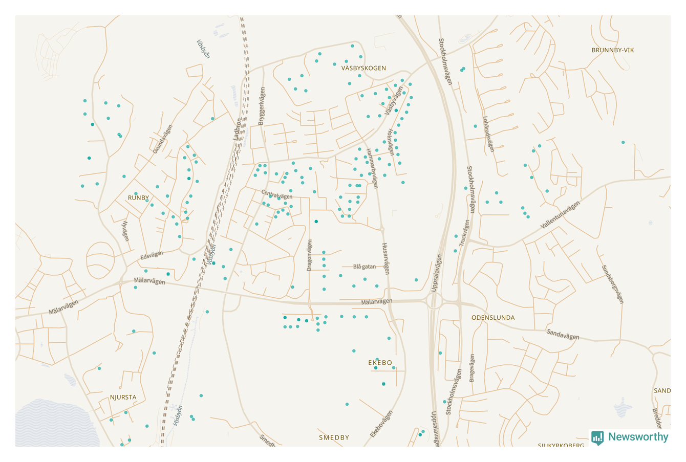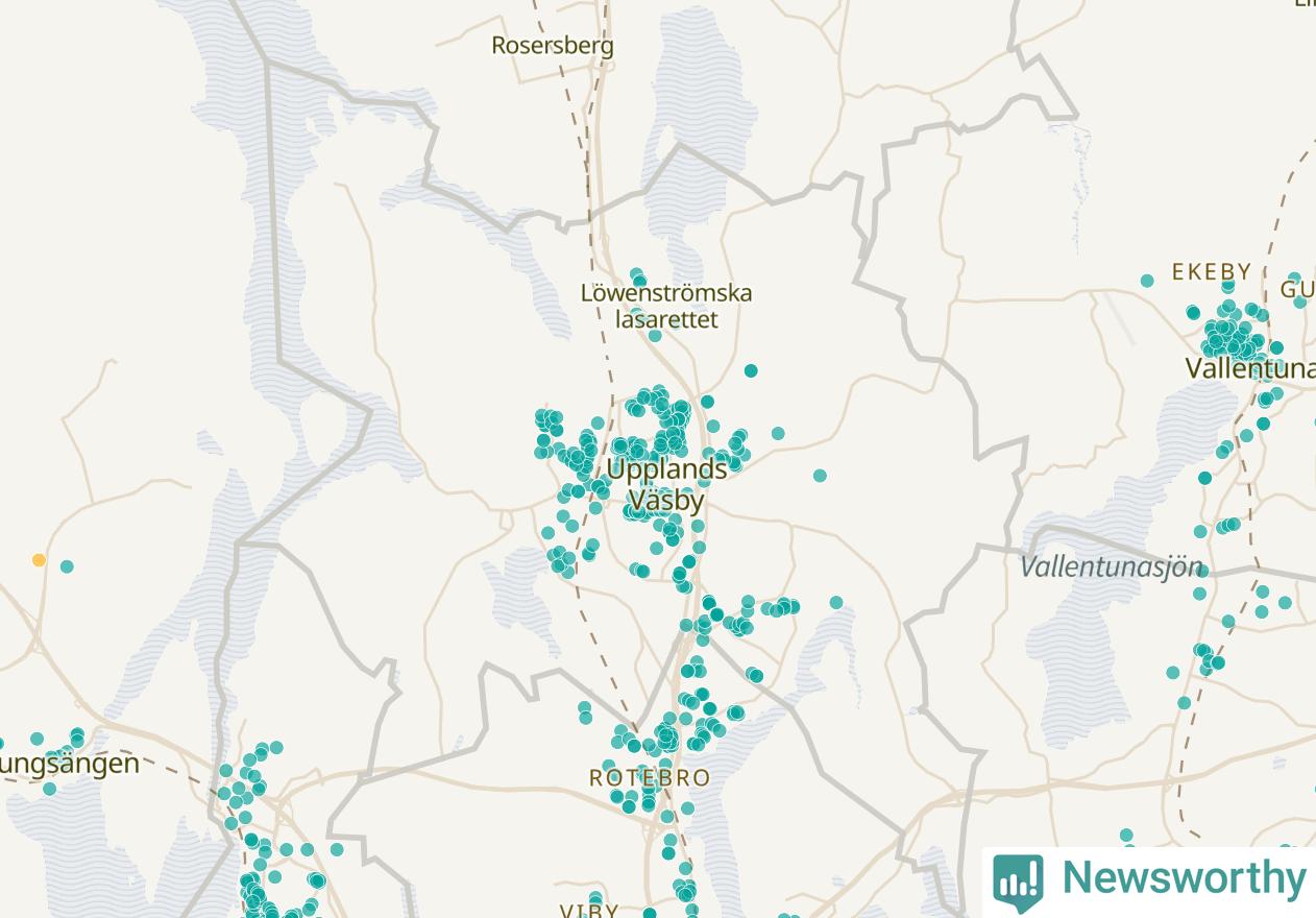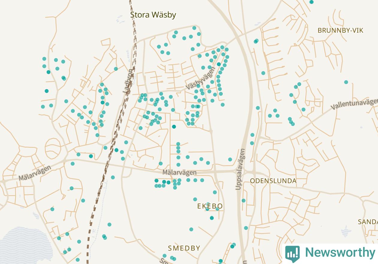 | Upplands Väsby | 277 | 37 741 | 75 % |