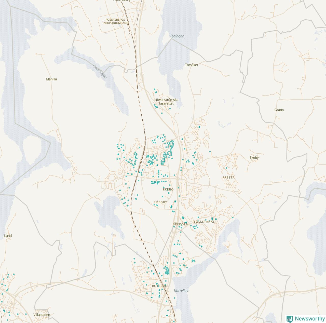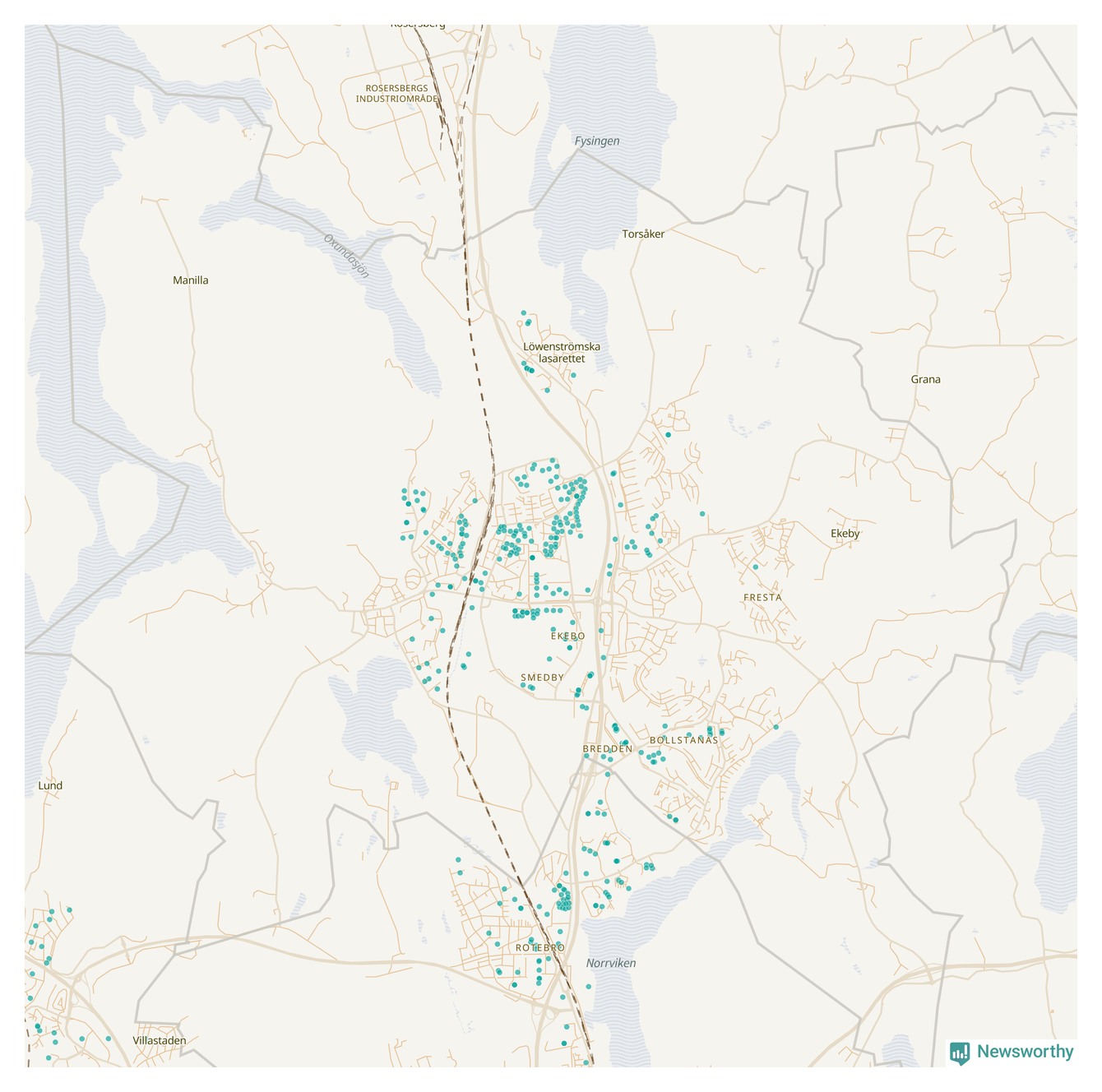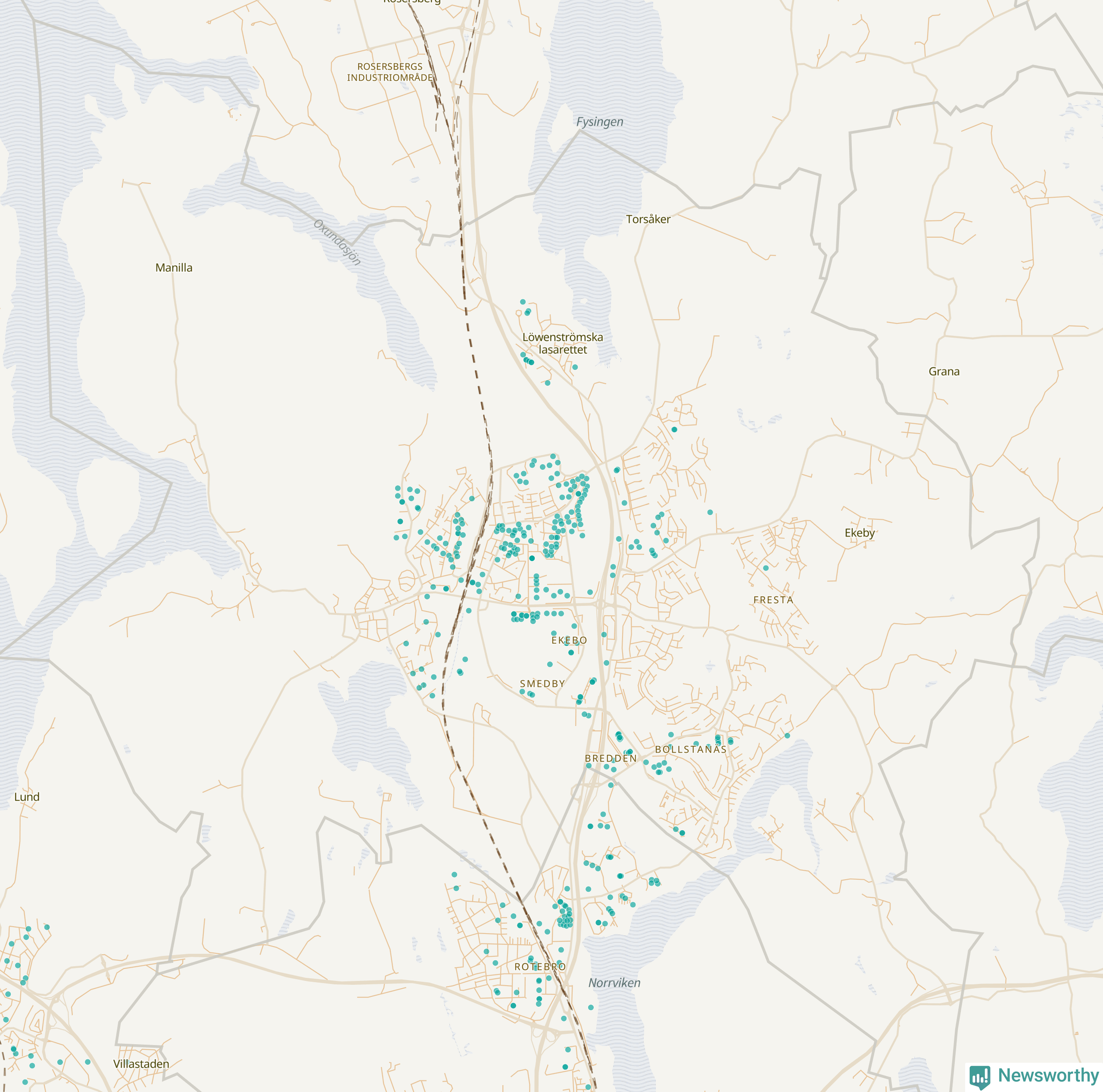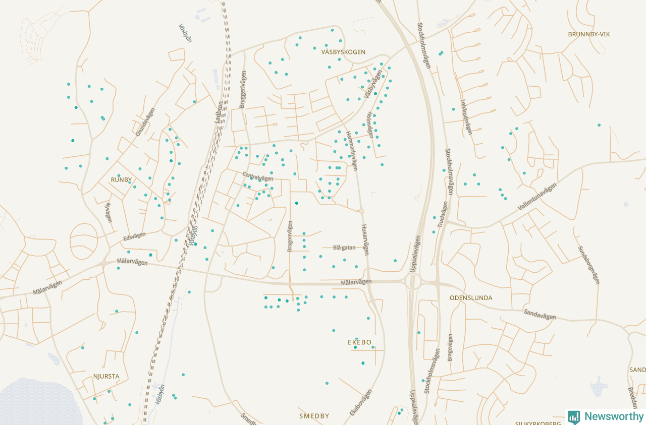 | Upplands Väsby | 277 | 37 741 | 75 % |