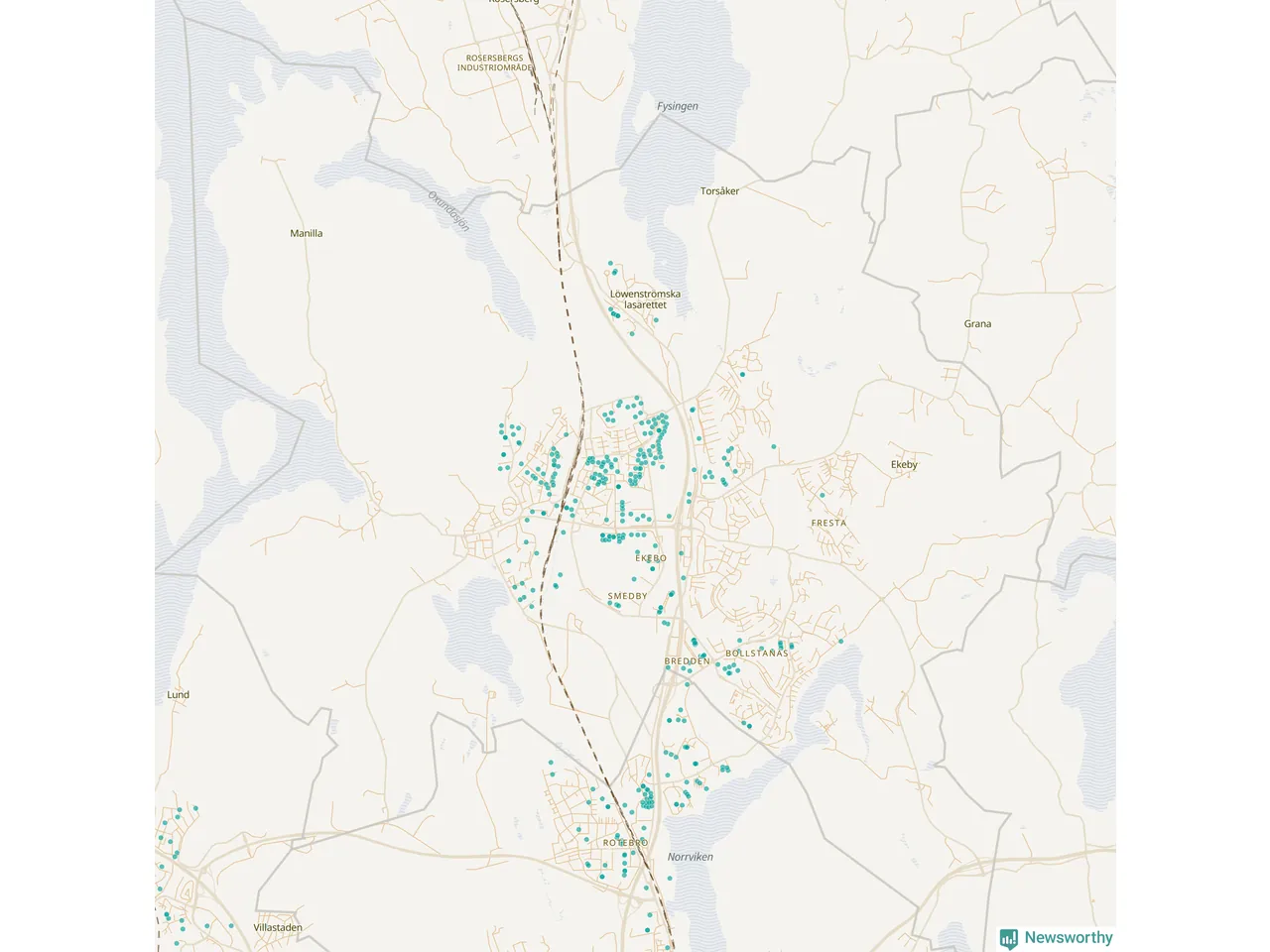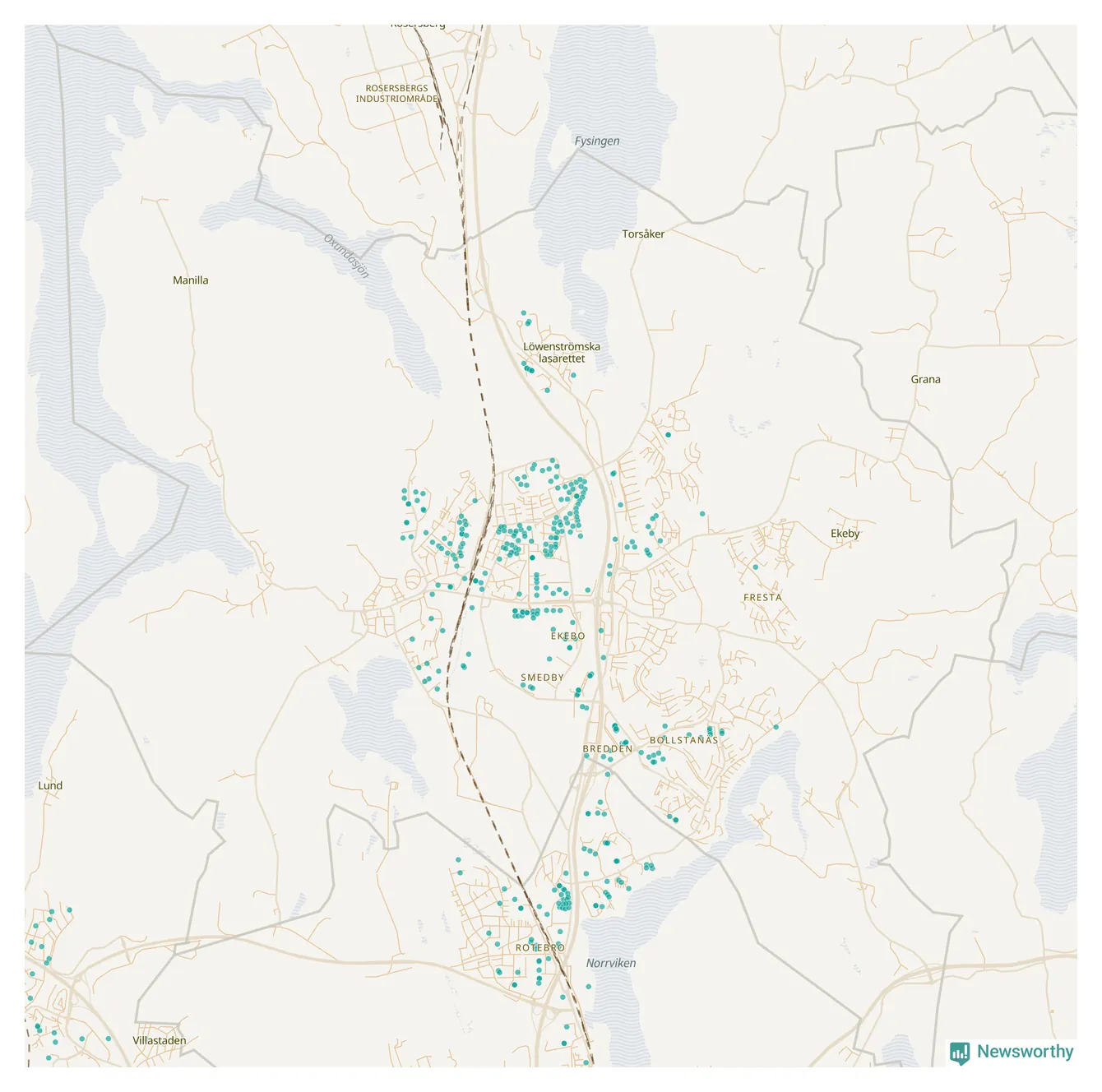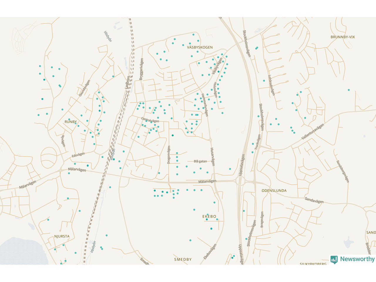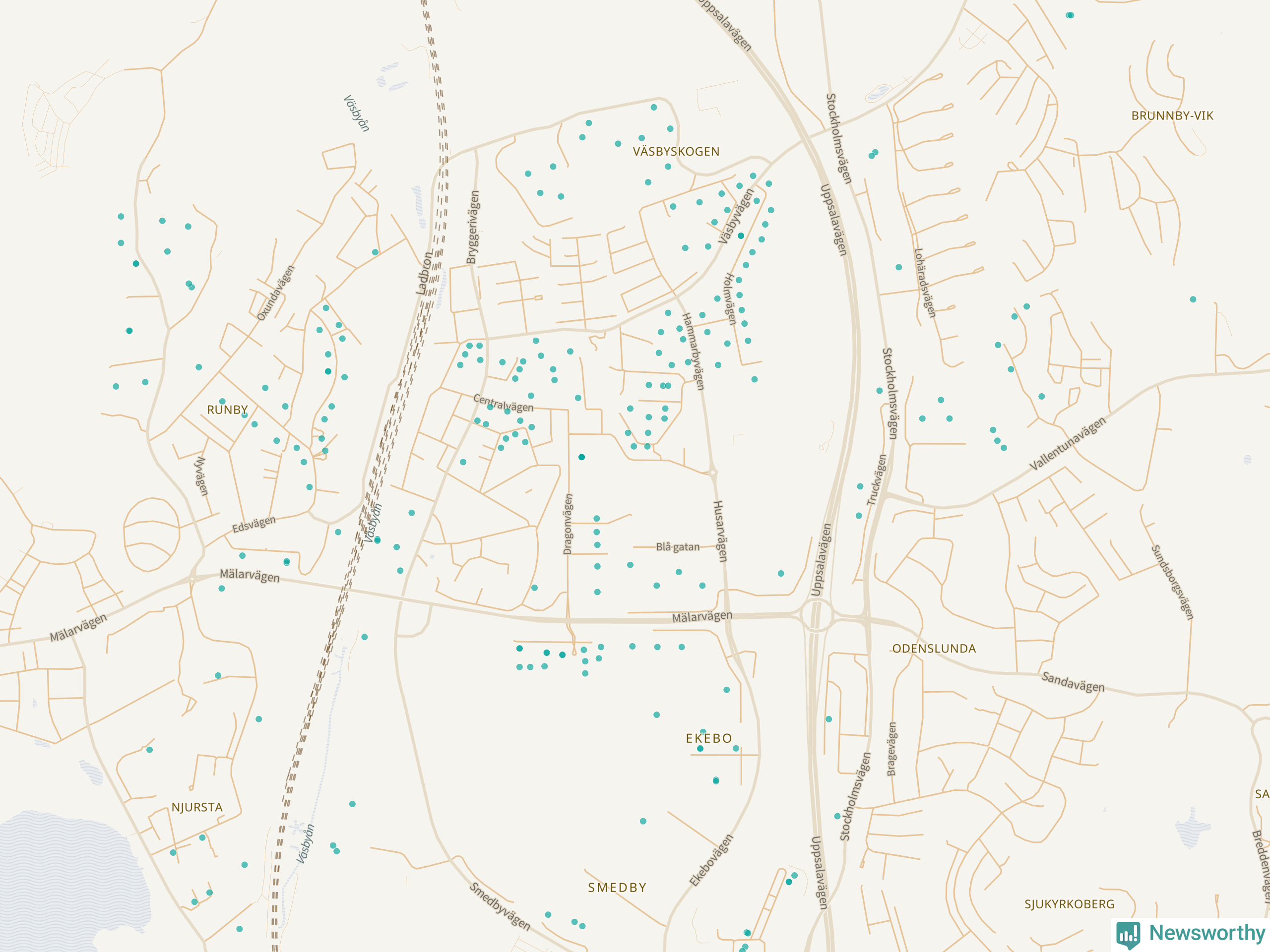 | Upplands Väsby | 277 | 37 741 | 75 % |