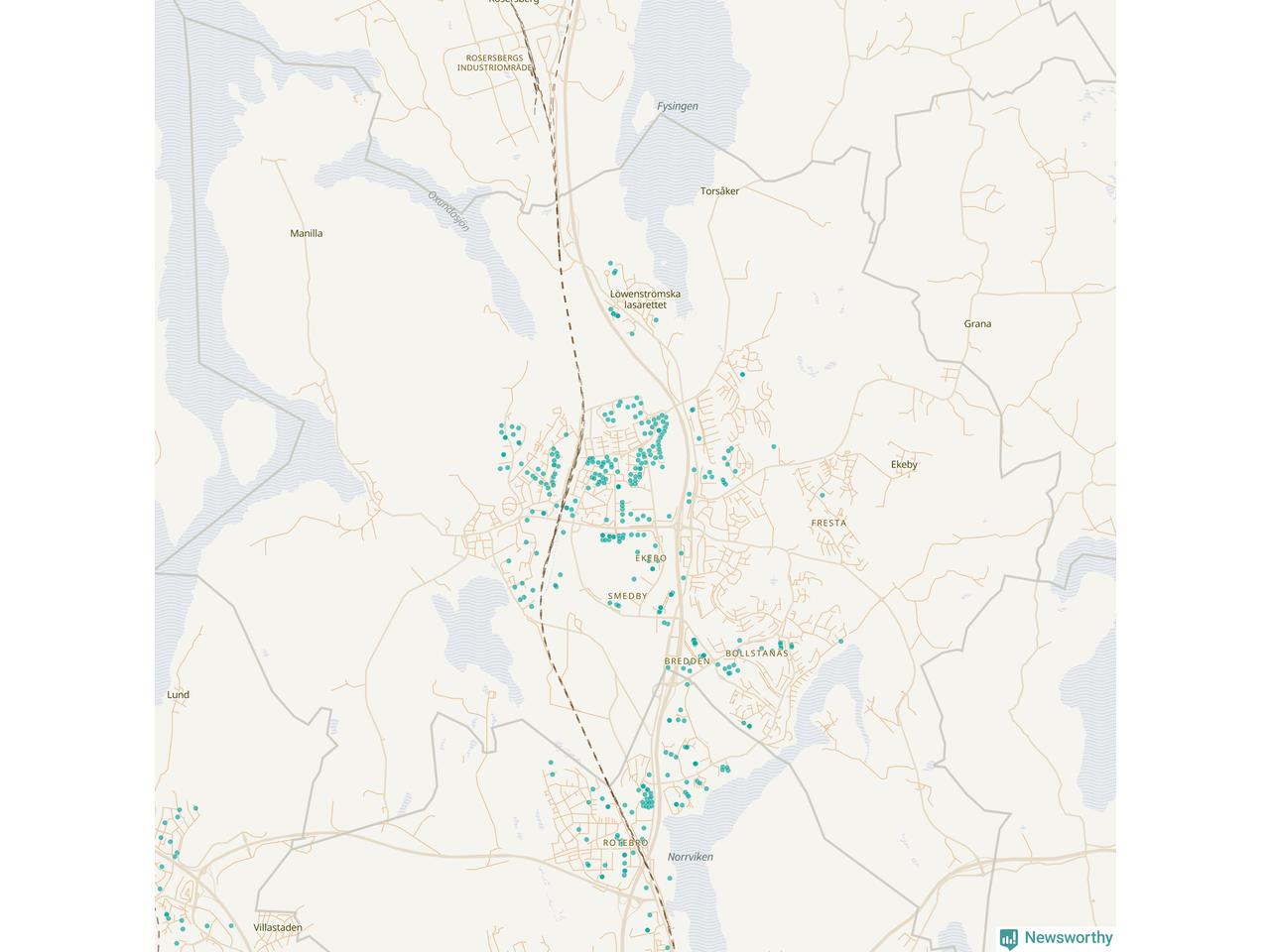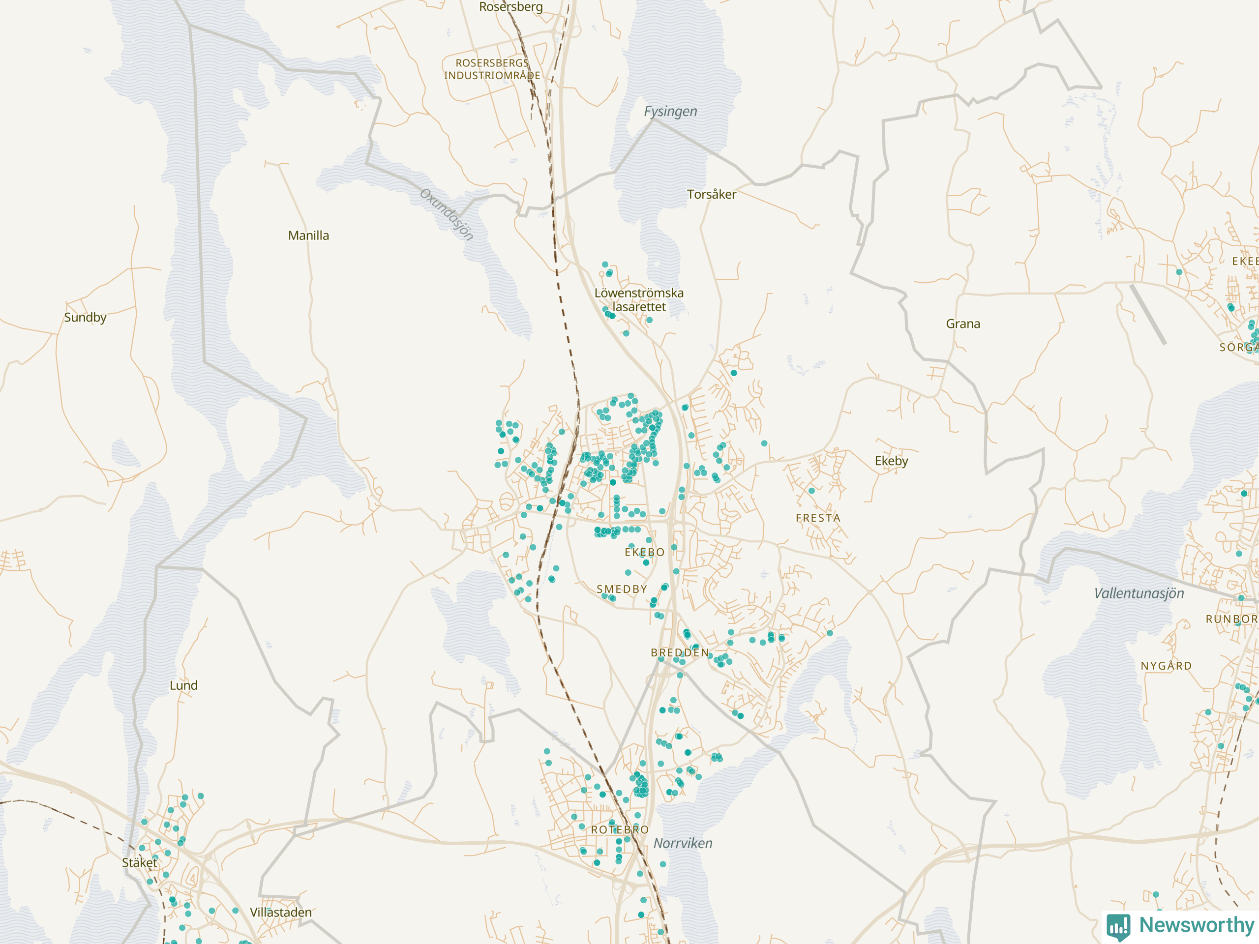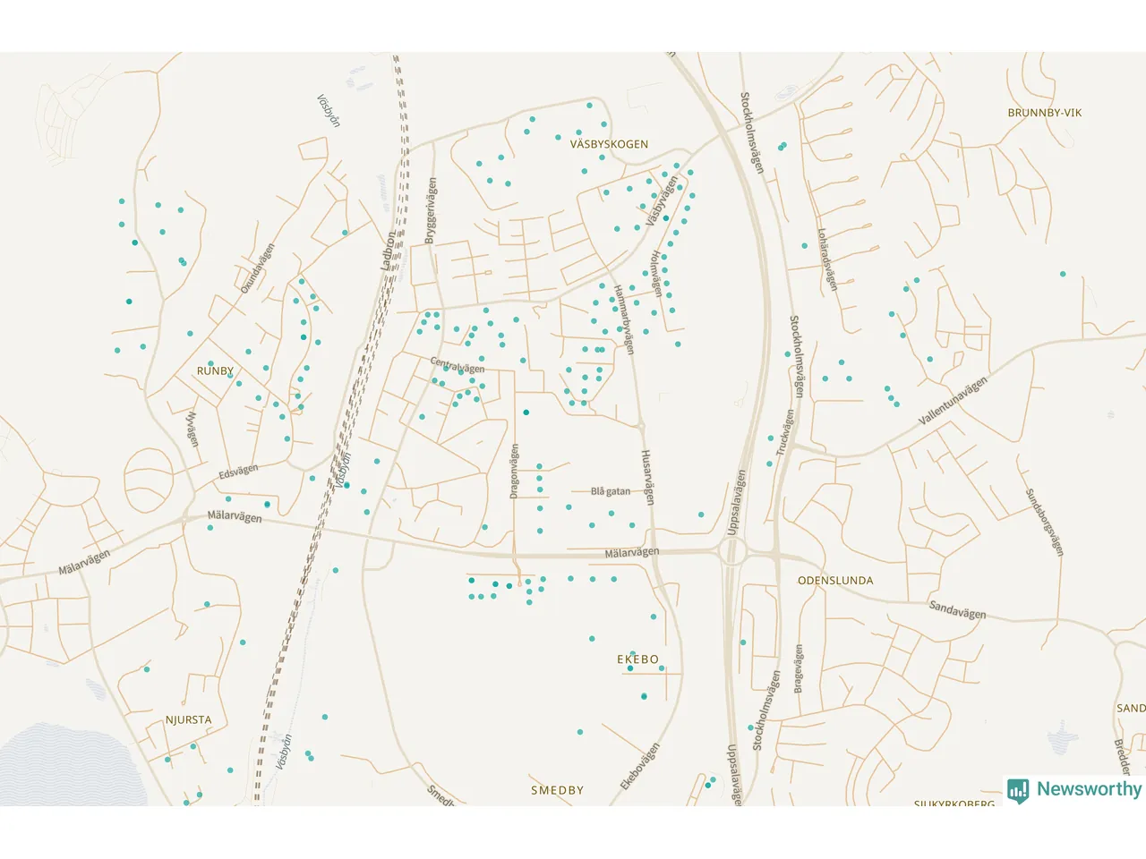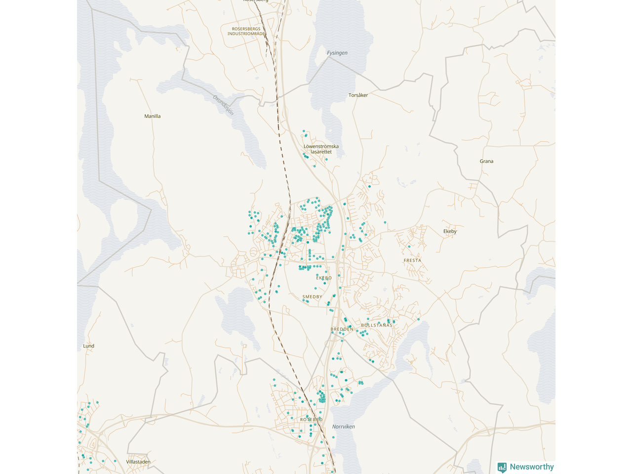 | Upplands Väsby | 277 | 37 741 | 75 % |