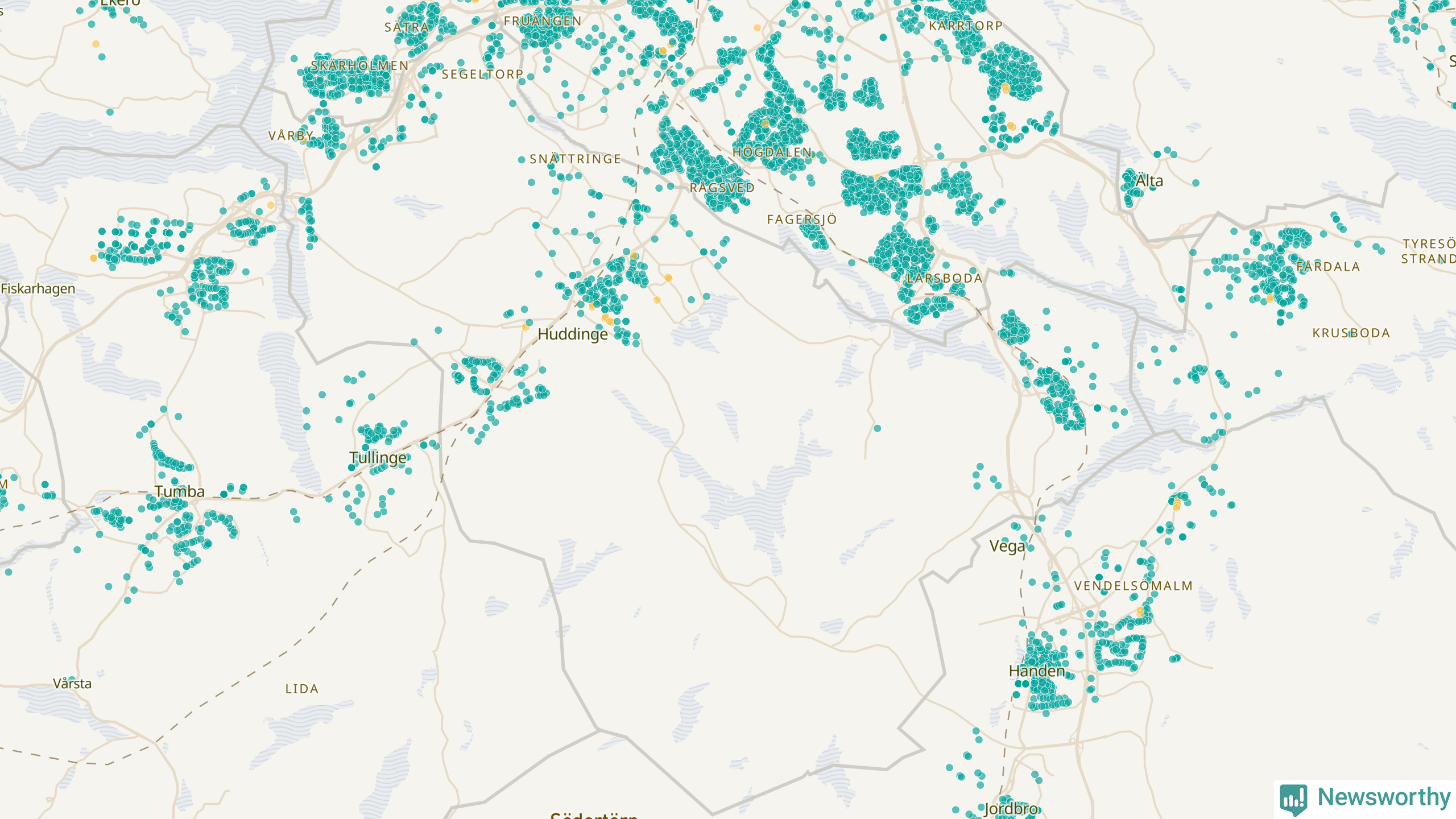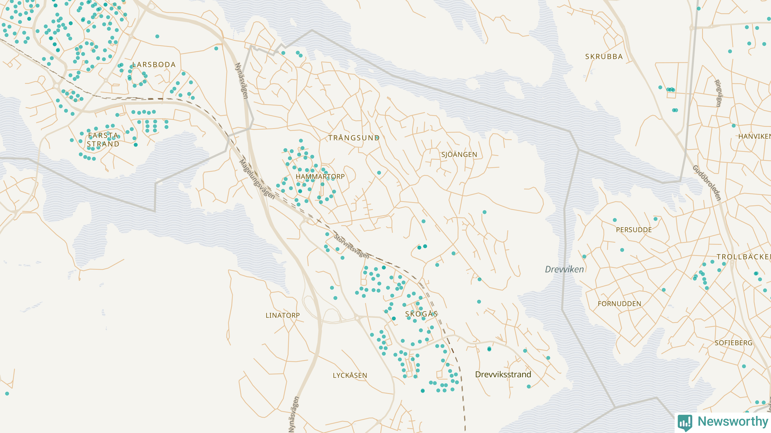 Newsworthy är en nyhetssajt som gör lokal journalistik baserat på data. Vi är datajournalister som analyserar och tolkar världen på siffror, snarare än tyckande.