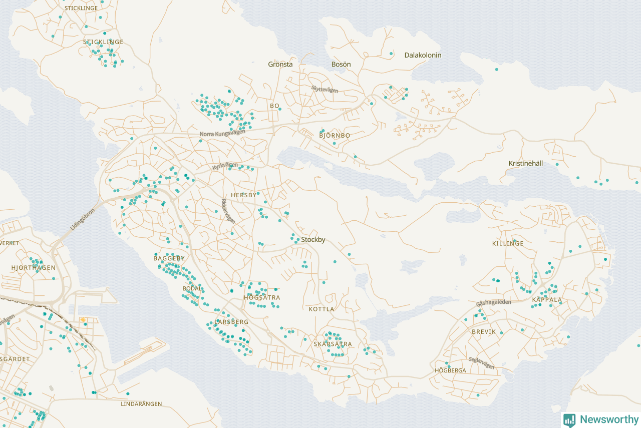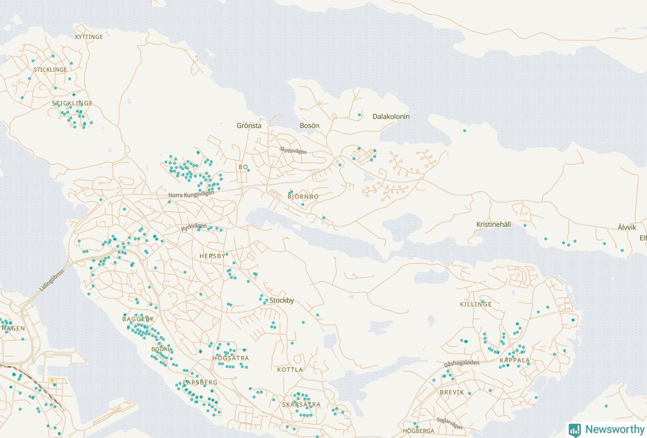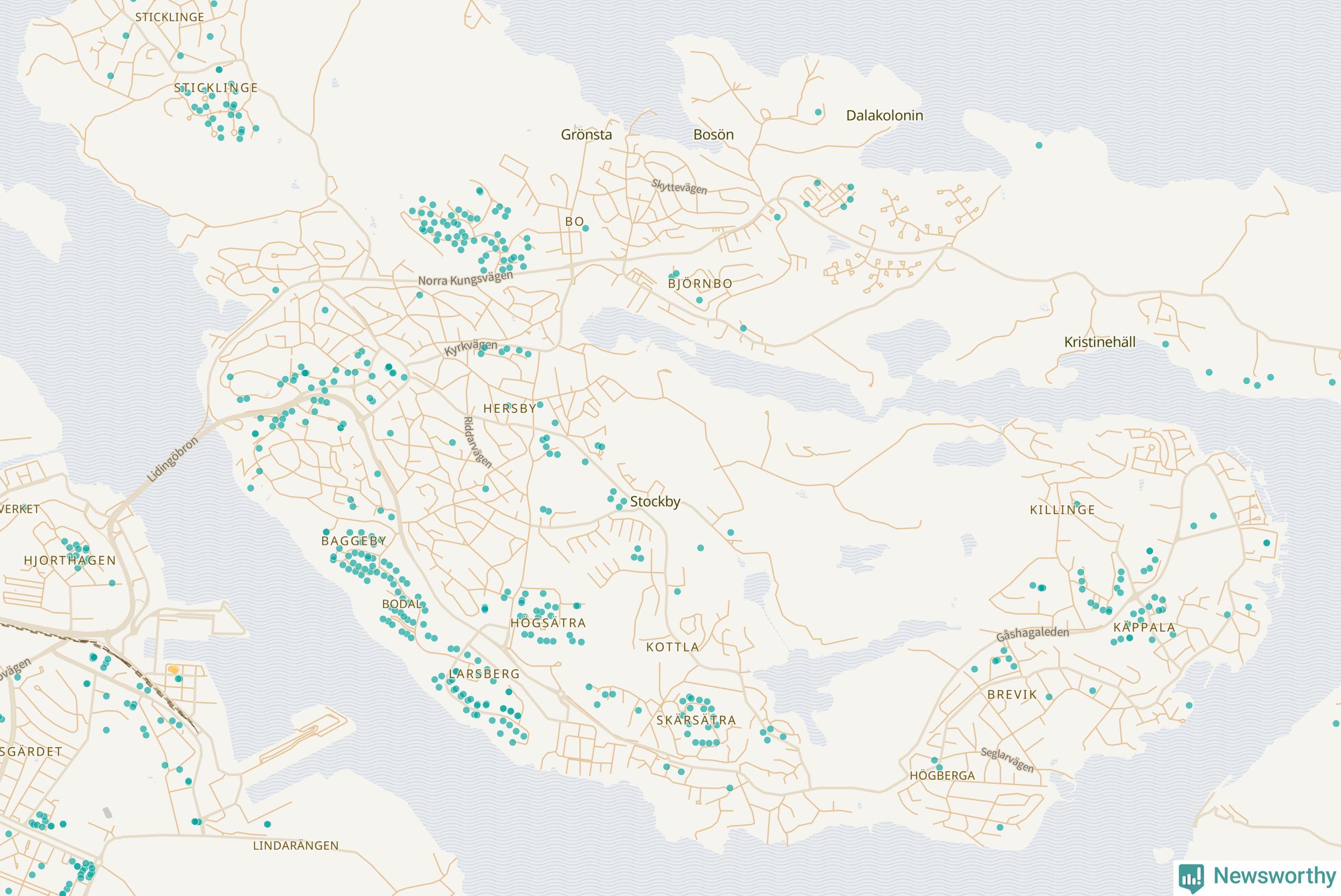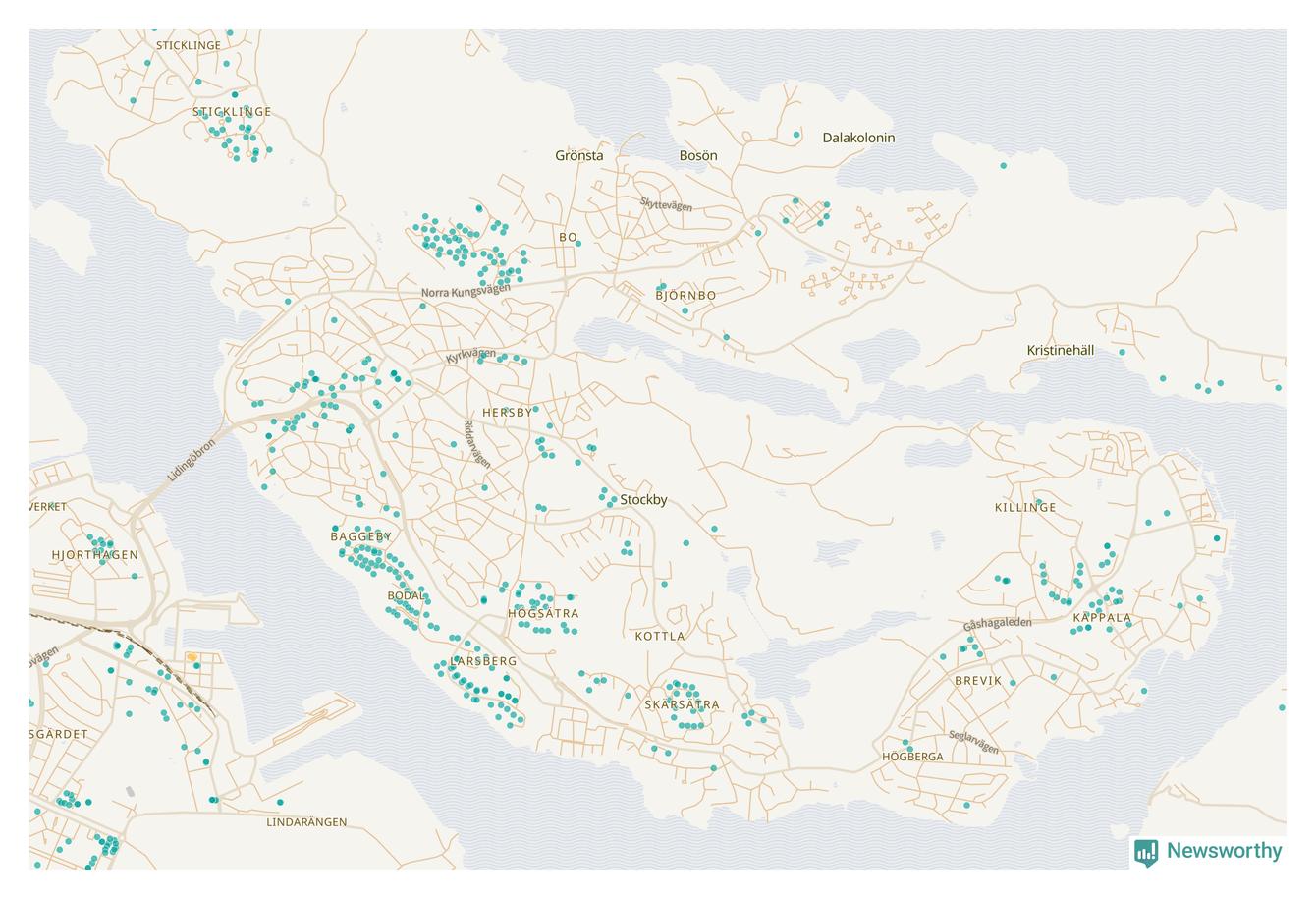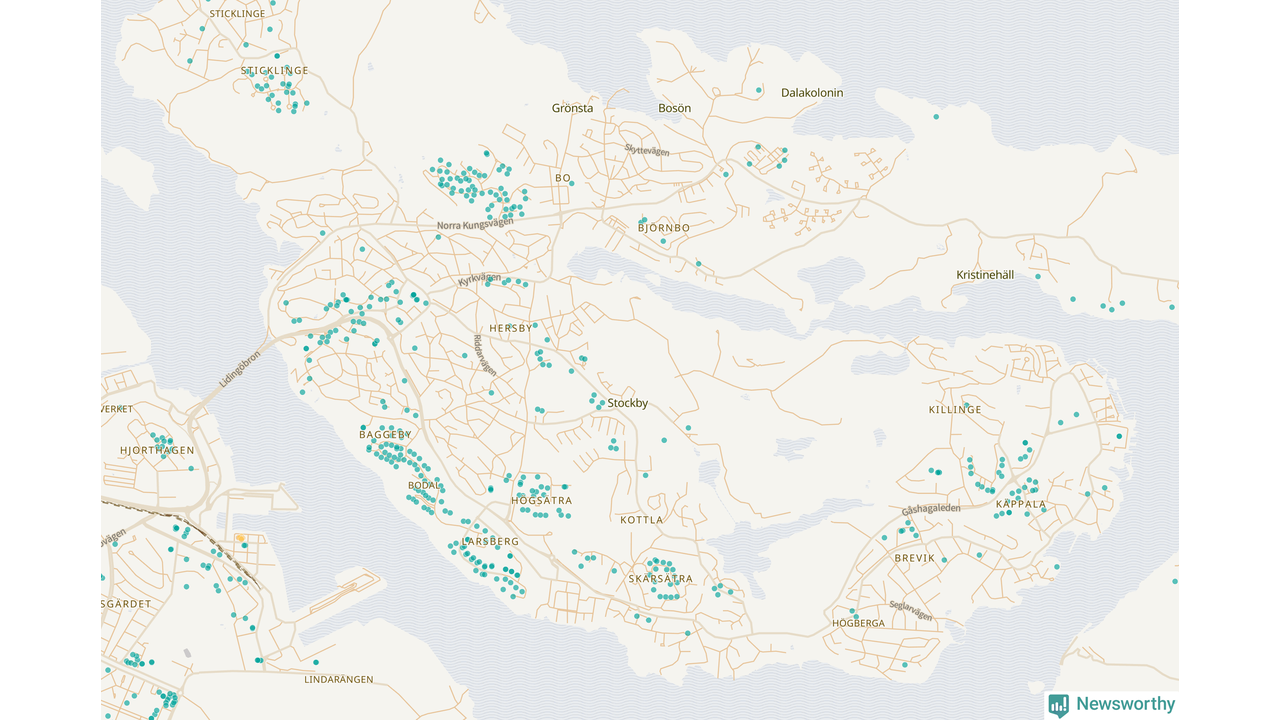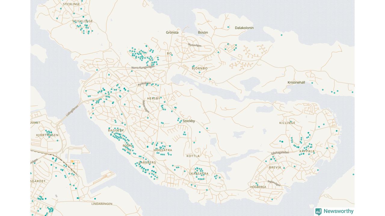 | Värmdö | 56 | 6 285 | 13 % |