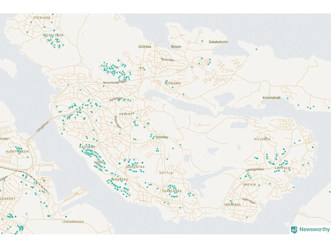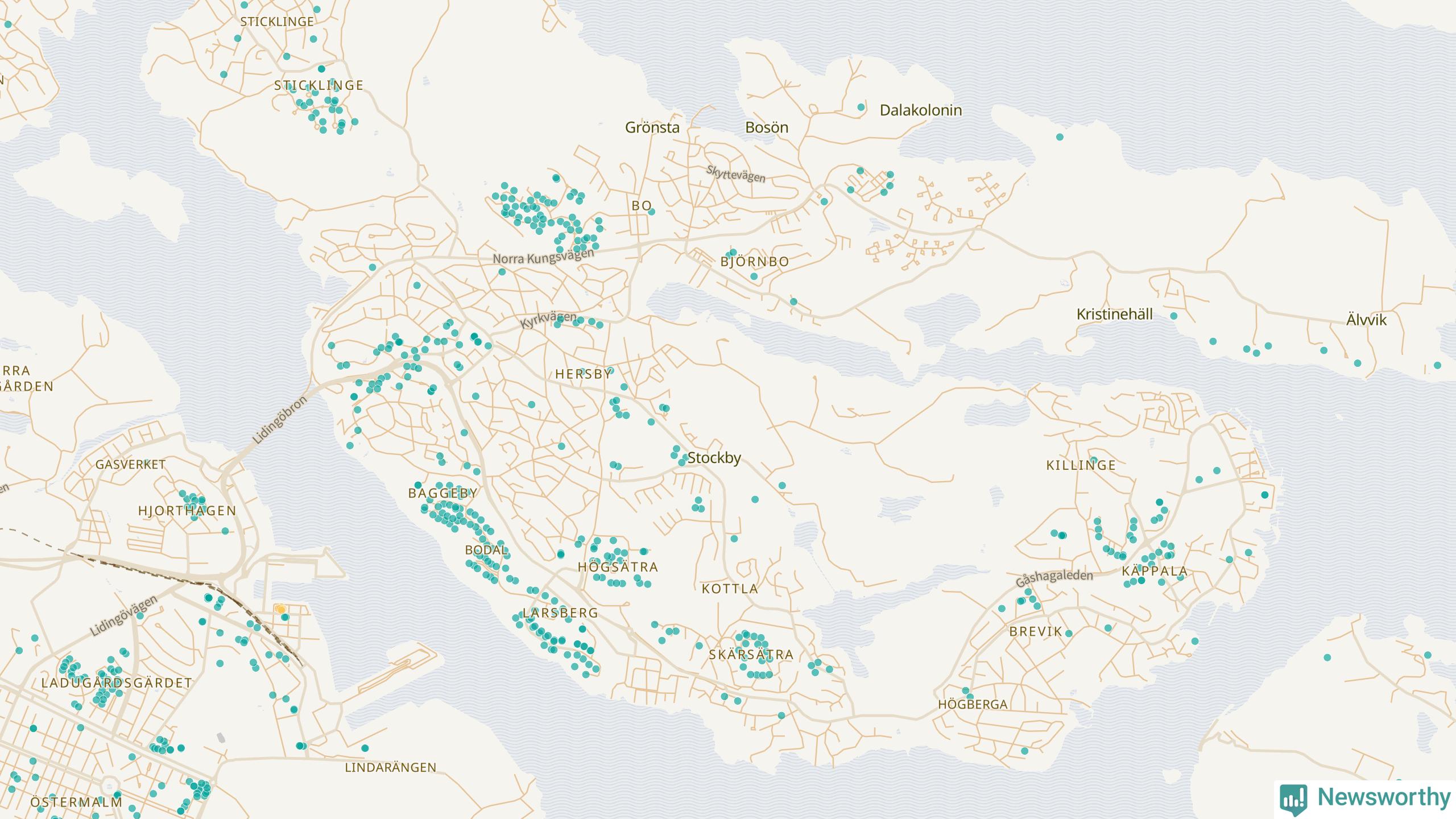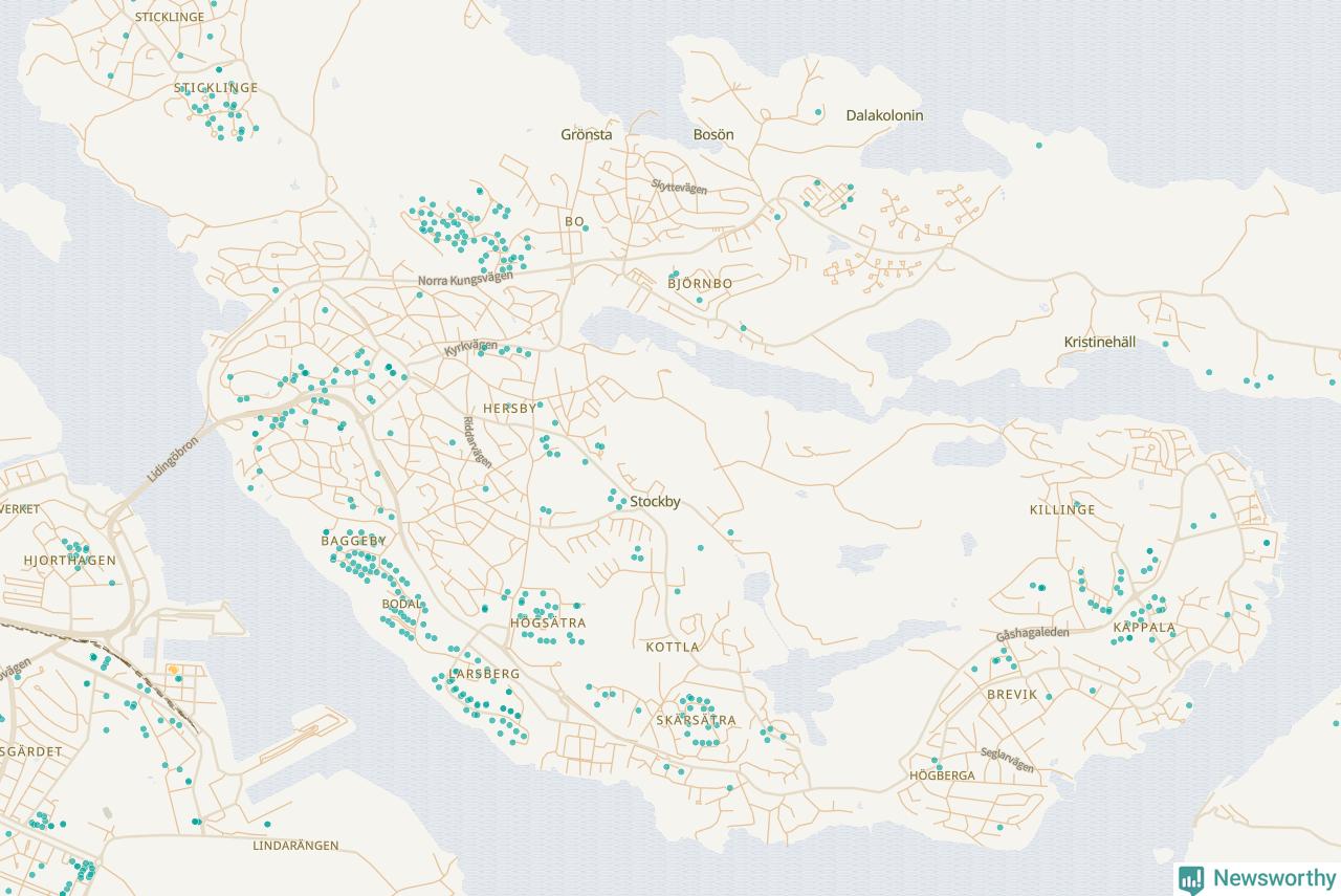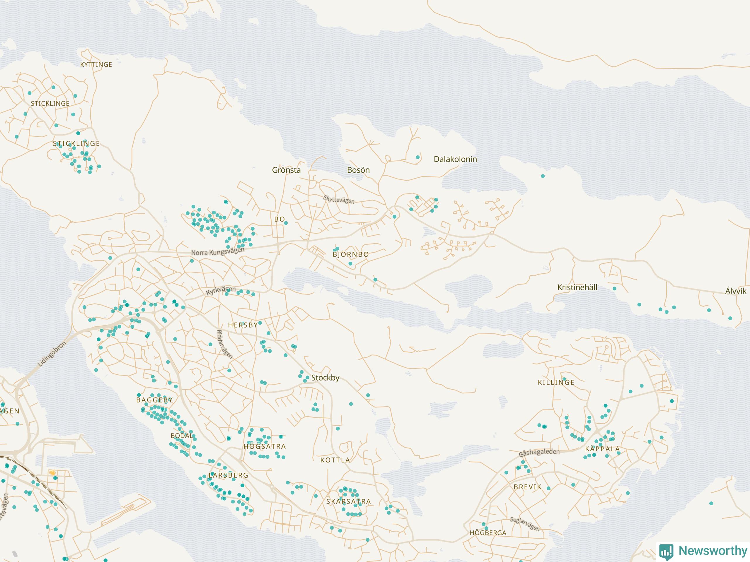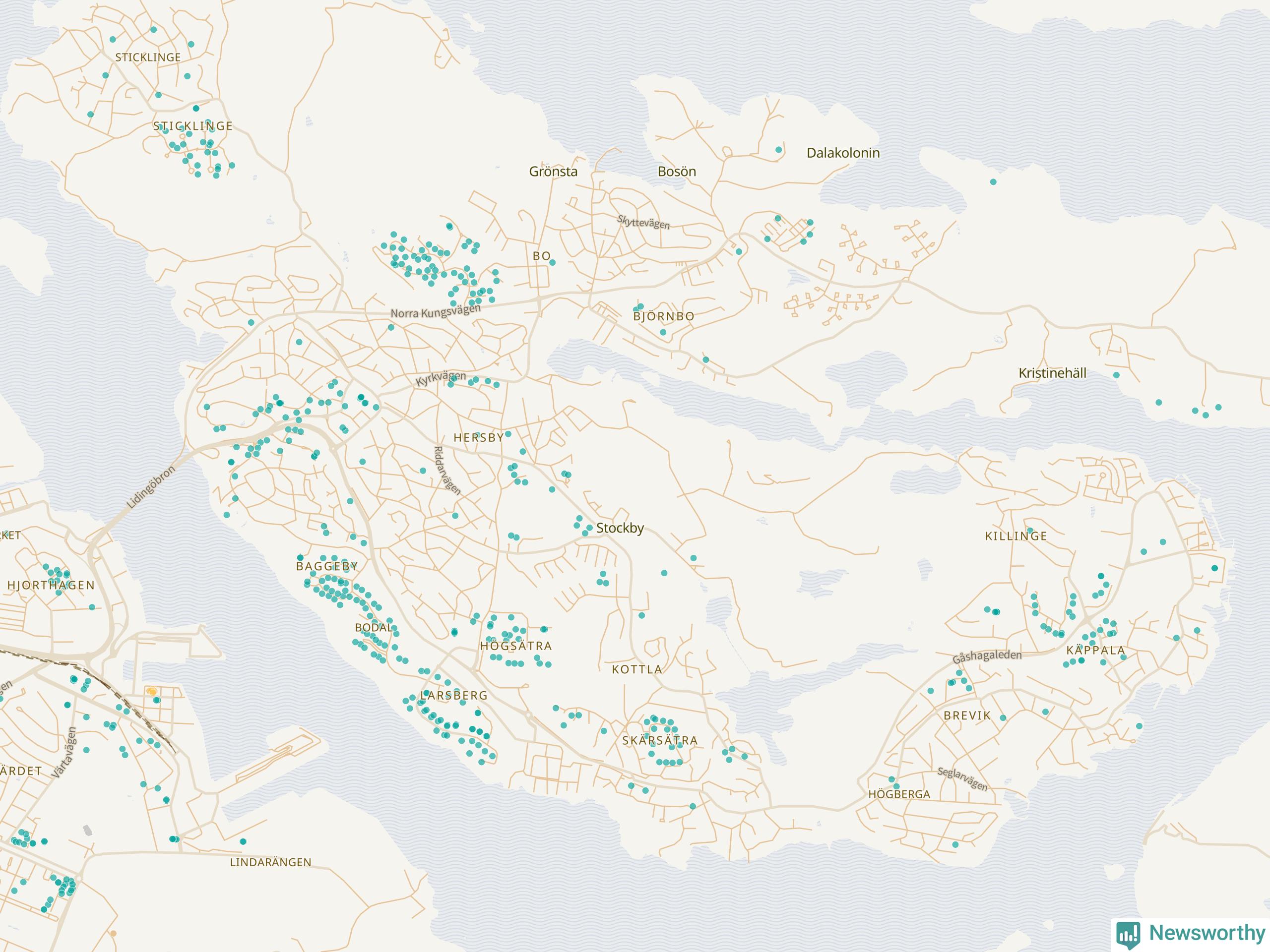 | Värmdö | 56 | 6 285 | 13 % |